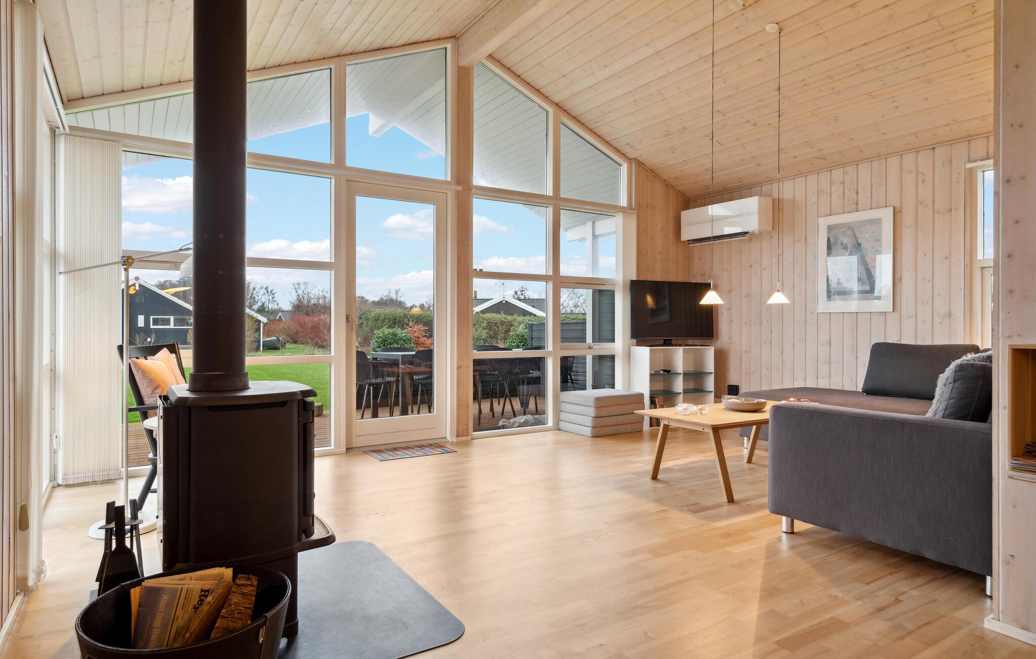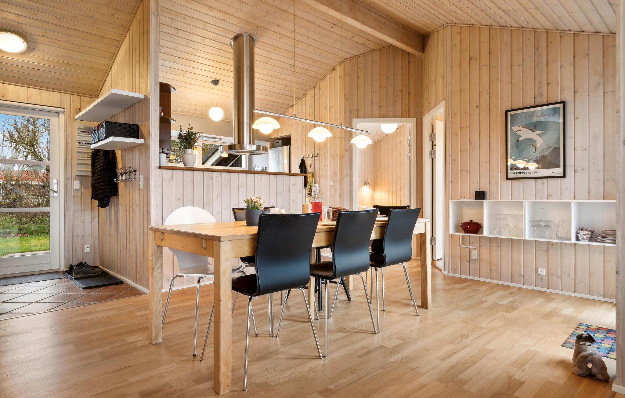 Gezellig houten vakantiehuis in Fjellerup met sauna, bubbelbad en speelvriendelijke tuin vlakbij het zandstrand.