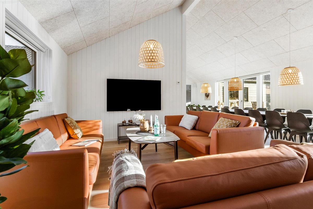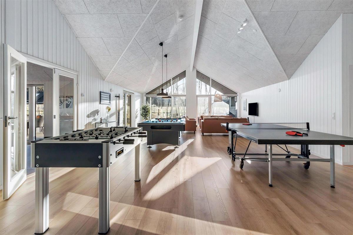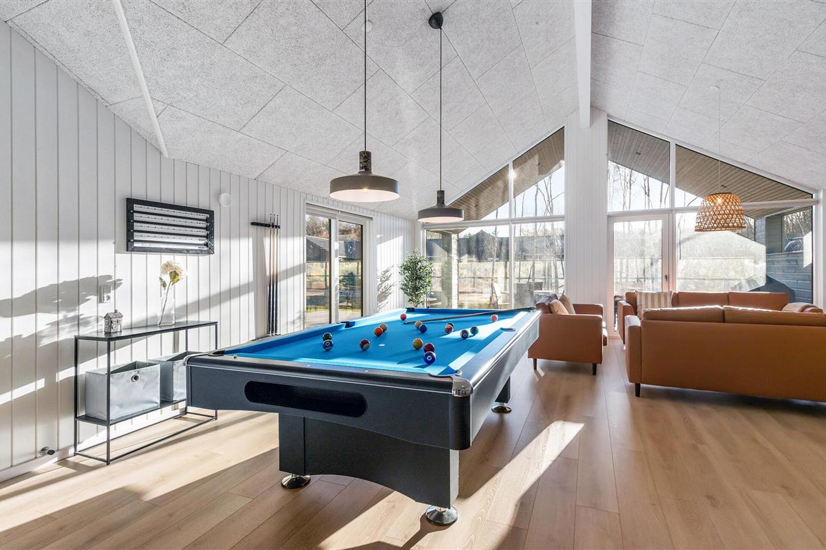 Licht en aantrekkelijk, dit uitnodigende huis verwelkomt je en biedt alles wat je nodig hebt voor een ontspannen vakantie met het hele gezin, waar grote en kleine gezinsleden aan hun trekken komen. Breng uren vol plezier door in het zwembad en ontspan in de sauna. Verheug je op gezellige avonden als je terugkomt van je avonturen, maak het jezelf gemakkelijk aan de eettafel, laat het diner naadloos overgaan in een spelletjesavond en praat nog lang na in gezellig gezelschap.