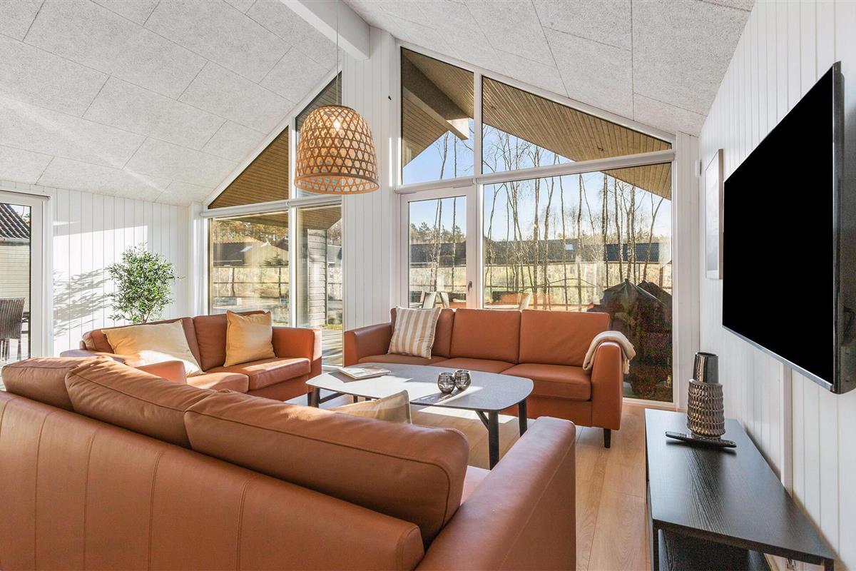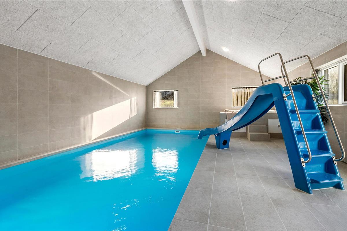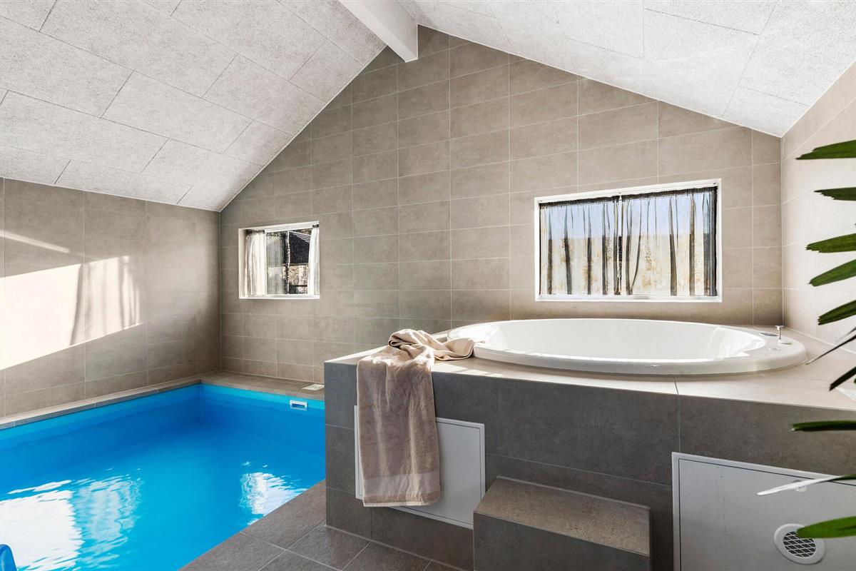 Comfortabel vakantiehuis met binnenzwembad, sauna en grote tuin vlakbij het strand in Fjellerup.