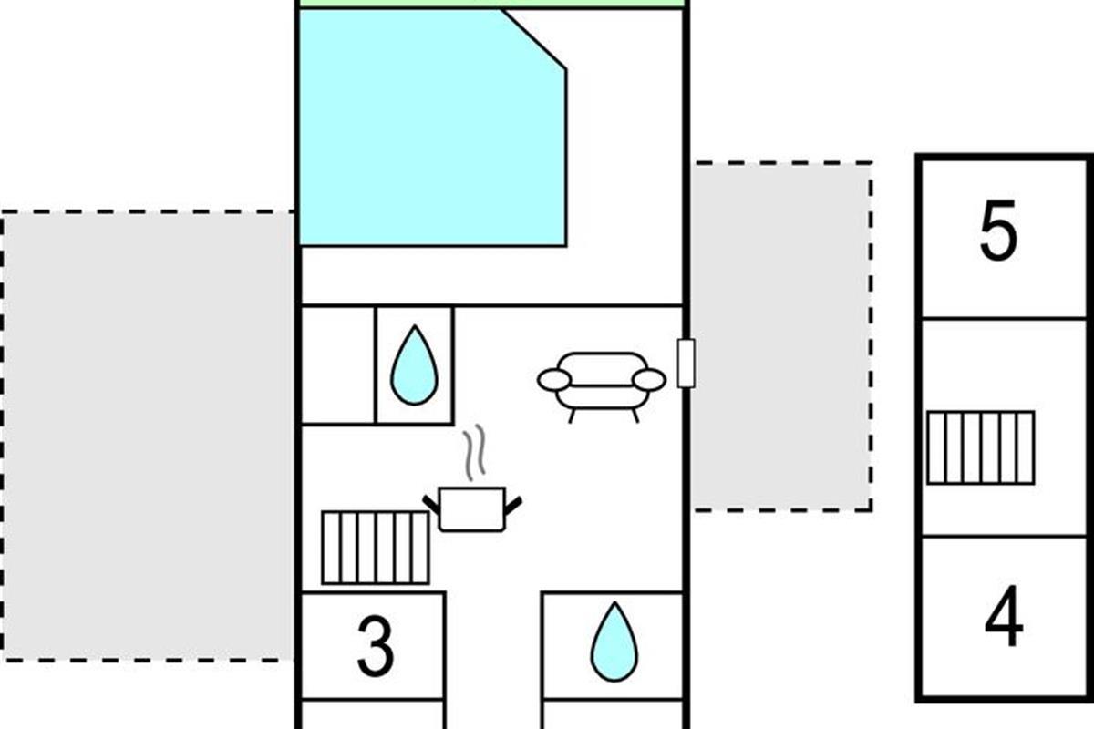 In het huis zijn vijf slaapkamers en een mooie keuken, die in verbinding staat met de woonkamer. Vanuit de woonkamer heeft u toegang tot het terras en aan de westkant van het huis is er een gedeeltelijk afgesloten groot zonneterras. In het grote zwembadgedeelte van het huis bevinden zich ook een sauna en een wellnessruimte, zodat er goede mogelijkheden zijn om te zwemmen en te ontspannen. U kunt ook genieten van de vele buitenactiviteiten, waarbij de kinderen dol zullen zijn op de trampoline en de schommel. U kunt hier ook darten.
