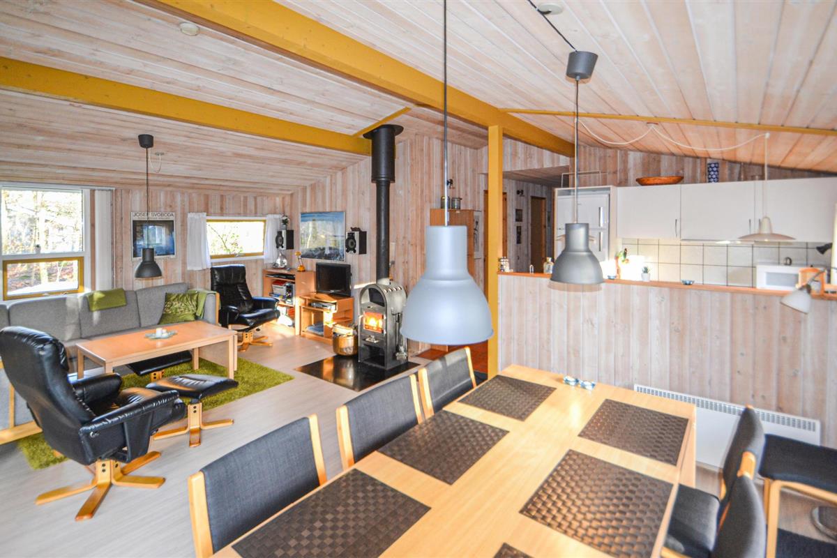 Kwaliteitshuis gemaakt van de beste materialen. Het is gelegen in een beplant en aantrekkelijk natuurgebied niet ver van een goed zwemstrand, dat ideaal is om te zwemmen en goede surfmogelijkheden biedt. Er is een grasveld voor balspelen, inclusief een basket. Het gebied is een goed uitgangspunt voor uitstapjes, te voet of met de fiets langs het water naar het vissersdorp Bønnerup. Of u kunt met de auto vele attracties bezoeken, zoals het Kattegatcentrum, het fregat Jutland, het attractiepark Djurs of het Landbouwmuseum Gl. Estrup.