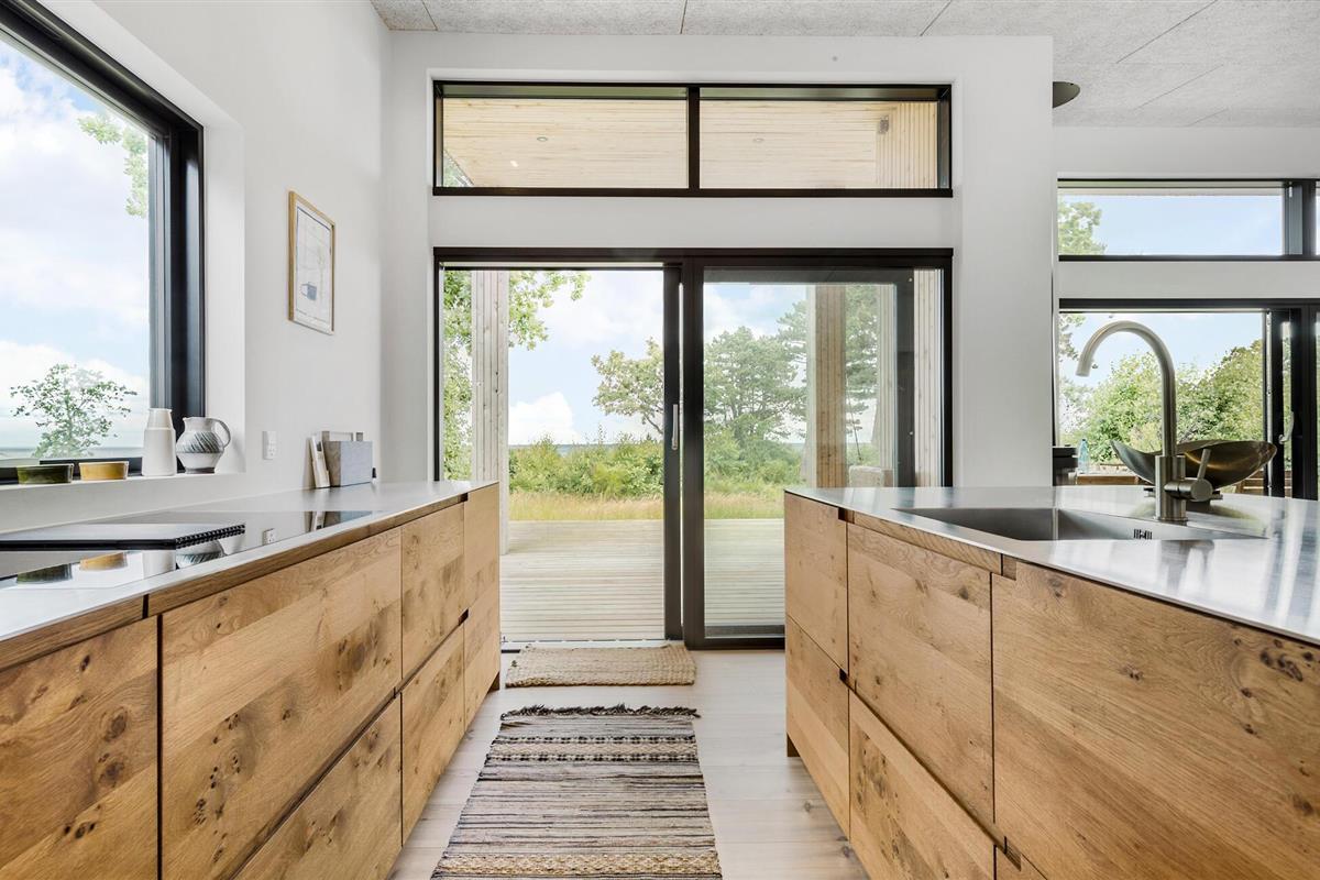 Modern houten vakantiehuis met zeezicht in Fjellerup