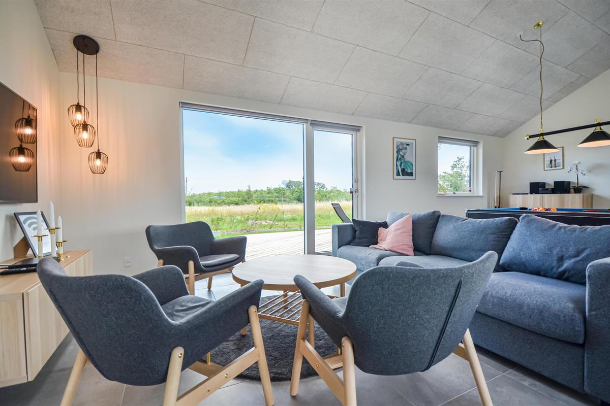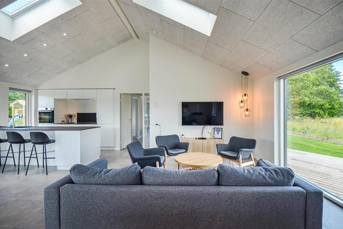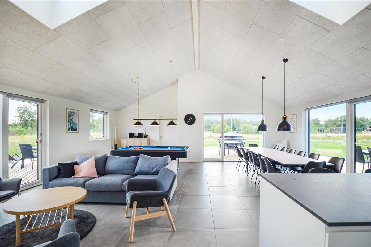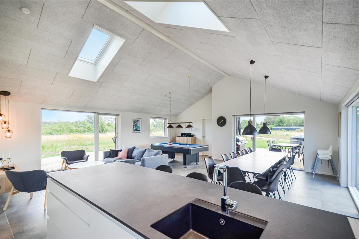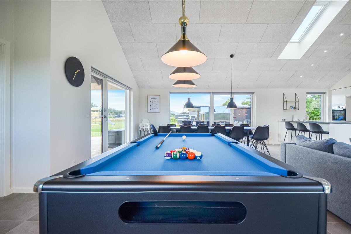 Een geweldig vakantiehuis aan het einde van een doodlopende weg in het mooie en populaire Fjellerup. Er is hier genoeg ruimte voor het hele gezin of meerdere vriendenparen die samen op vakantie willen. Alle kamers in het huis zijn licht en mooi ingericht. De 3 slaapkamers en de 4 lofts bieden voldoende ruimte voor alle gasten. Daarnaast zijn er 2 mooie badkamers - één met een ligbad. De grote keuken/eetkamer met aangrenzende woonkamer zijn het ontmoetingspunt in het huis wanneer u wilt praten over de ervaringen van de dag of de activiteiten van morgen wilt plannen. Er is ook een pooltafel in de familiekamer, zodat u een spelletje biljart kunt spelen. Buiten op het grote terras is pure ontspanning aan de orde van de dag op het tuinmeubilair en niet in de laatste plaats in het prachtige bubbelbad. U kunt gezellige barbecue-avonden houden en de kinderen kunnen spelen op het grote terrein en zich vermaken in het speelhuisje en op de schommels.