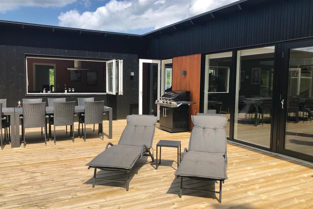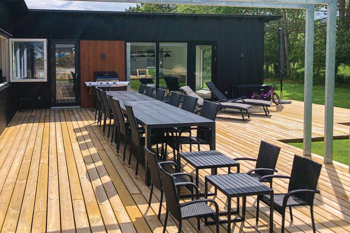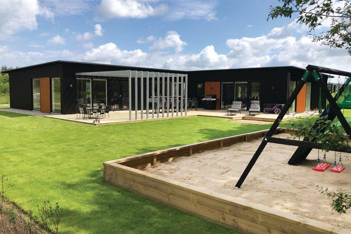 In Fjellerup op Norddjursland ligt dit aantrekkelijke vakantiehuis met activiteitenruimte, goede slaapkamers en badkamers, perfecte omstandigheden voor een heerlijke vakantie. Buiten zijn er grote terrassen en een speeltuin voor de kleintjes.