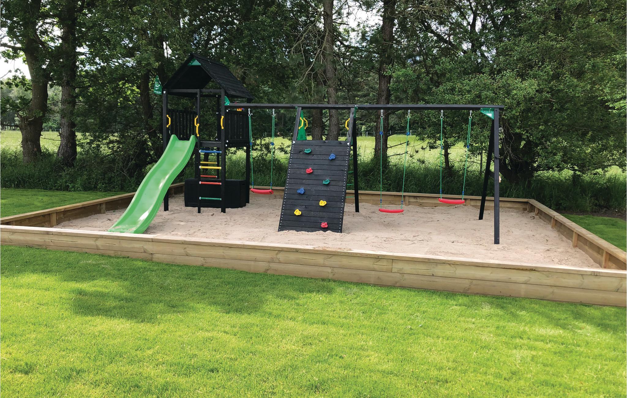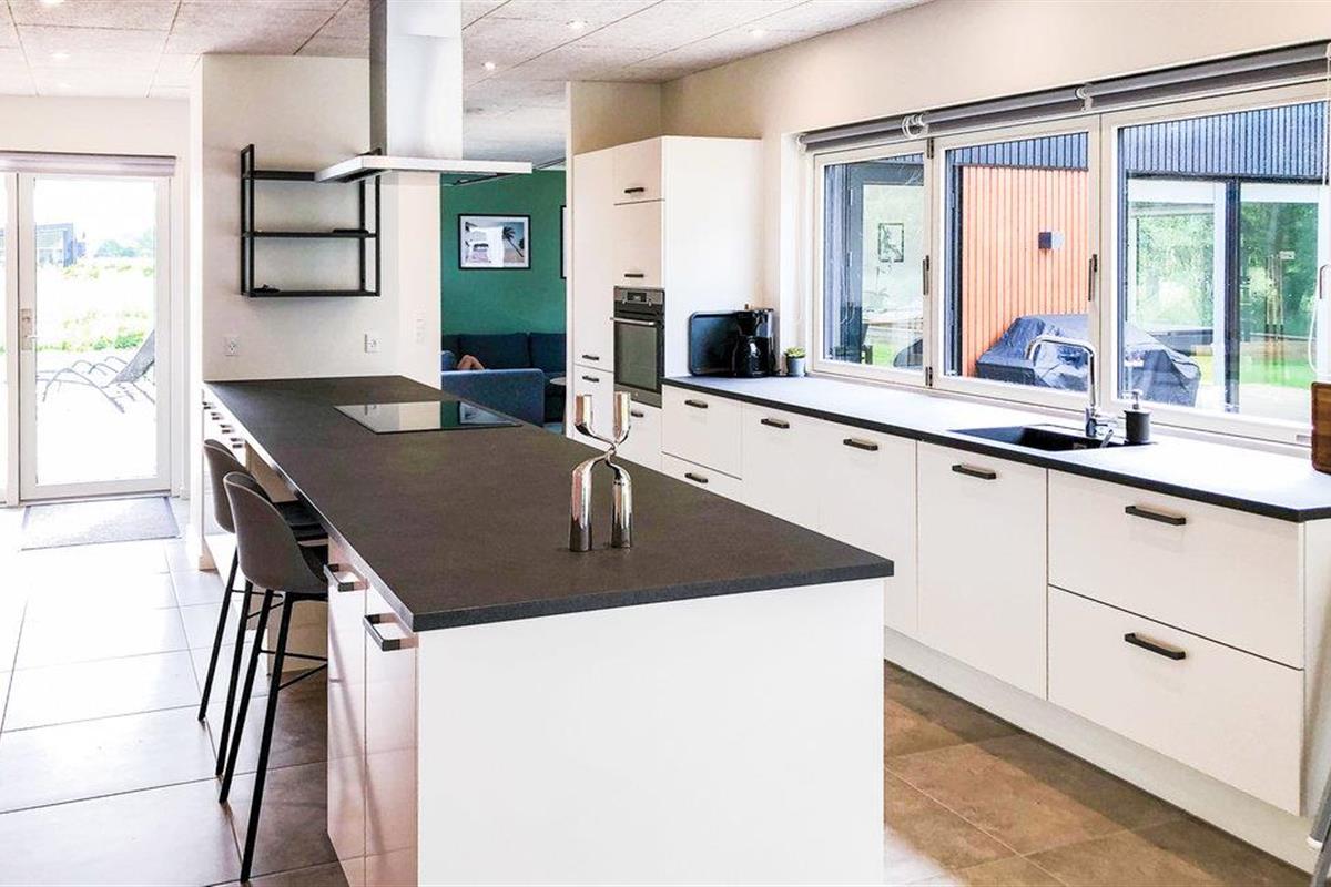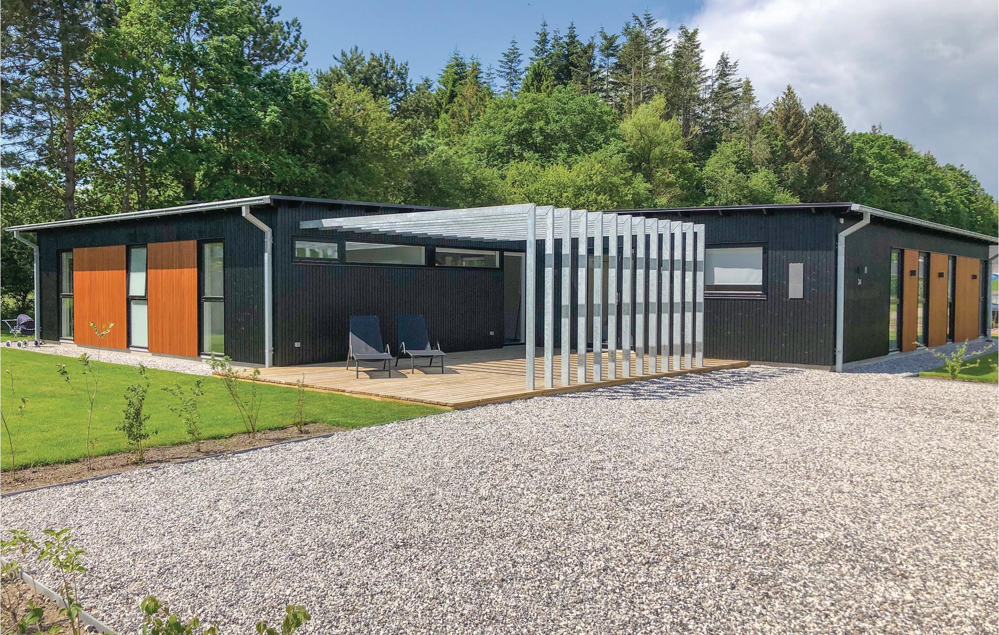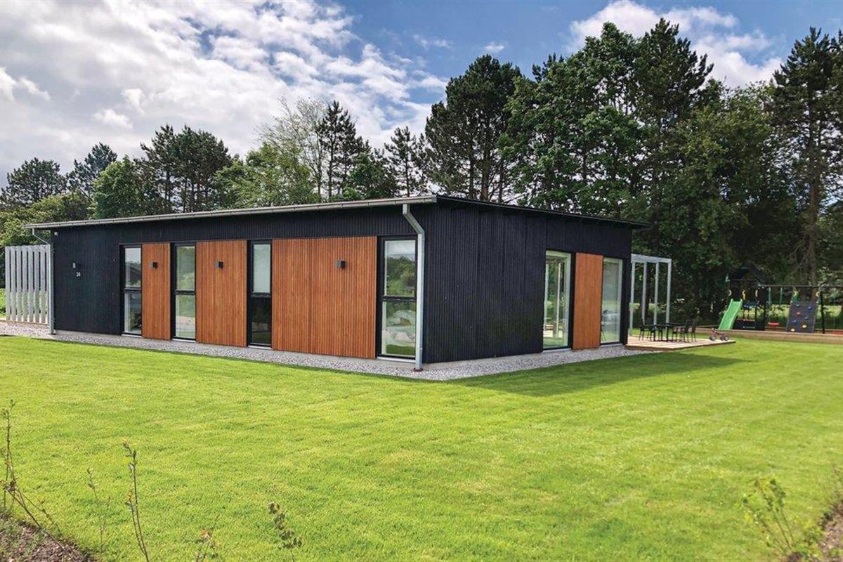 Geniet van een luxe vakantiehuis in Fjellerup met zeezicht, speelruimte, hot tub en energiezuinige voorzieningen.