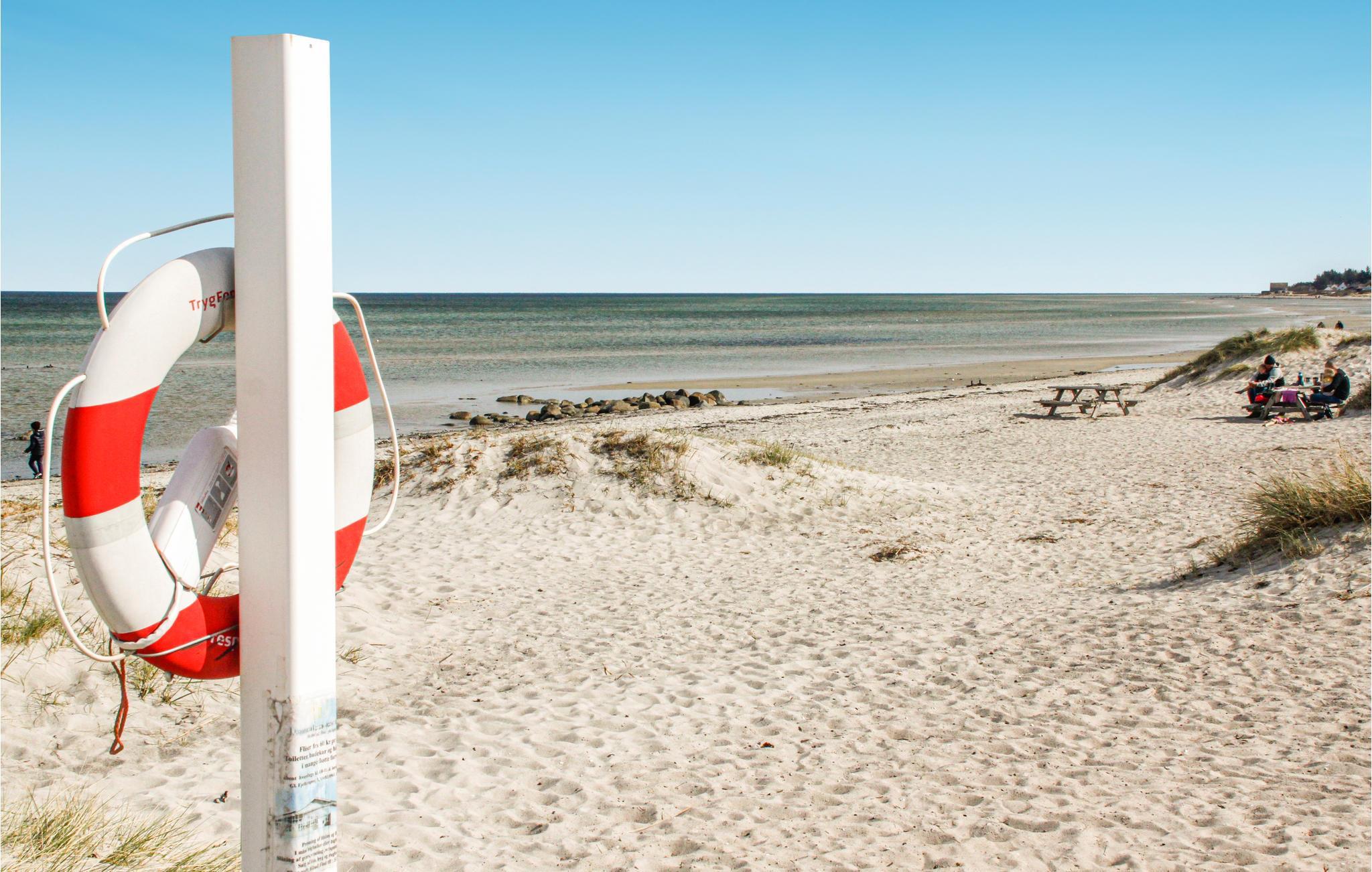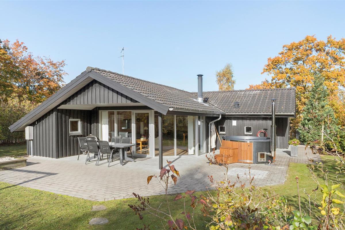 Verzorgd vakantiehuis in Fjellerup, vlak bij strand, met sauna, whirlpool en houtkachel op een ruim, beschut perceel.