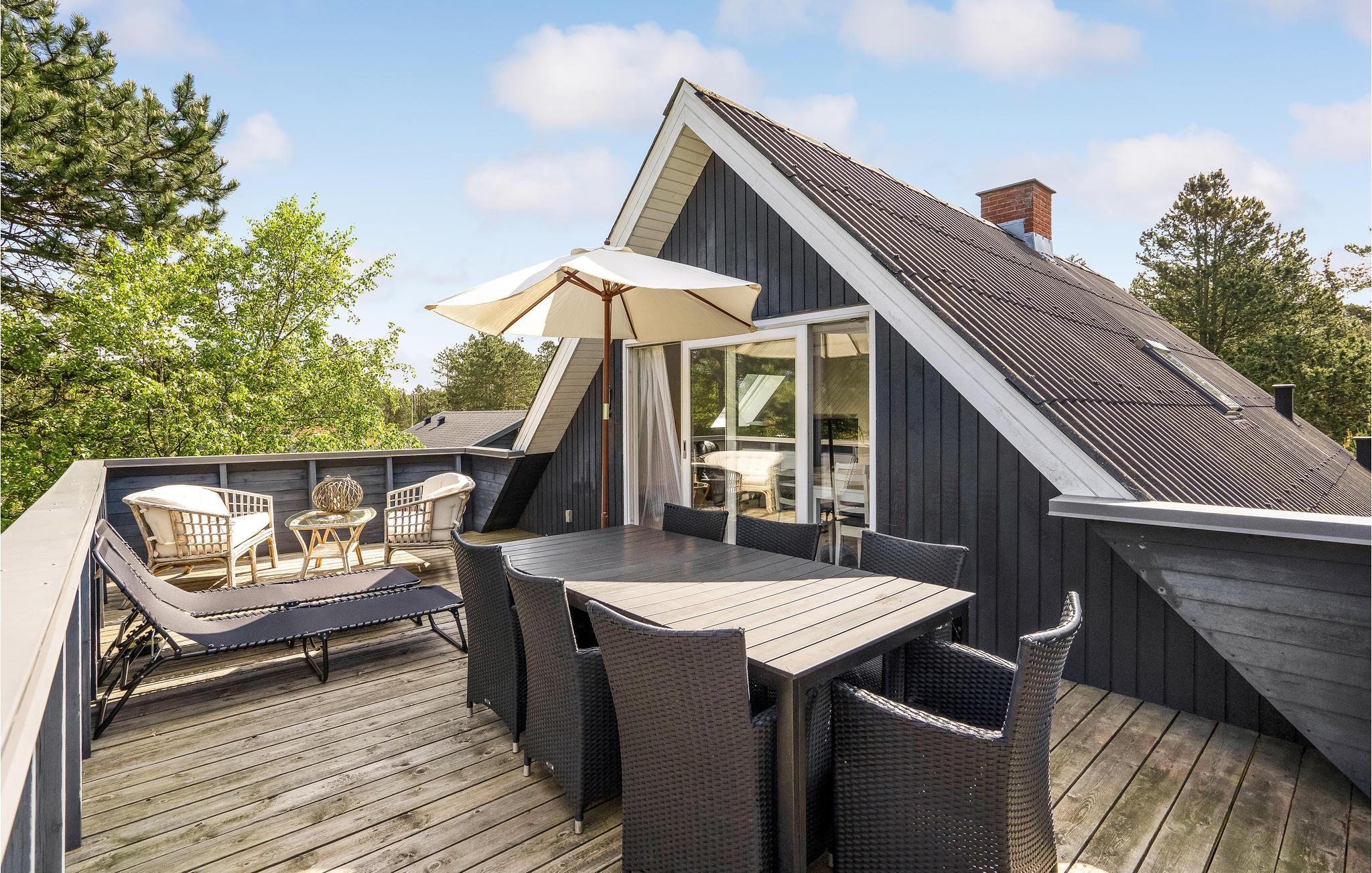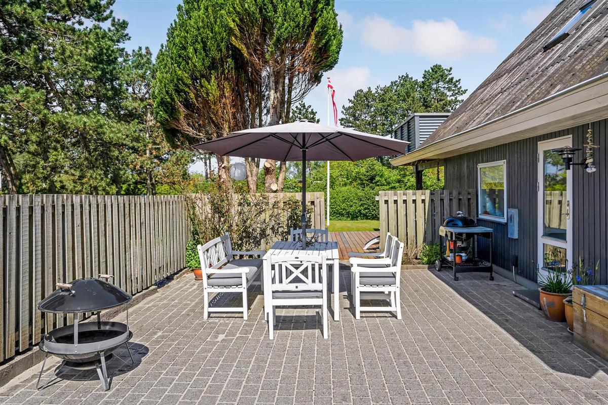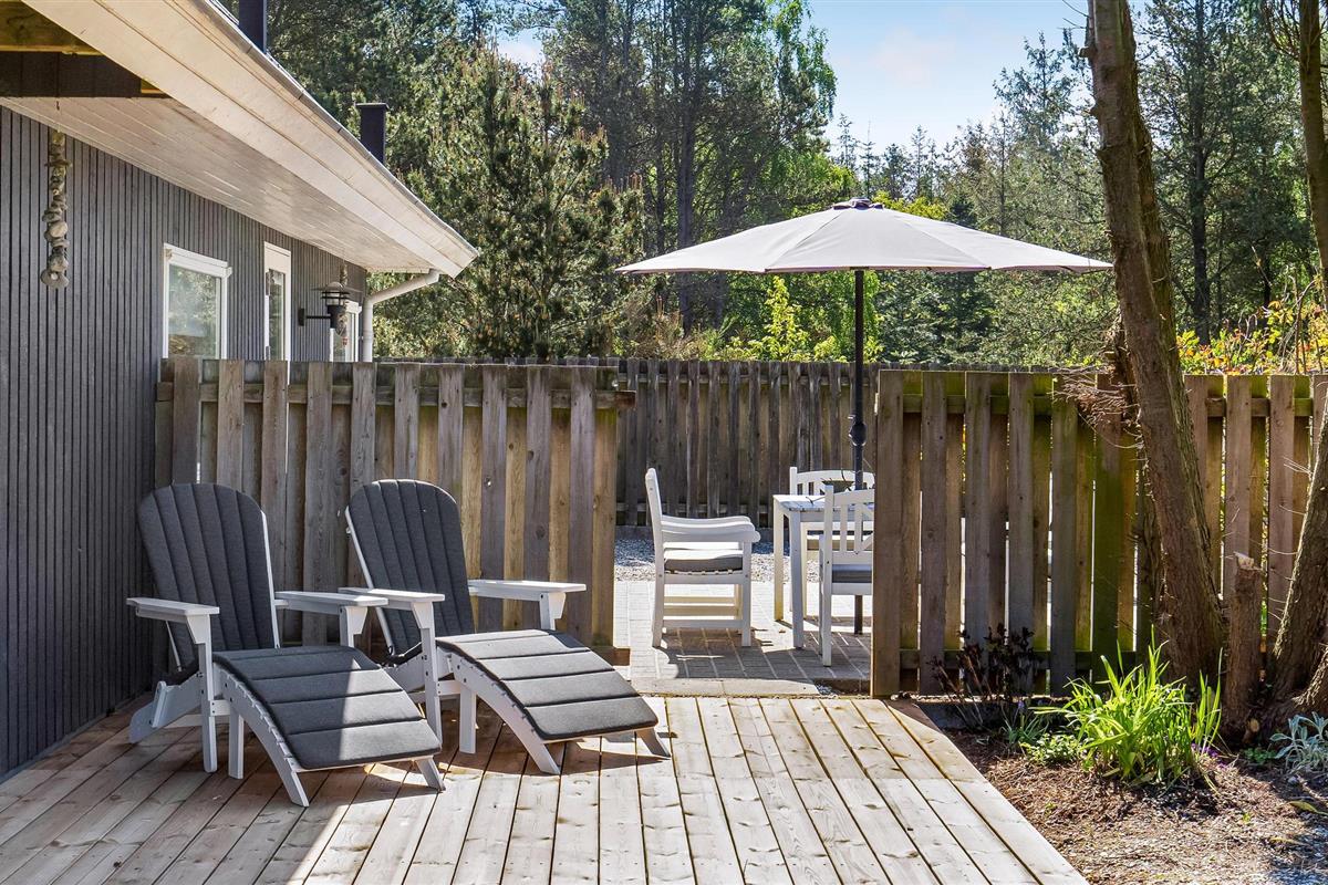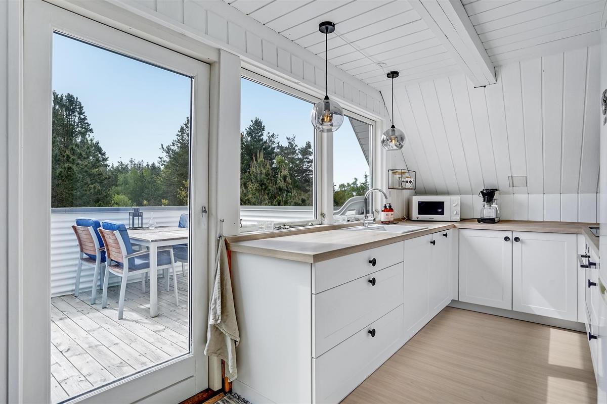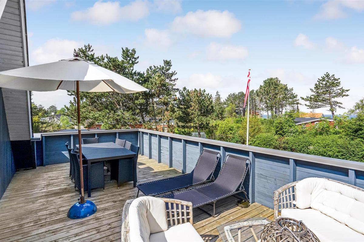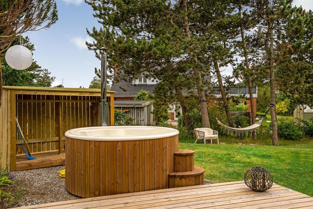 Op de 1e verdieping bevindt zich de woonkamer met toegang tot het grote balkon. Vanaf hier heeft u uitzicht op de omgeving en deels op de zee. Op het oostelijke terras, bereikbaar vanuit de goed uitgeruste keuken, kunt u heerlijk ontbijten en de activiteiten van de dag plannen. Een hoogtepunt is de outdoor whirlpool, waar u zich kunt opfrissen na een rondje sauna. De tuin en het terras zijn goed uitgerust met ligstoel, tuinmeubelen en hangmat - ideaal om uw vakantie buiten door te brengen.