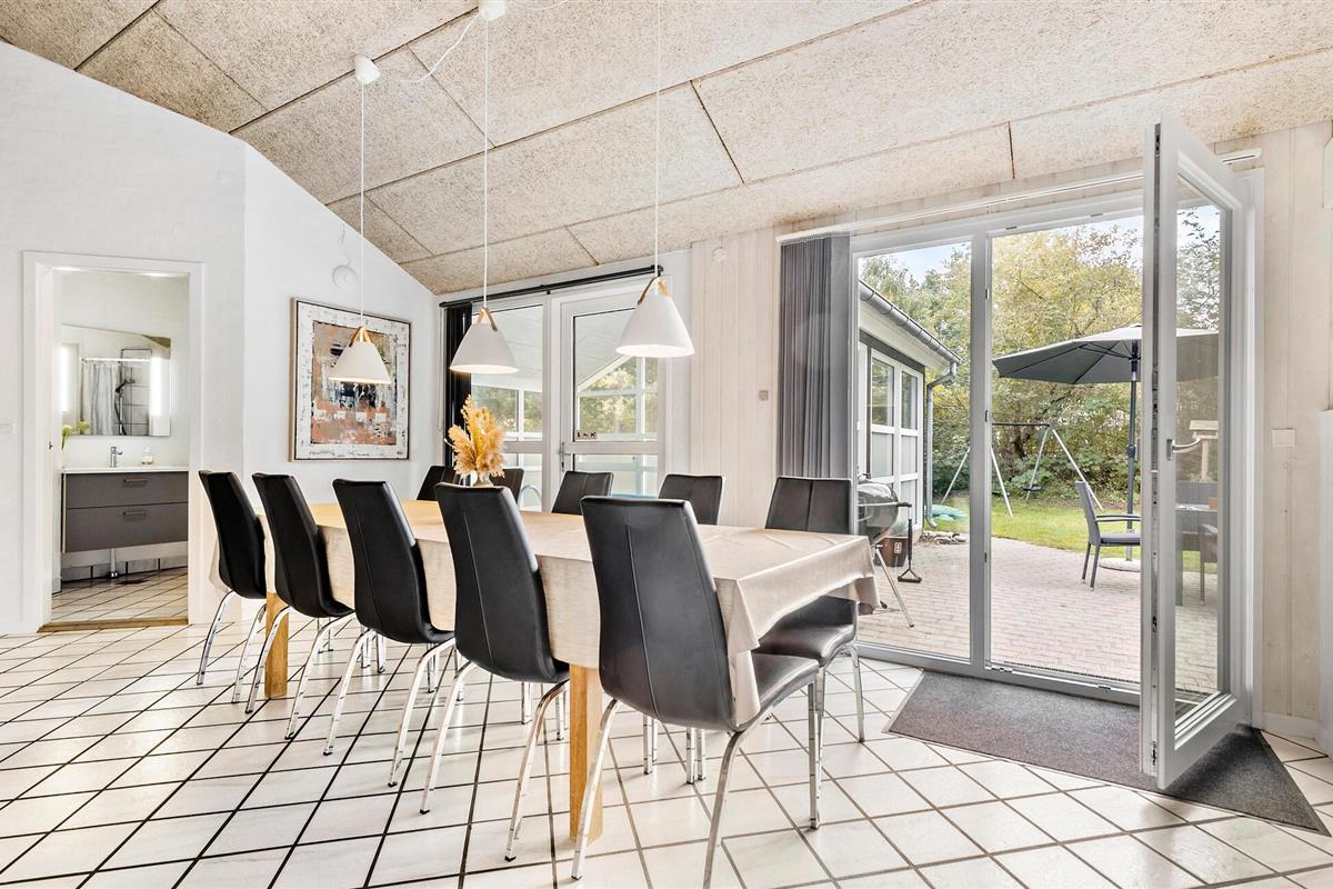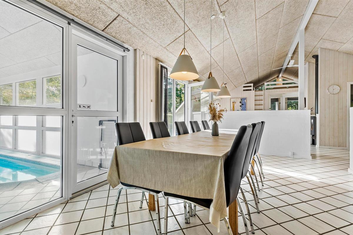 Mooi, goed onderhouden vakantiehuis uitgerust om een goede omgeving te bieden voor een aangenaam vakantieverblijf voor één of twee gezinnen in elk jaargetijde. Het huis is zeer energievriendelijk met 3 warmtepompen. De grote zwembadruimte met zwembad, whirlpool en sauna trekt actieve mensen en waterratten aan. Vanuit de keuken en het eetgedeelte kunt u de badgasten gadeslaan terwijl u vakantiegerechten op tafel tovert. In de gezellige keuken-woonkamer kunt u genieten van de warmte van de open haard en programma's bekijken op de flatscreen-tv met Chromecast (streaming). Het huis ligt op een ongestoord, windvrij perceel dicht bij het strand in een prachtige omgeving met onder andere beukenbos en gevarieerd terrein. Het is een goede uitvalsbasis voor uitstapjes, bijvoorbeeld naar de Scandinavische dierentuin of naar Djurs Sommerland en Randers Regnskov.