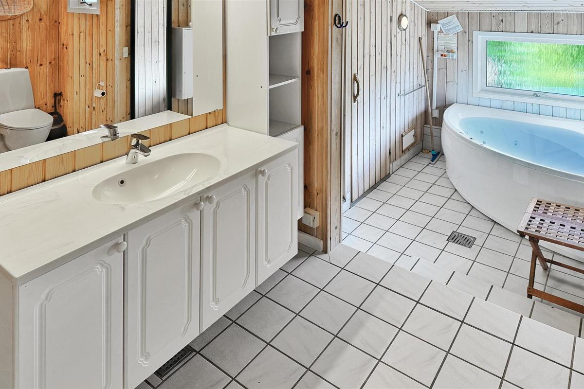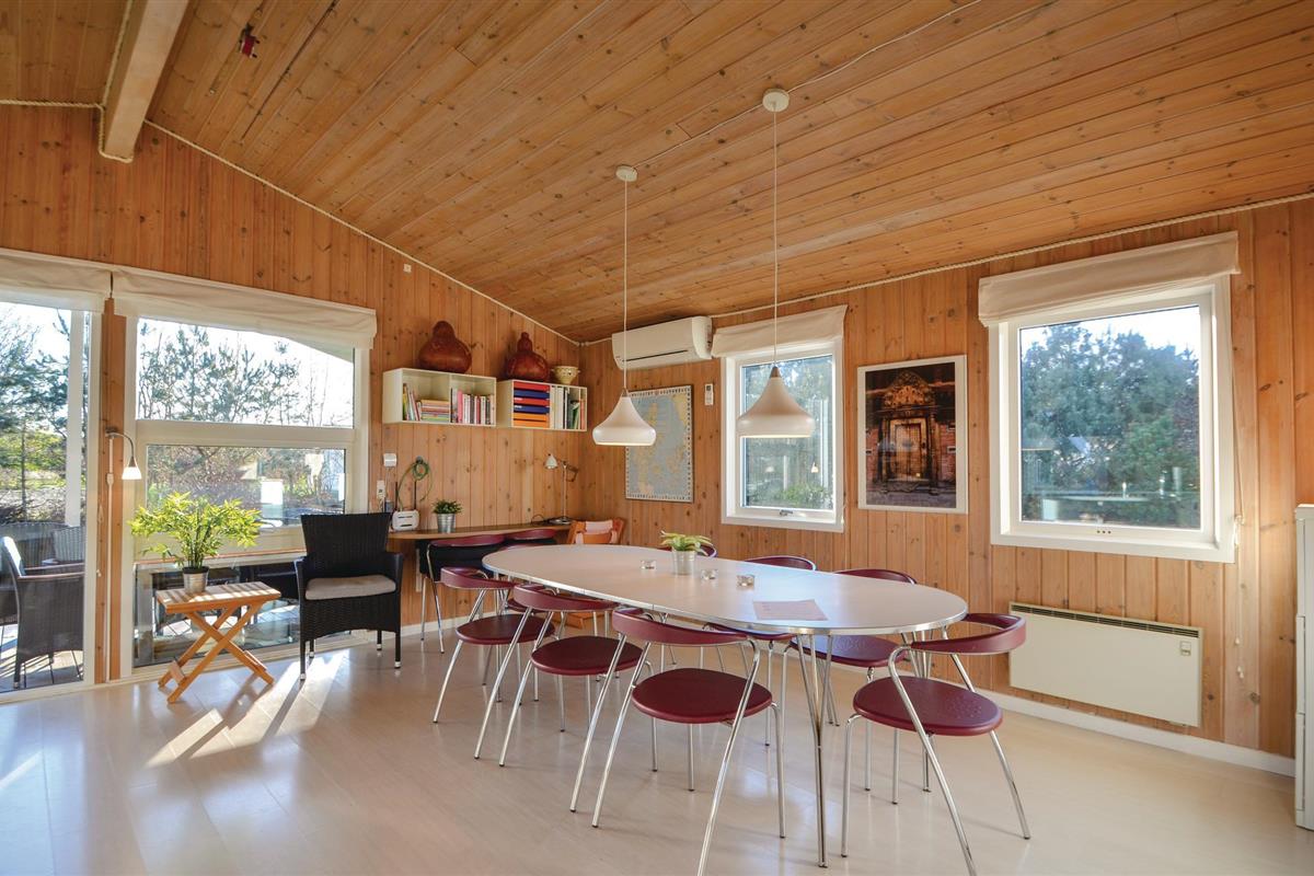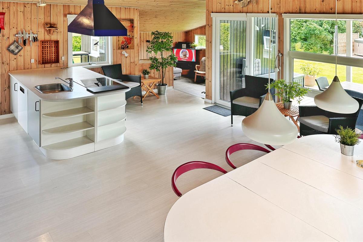 Het huis is uitgerust met een mooie grote keuken-woonkamer met plaats voor iedereen aan de eettafel en een verzonken (twee treden) open haardkamer met TV (Deense en Duitse zenders). De vier slaapkamers zijn licht, goed uitgerust en bieden voldoende ruimte, bijvoorbeeld voor twee gezinnen. Er zijn ook twee badkamers, waarvan één met een verzonken (twee niveaus) gedeelte met whirlpool, aankleedtafel en sauna. Uiteraard hebben beide badkamers een douche.