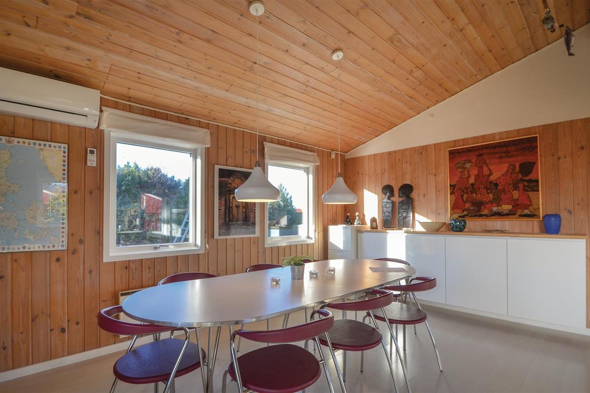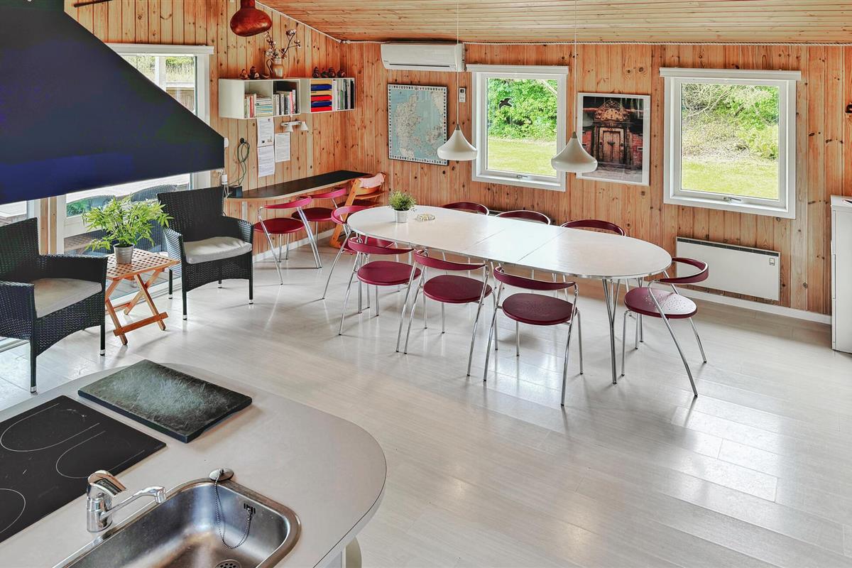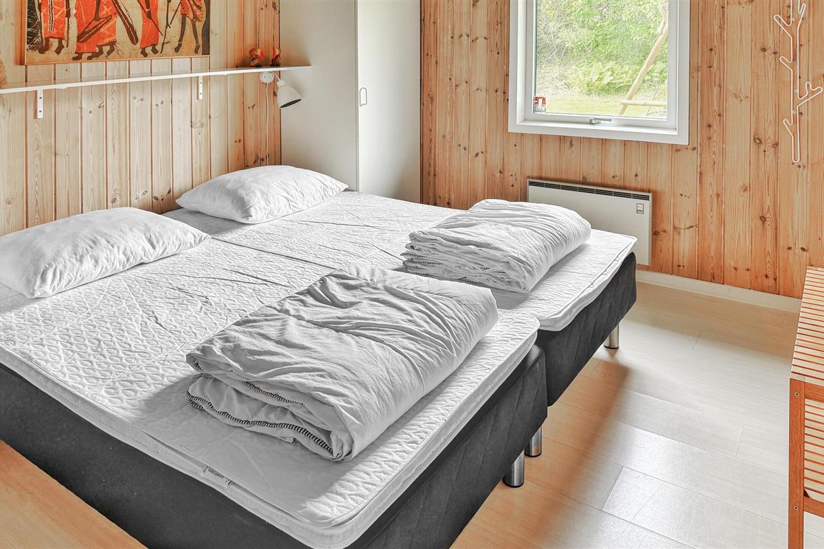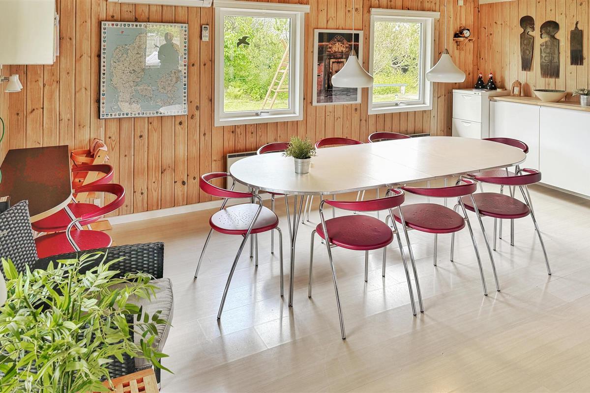Het huis is uitgerust met een mooie grote keuken-woonkamer met plaats voor iedereen aan de eettafel en een verzonken (twee treden) open haardkamer met TV (Deense en Duitse zenders). De vier slaapkamers zijn licht, goed uitgerust en bieden voldoende ruimte, bijvoorbeeld voor twee gezinnen. Er zijn ook twee badkamers, waarvan één met een verzonken (twee niveaus) gedeelte met whirlpool, aankleedtafel en sauna. Uiteraard hebben beide badkamers een douche.