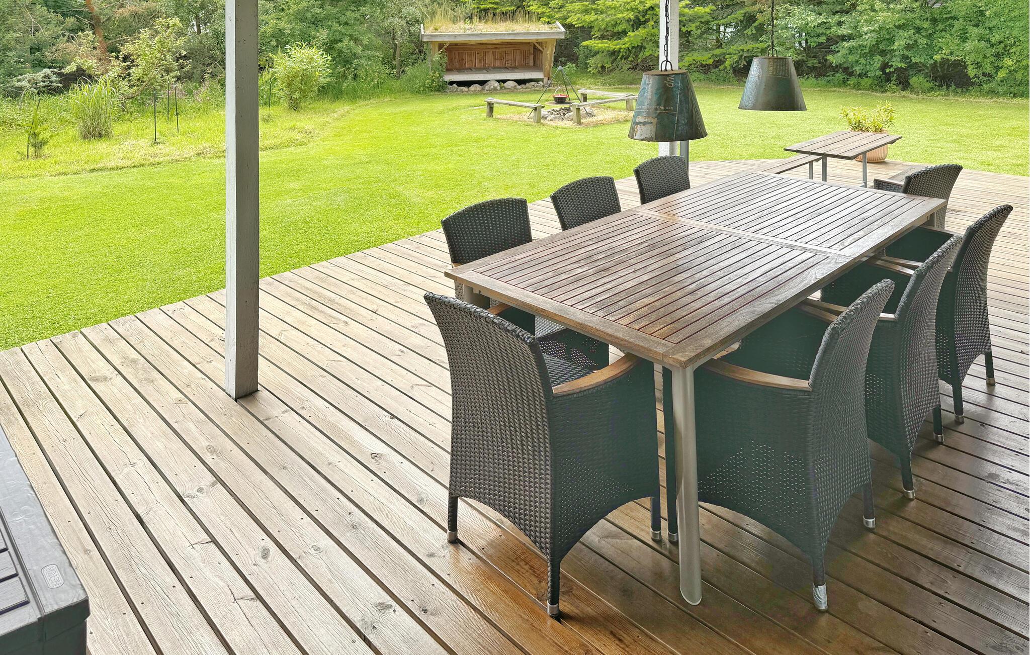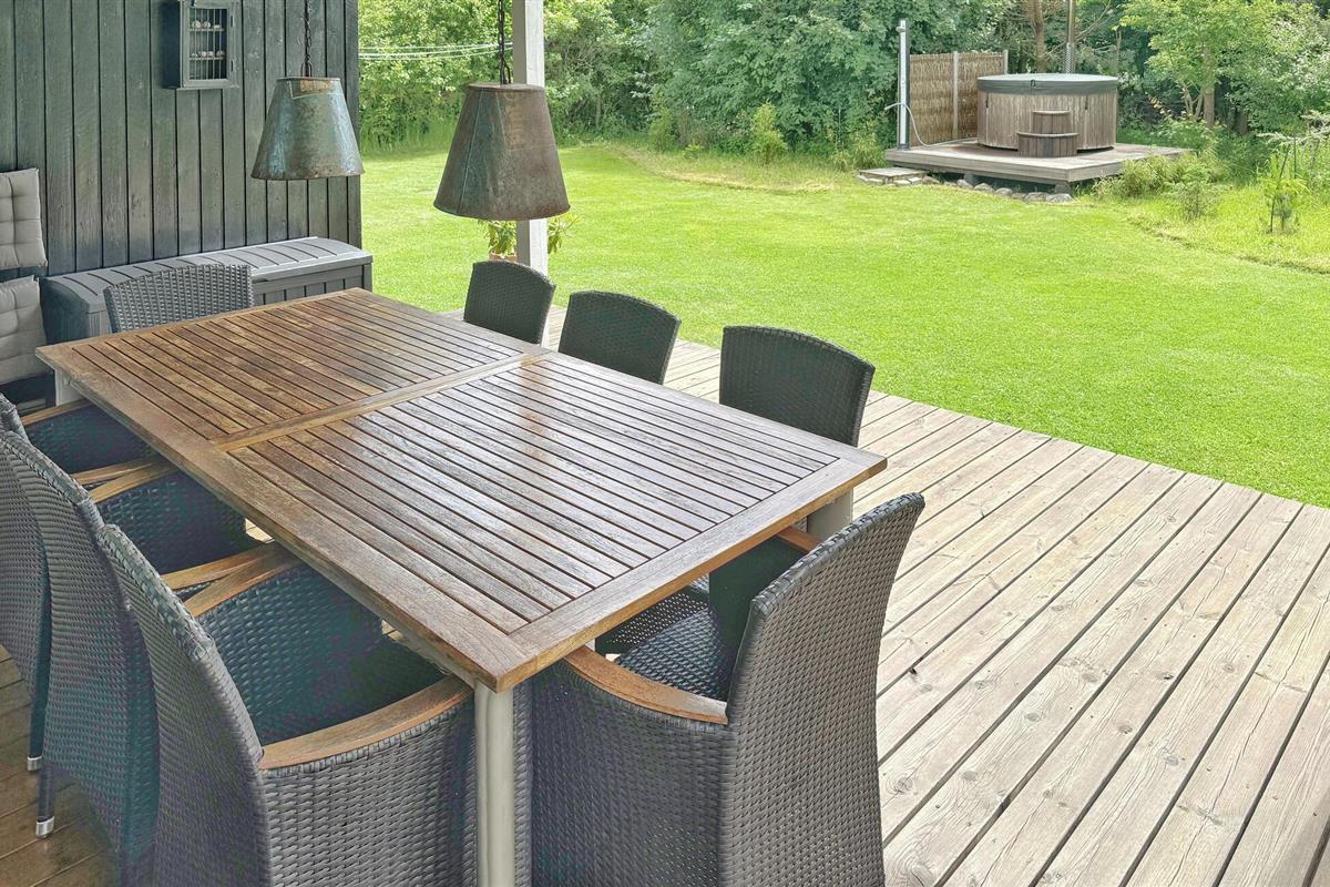 Dit lichte, comfortabele en gezellige vakantiehuis ligt op een natuurgrondstuk met speeltuin en kampvuur, op slechts vijf minuten lopen van het gezinsvriendelijke zandstrand. Op het terras op het oosten kunt u in comfortabel tuinmeubilair genieten van de ochtendzon, op het grotere zuidwestelijke terras van de middagzon en de zonsondergang. U kunt heerlijk ontspannen in de hot tub voor vijf personen in de tuin.