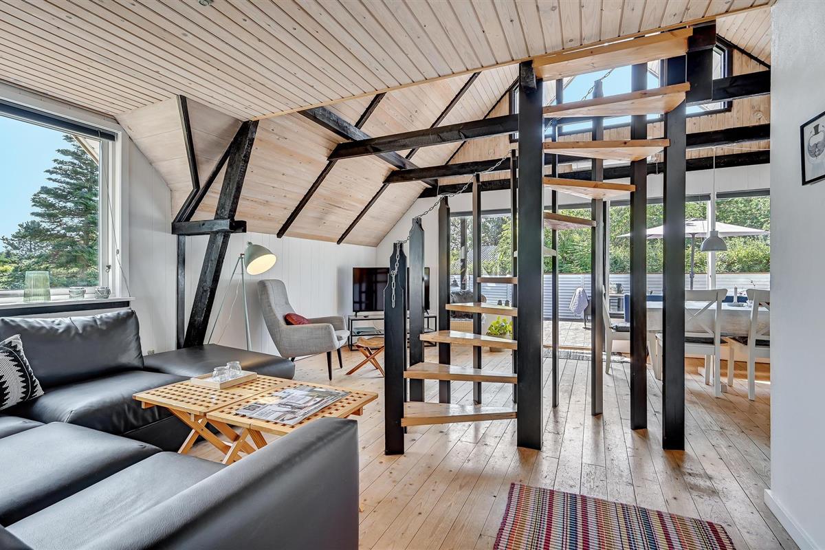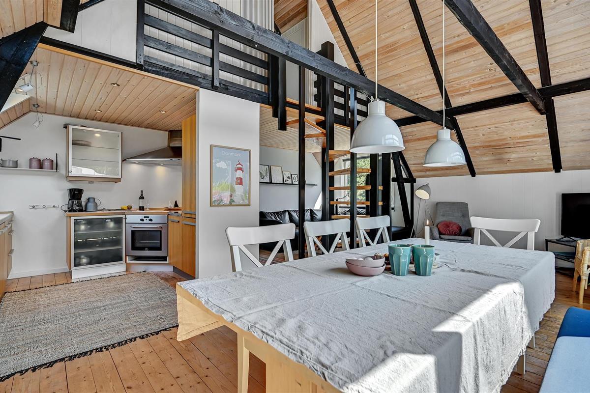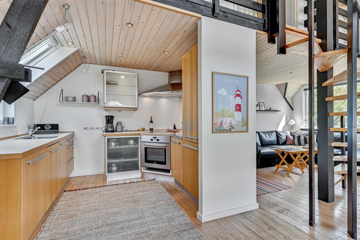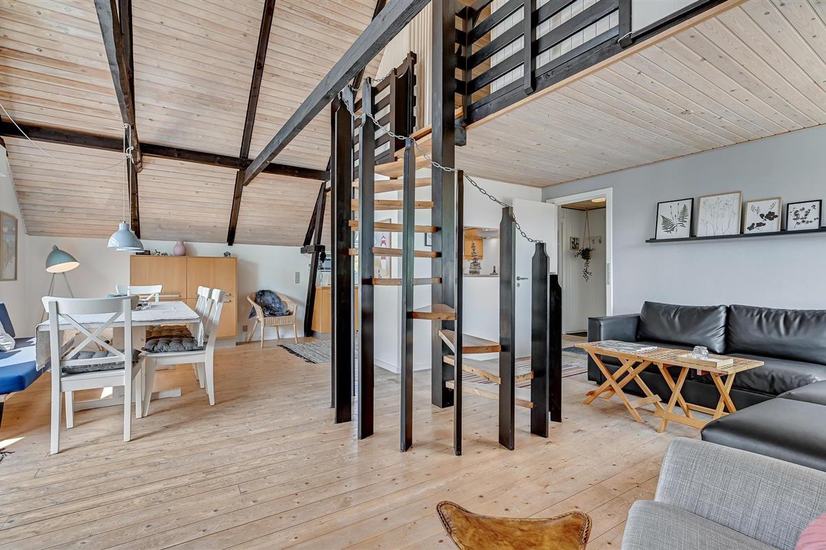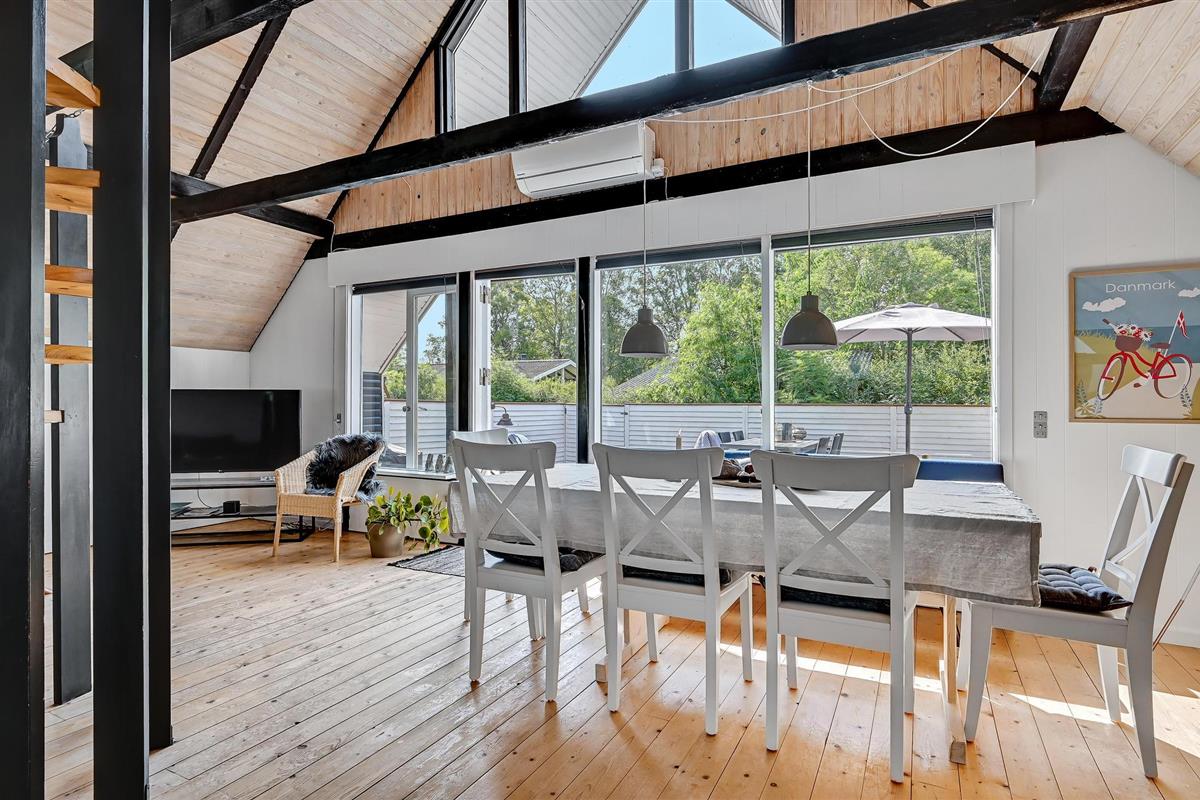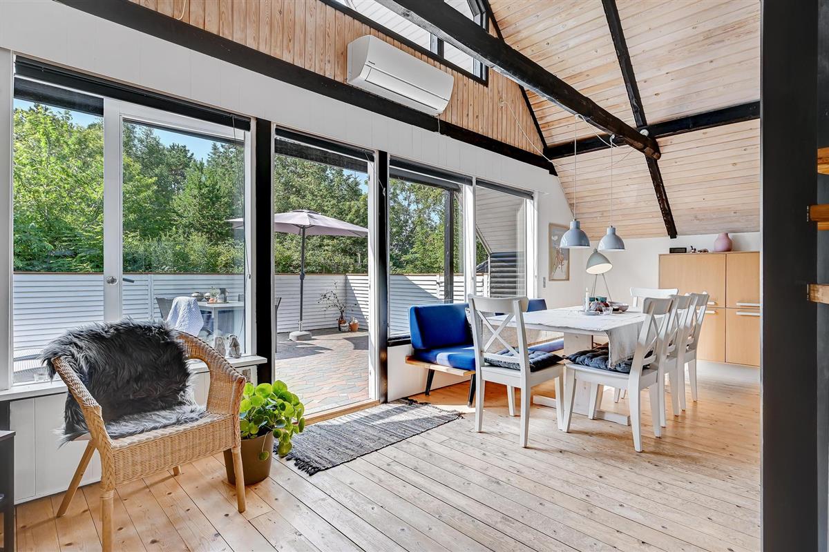 Een vakantiehuis met twee verdiepingen en gelegen op een perceel dat afgeschermd is van het uitzicht. Het interieur bestaat uit een moderne keuken op de begane grond en slaapkamers op de begane grond. Er is ook een kleine WC en een slaapkamer op de begane grond. Het terras is afgesloten en toegankelijk vanuit de woonkamer. U verblijft hier dicht bij het goede zwemstrand, waar u ook de drukke lokale vissers tegenkomt. Er zijn grote bossen, kastelen en landhuizen te bezoeken. Er is ook een goed netwerk van wandel- en fietspaden. Bezoek Grenaa, waar u veel winkels en verschillende restaurants vindt. Uw gezin zal ook genieten van het Kattegatcentrum of Djurs Sommerland.