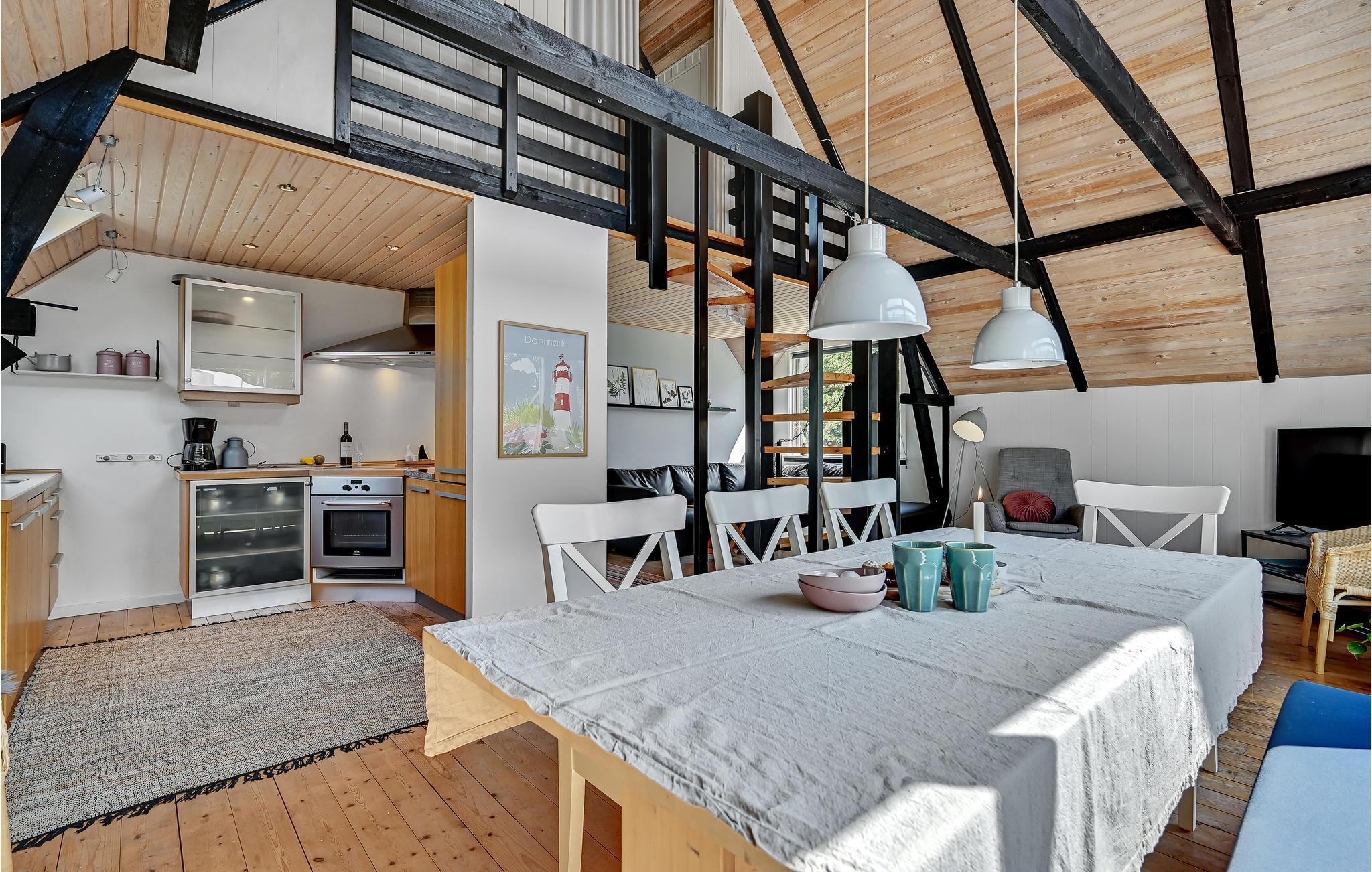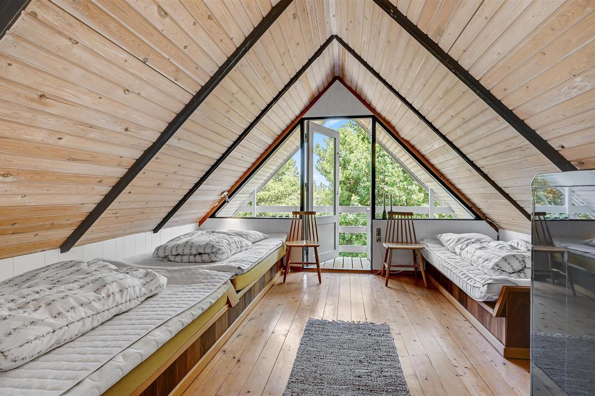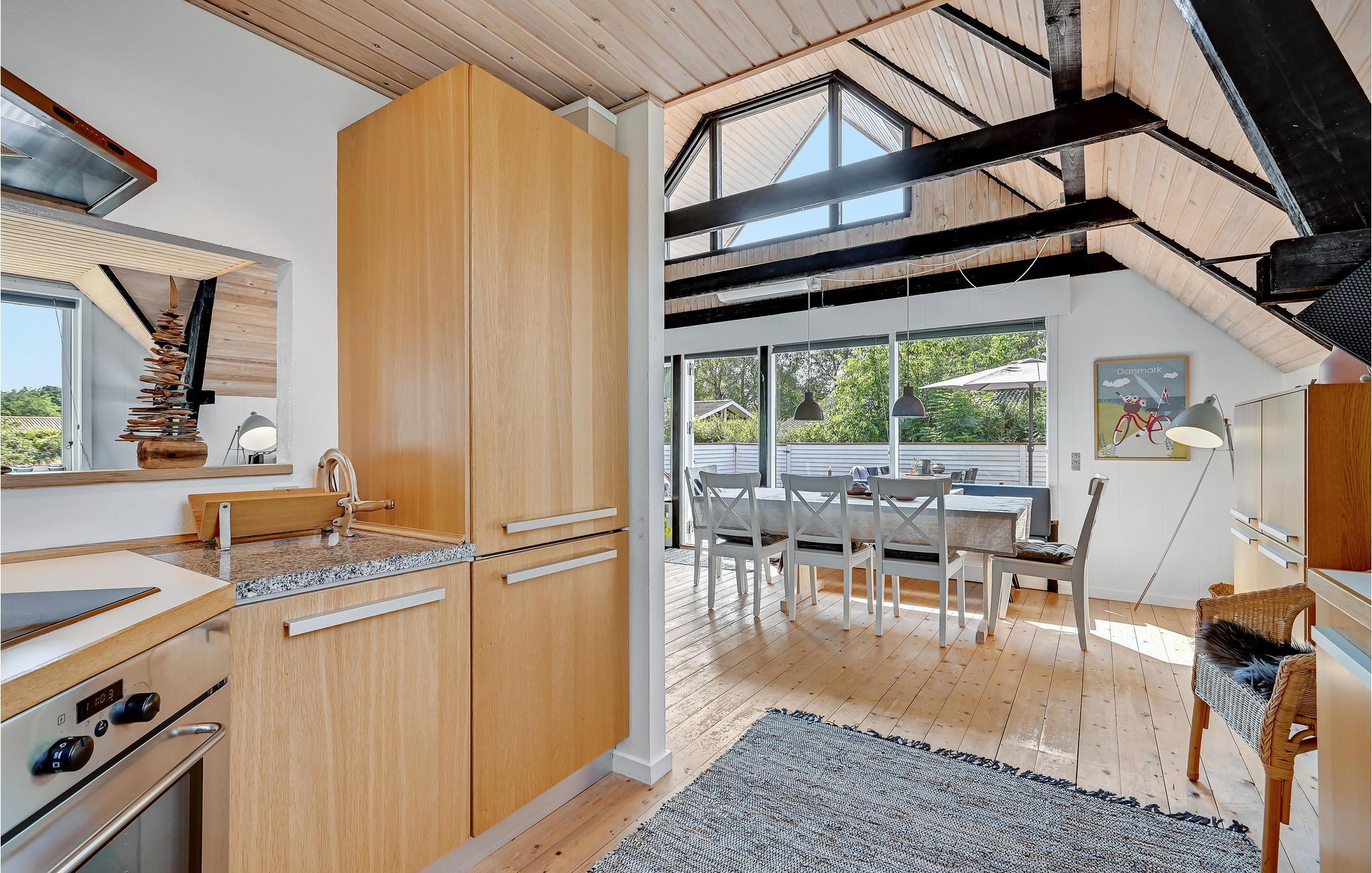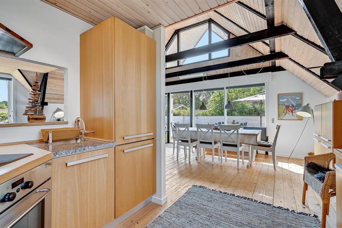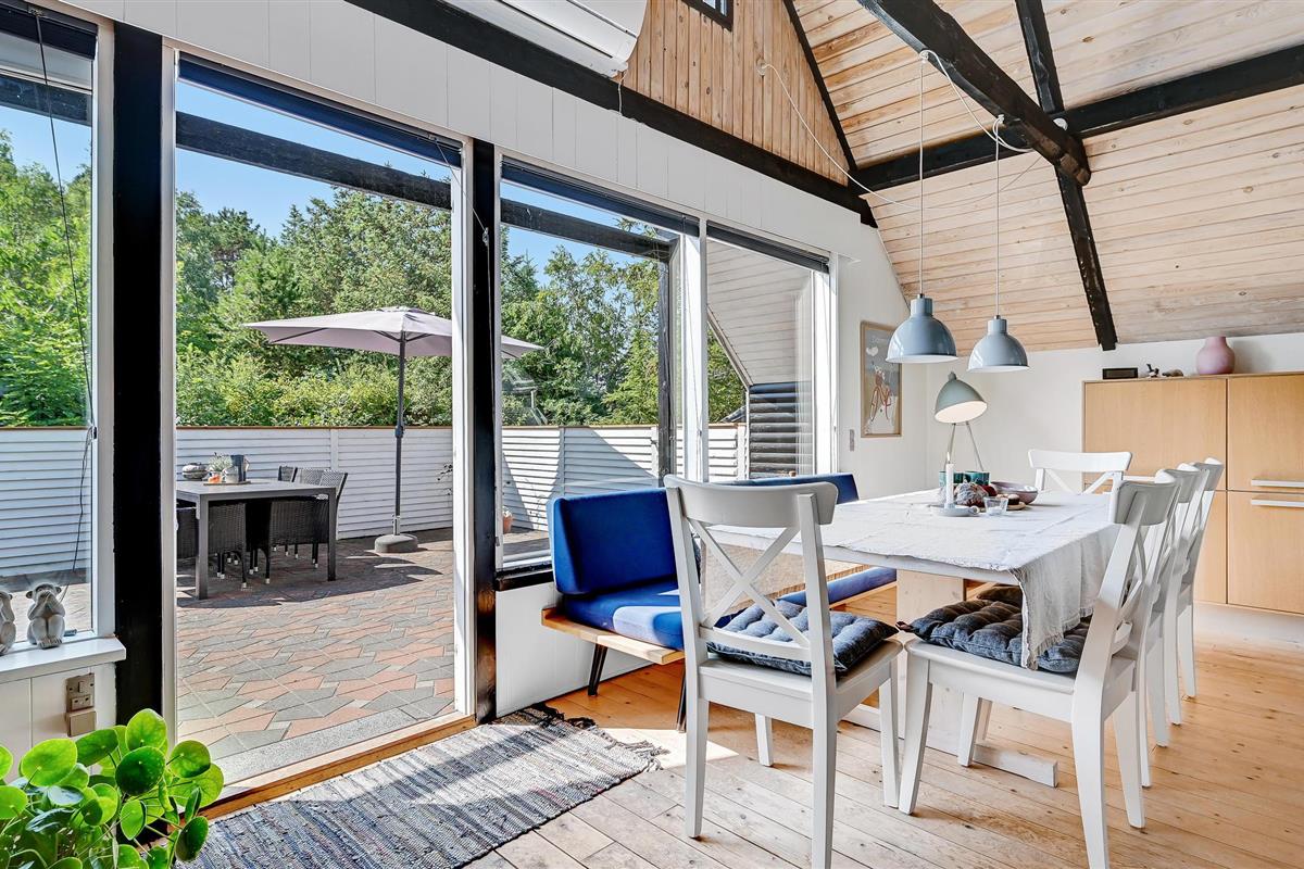 Een vakantiehuis met twee verdiepingen en gelegen op een perceel dat afgeschermd is van het uitzicht. Het interieur bestaat uit een moderne keuken op de begane grond en slaapkamers op de begane grond. Er is ook een kleine WC en een slaapkamer op de begane grond. Het terras is afgesloten en toegankelijk vanuit de woonkamer. U verblijft hier dicht bij het goede zwemstrand, waar u ook de drukke lokale vissers tegenkomt. Er zijn grote bossen, kastelen en landhuizen te bezoeken. Er is ook een goed netwerk van wandel- en fietspaden. Bezoek Grenaa, waar u veel winkels en verschillende restaurants vindt. Uw gezin zal ook genieten van het Kattegatcentrum of Djurs Sommerland.