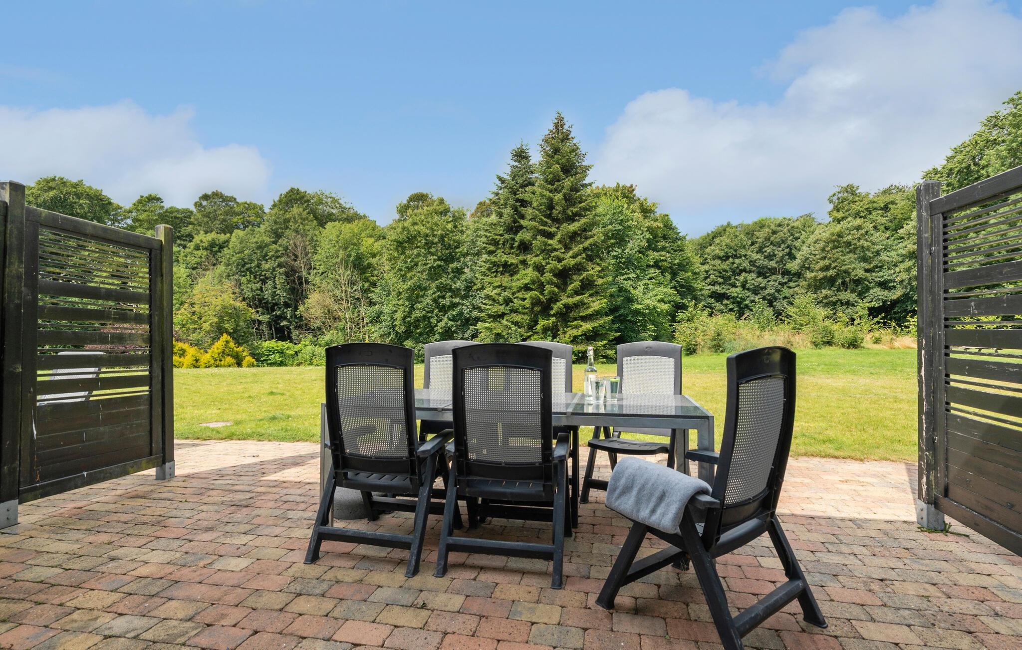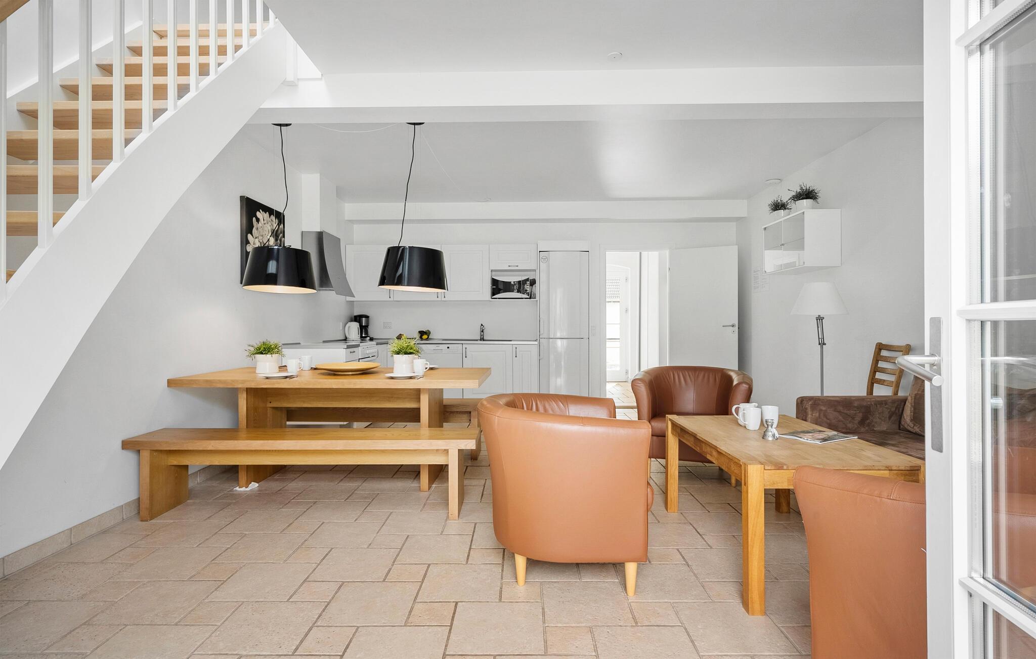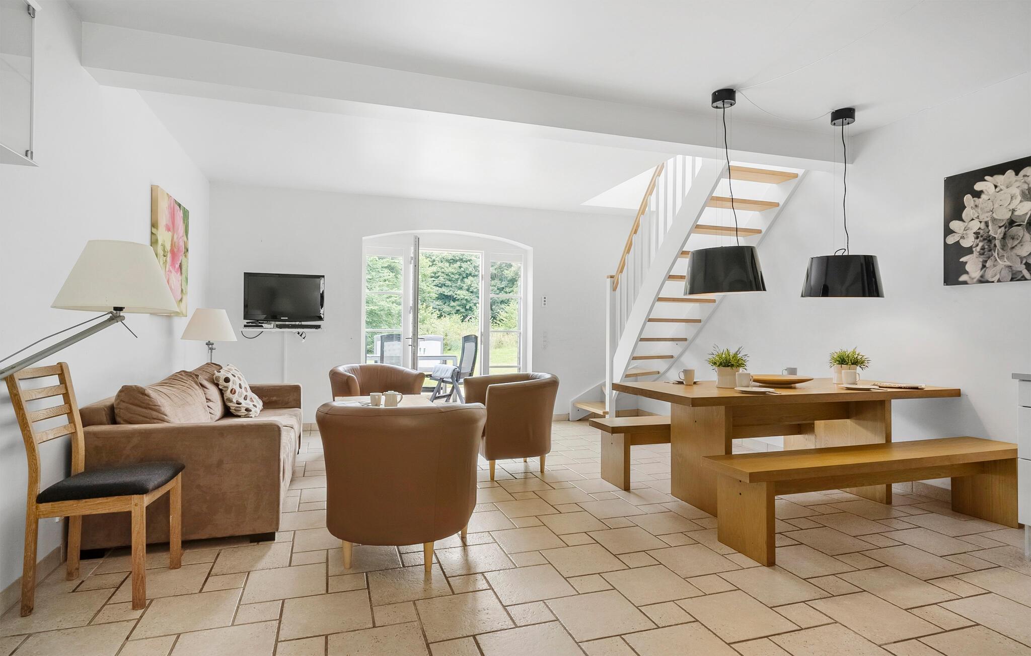 In deze vakantiewoning breng je een zorgeloze tijd door omringd door uitgestrekte natuur en prachtige landschappen. Ontspan in de gezellige woonkamer met comfortabele stoelen en directe toegang tot het terras. Geniet van de tijd samen aan de eettafel of bereid je maaltijden in de mooie keuken, die moderne apparatuur en veel werkruimte biedt. De lichte inrichting creëert een aangename sfeer waardoor je je meteen welkom voelt.