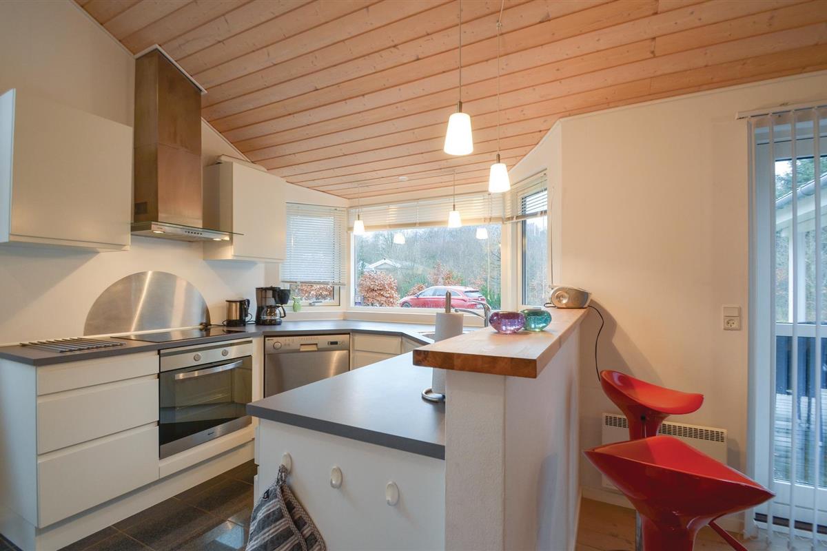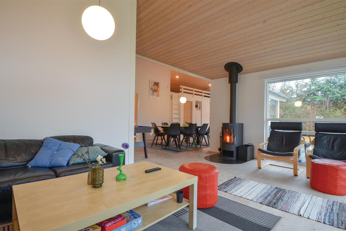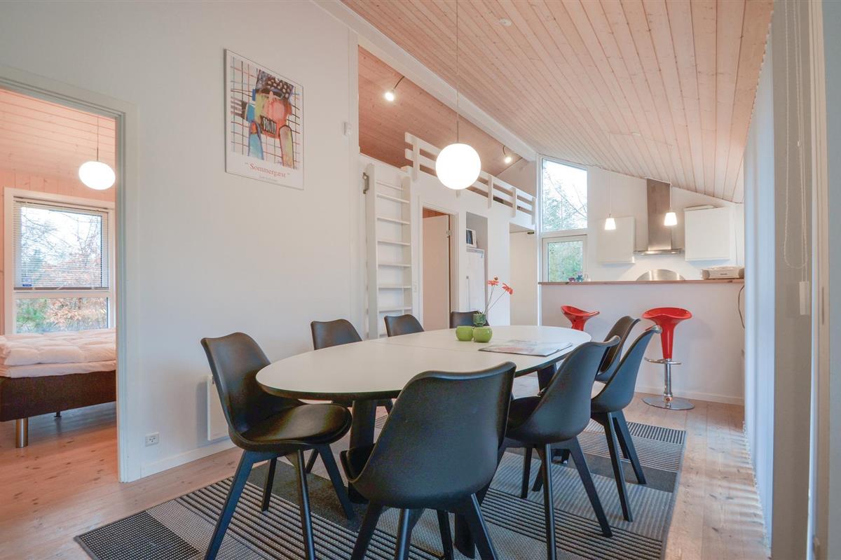 In een nieuwer en populair vakantiegebied in de buurt van een bos en een strand vindt u dit vakantiehuis waar u ongeacht het seizoen een fijne vakantie kunt hebben. Het is modern ingericht. Centraal gelegen in het huis is de eethoek met toegang tot de deels open keuken en de lichte en mooi ingerichte woonkamer. Op het overdekte terras kunt u bij elk weer van uw vakantie genieten. Fjellerup Strand met zijn zand en duinen is zeer geschikt voor gezinnen met kinderen. Het gebied is een goed uitgangspunt voor bezoeken aan de vele attracties in Djursland.