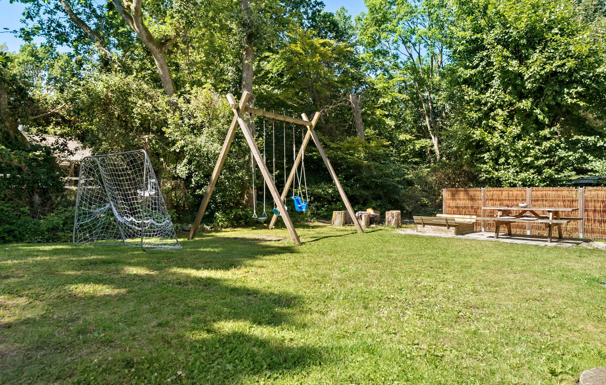 Buiten kunt u van de zon genieten op comfortabele ligstoelen en ontspannen op het terras. Er is een voetbaldoel op het terrein.