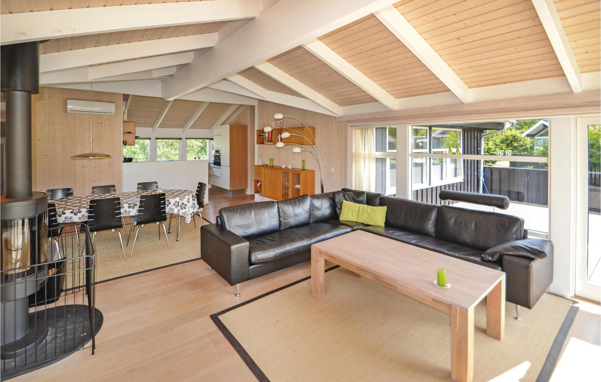 Modern en stijlvol vakantiehuis nabij het strand met comfortabele slaapkamers en ruime buitenruimte.