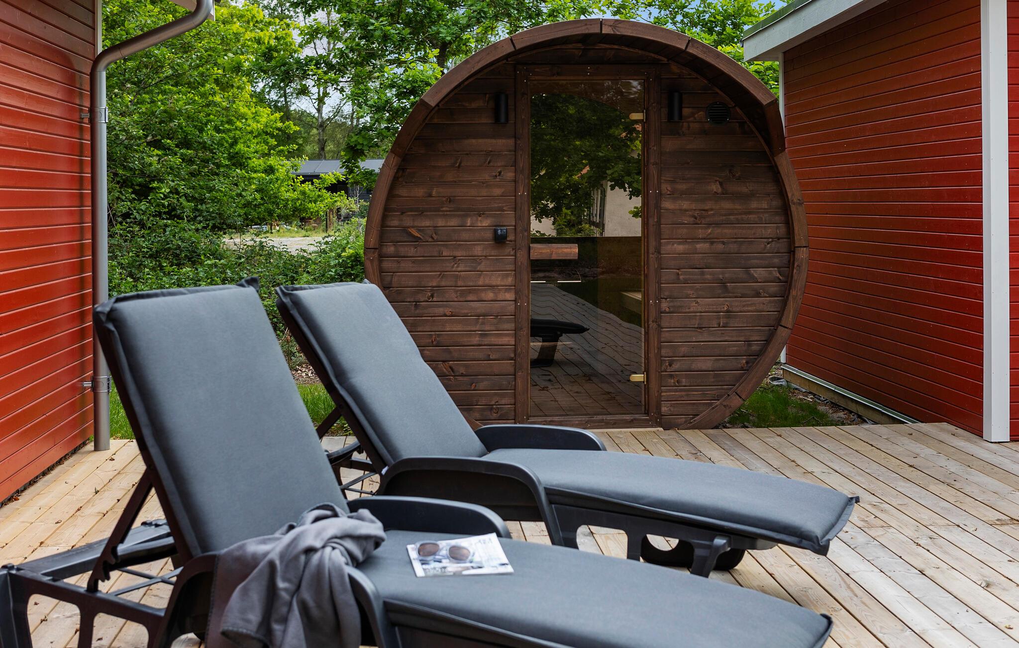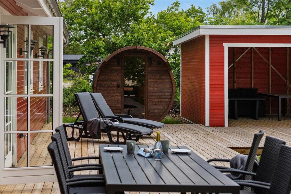Geniet van de rustige sfeer op het ruime terras en maak gebruik van de eigen wellnessfaciliteiten. Ontspan in de weldadige warmte van de barrelsauna en spring af en toe in het gezellige Finse houten bad.