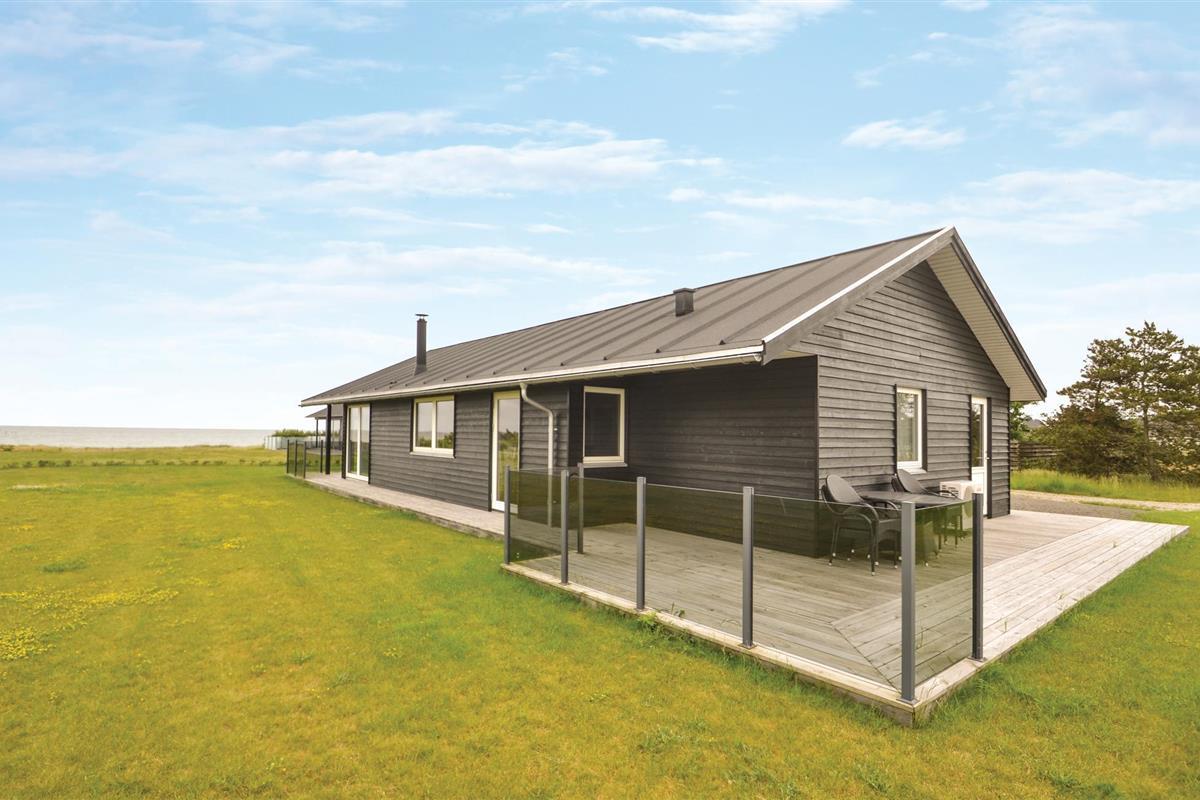 Geniet van een prachtig vakantiehuis met privéstrand en panoramisch uitzicht vlakbij het water in Fjellerup Strand.
