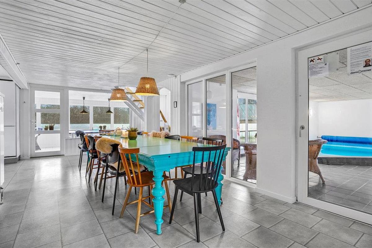 Niet ver van het goede strand in Fjellerup ligt dit ruime poolhouse. Er zijn hier 6 slaapkamers en 2 badkamers, ideaal voor een gedeelde vakantie voor 2 gezinnen. In de zwembadkamer vindt u het zwembad met het tegenstroomsysteem, de whirlpool, de sauna en een van de twee badkamers. Geniet van uw koffie op het grote terras terwijl u wacht tot de barbecue warm genoeg is. Op het grote natuurlijke terrein kunt u een balletje slaan. In de buurt kunt u minigolfen, tennissen of golfen. Bezoek ook Djurs Sommerland.