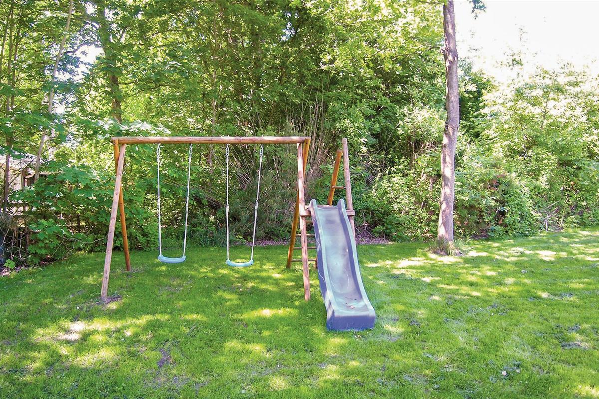 Geniet van dit gerenoveerde vakantiehuis bij Fjellerup Strand met sauna, whirlpool en speeltoestellen op een ruim terrein.