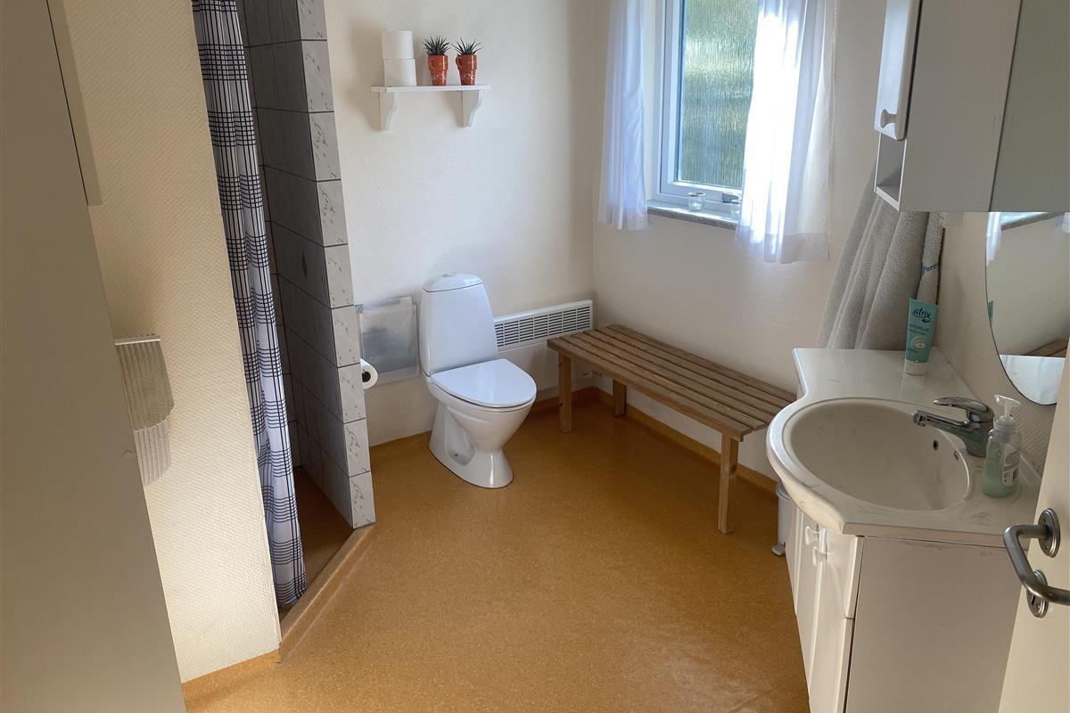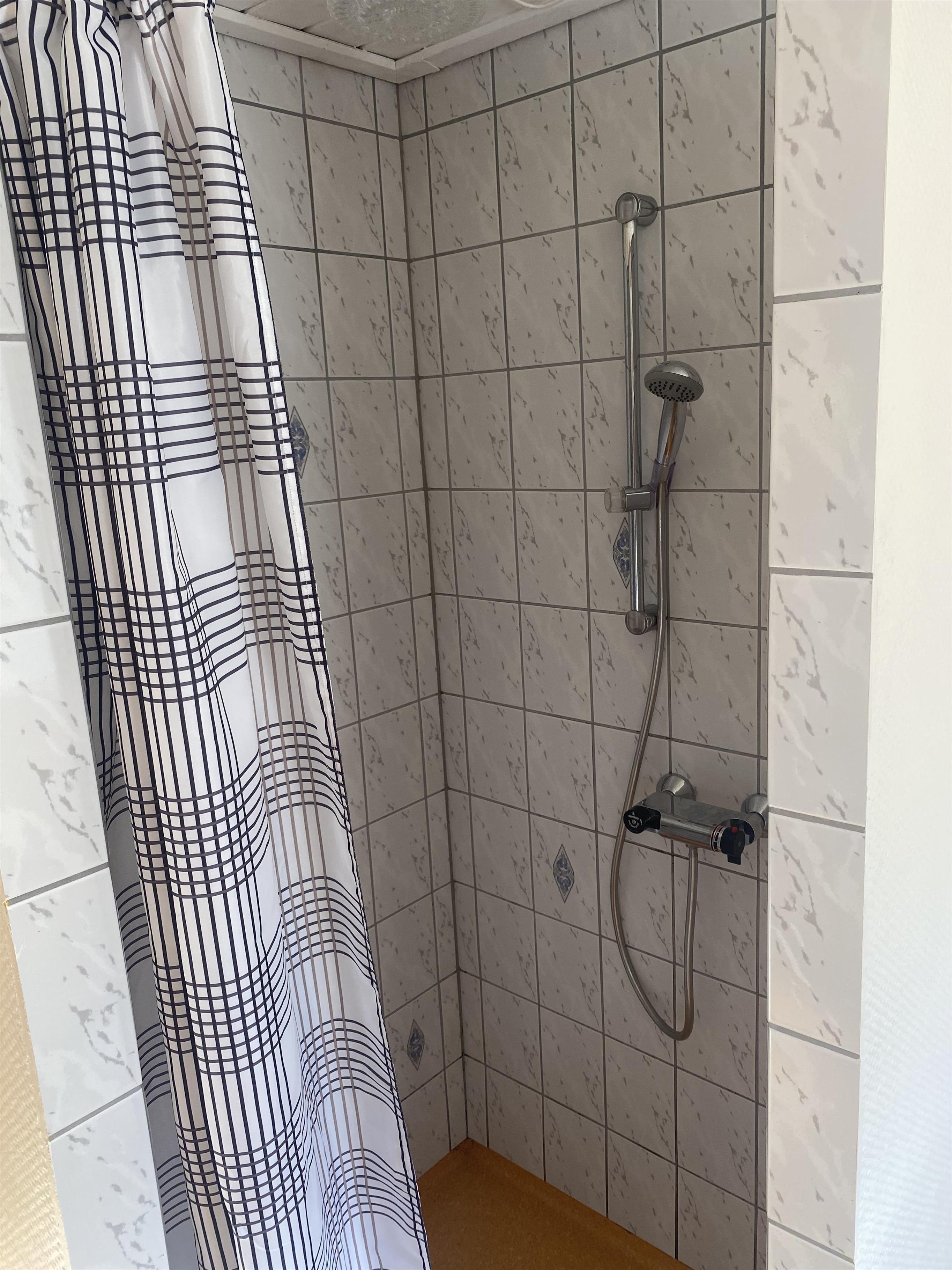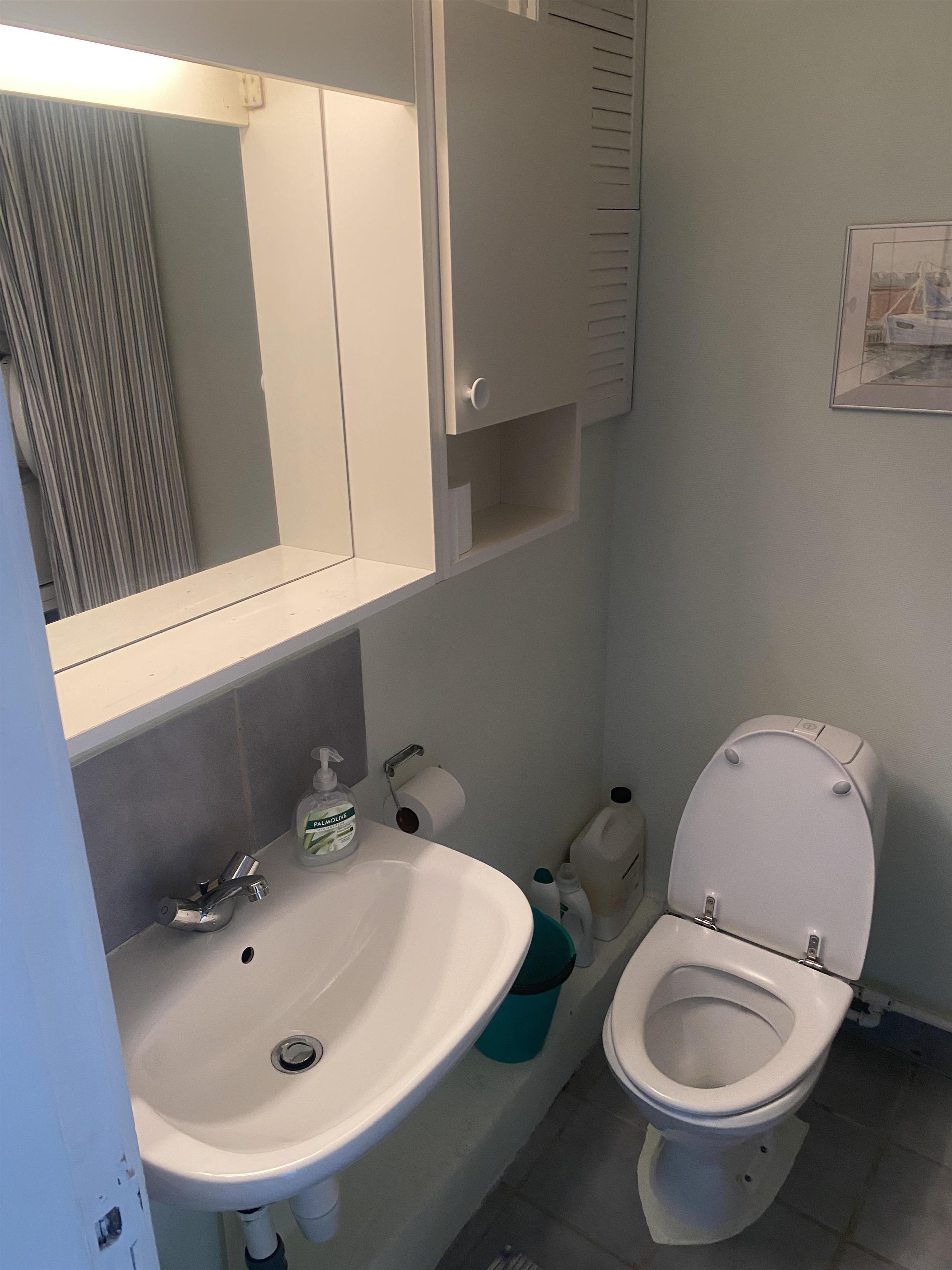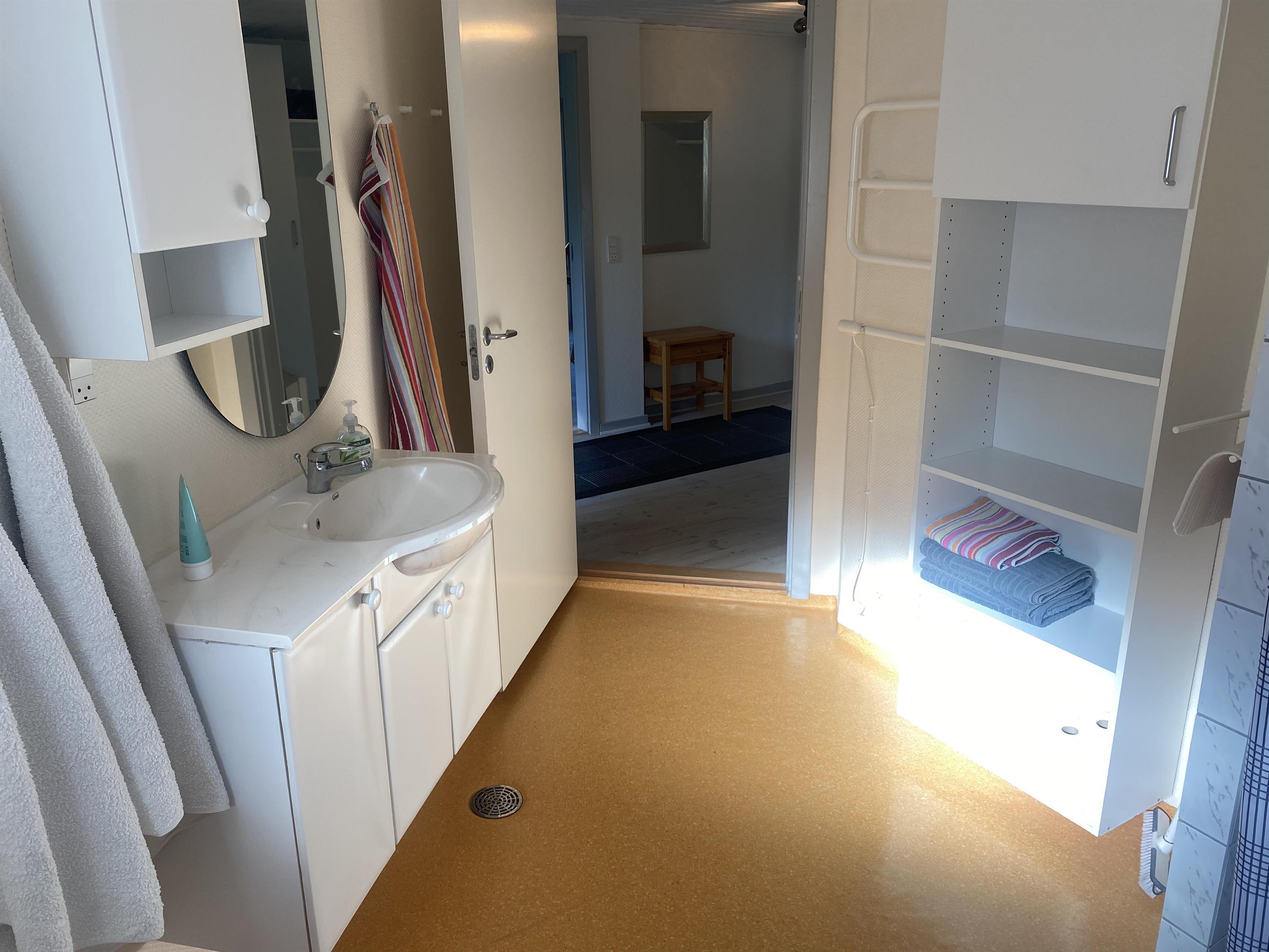 Es gibt ein Badezimmer mit Schrank, Dusche und WC sowie ein zusätzliches WC mit Waschbecken. Hier finden Sie auch Waschmaschine und Trockner.