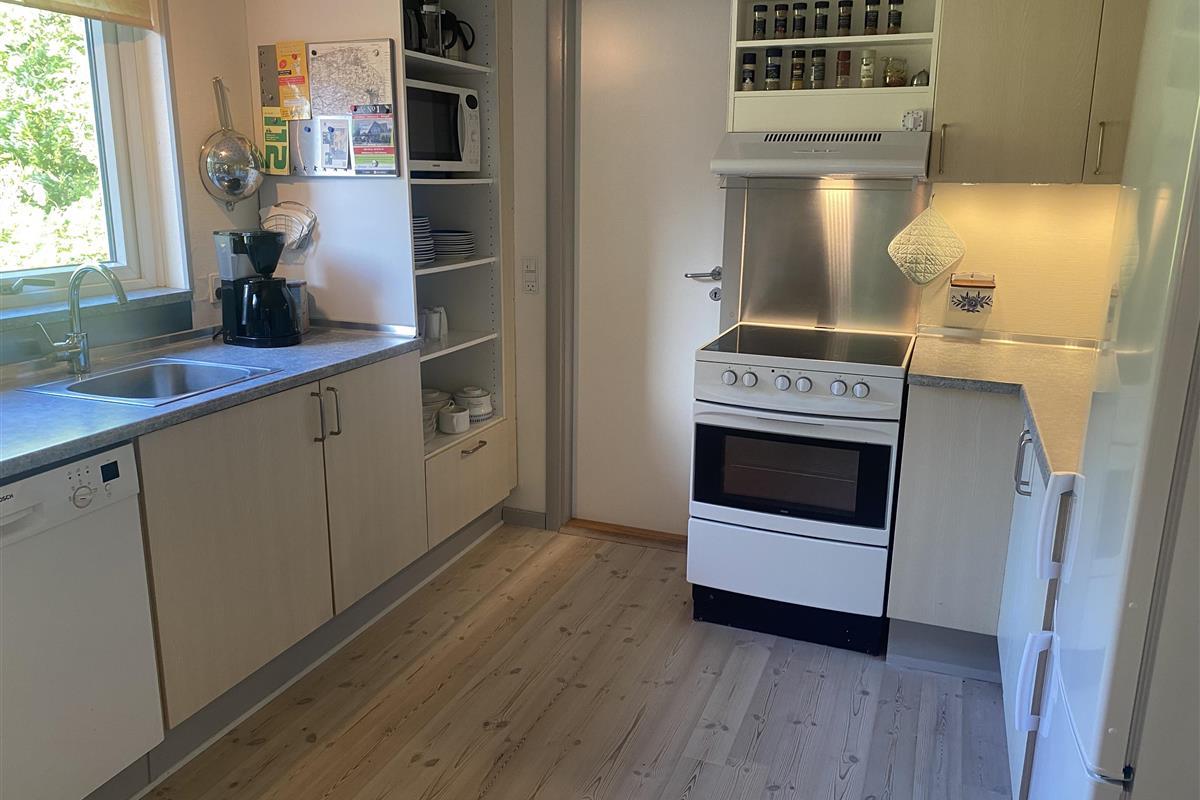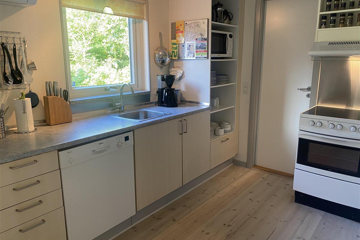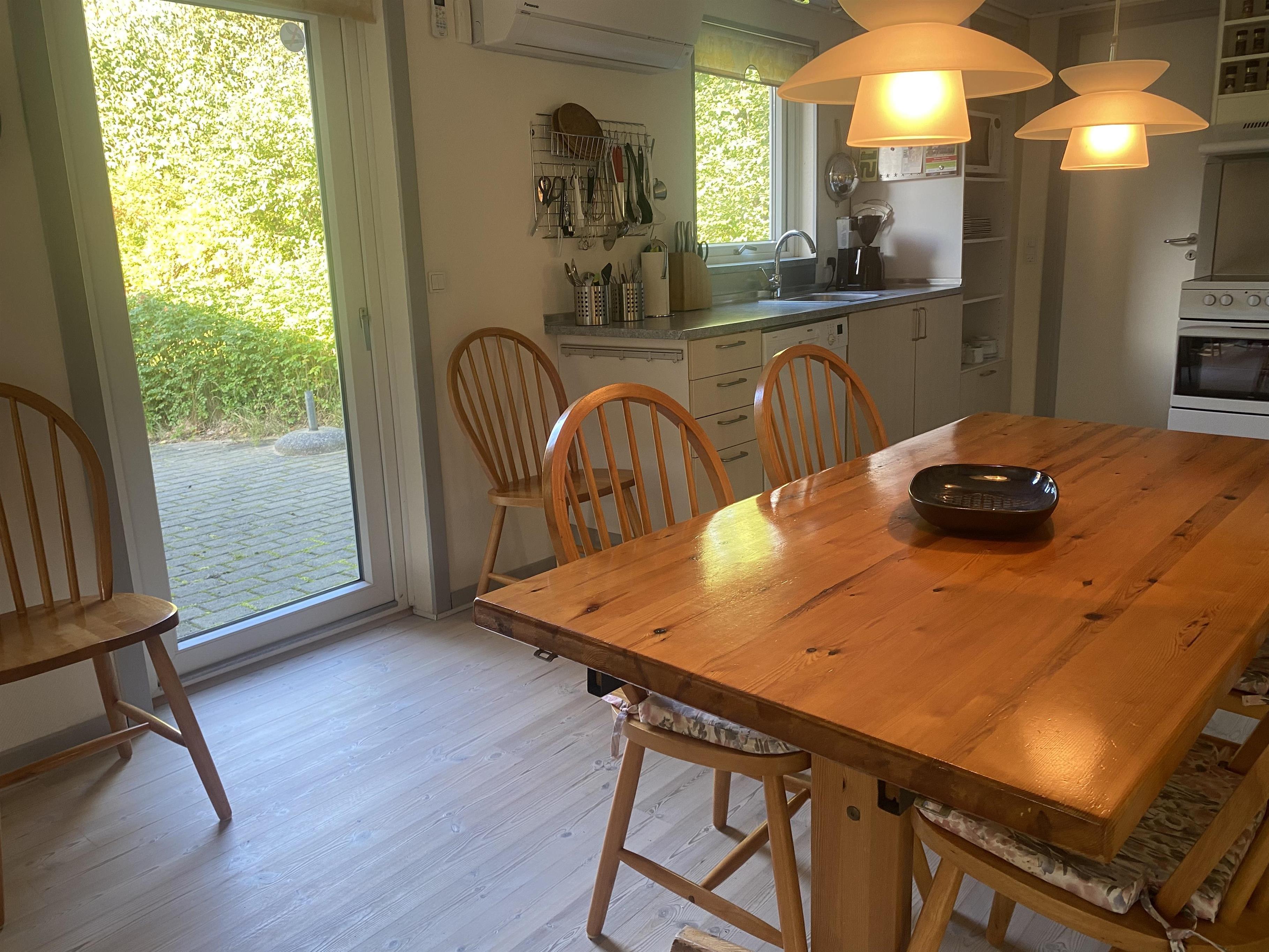 Das Haus hat eine schöne Küche mit Spülmaschine in offener Verbindung mit einem praktischen Essbereich und mit dem Wohnzimmer, das mit einem großen Ecksofa ausgestattet ist, das die Familie vor dem Fernseher genießen kann. Wenn Brettspiele gespielt werden sollen, gibt es auch einen "Spieltisch" mit Korbstühlen herum, wo Sie alle zusammensitzen können! Es gibt einen Holzofen und auch eine Wärmepumpe.