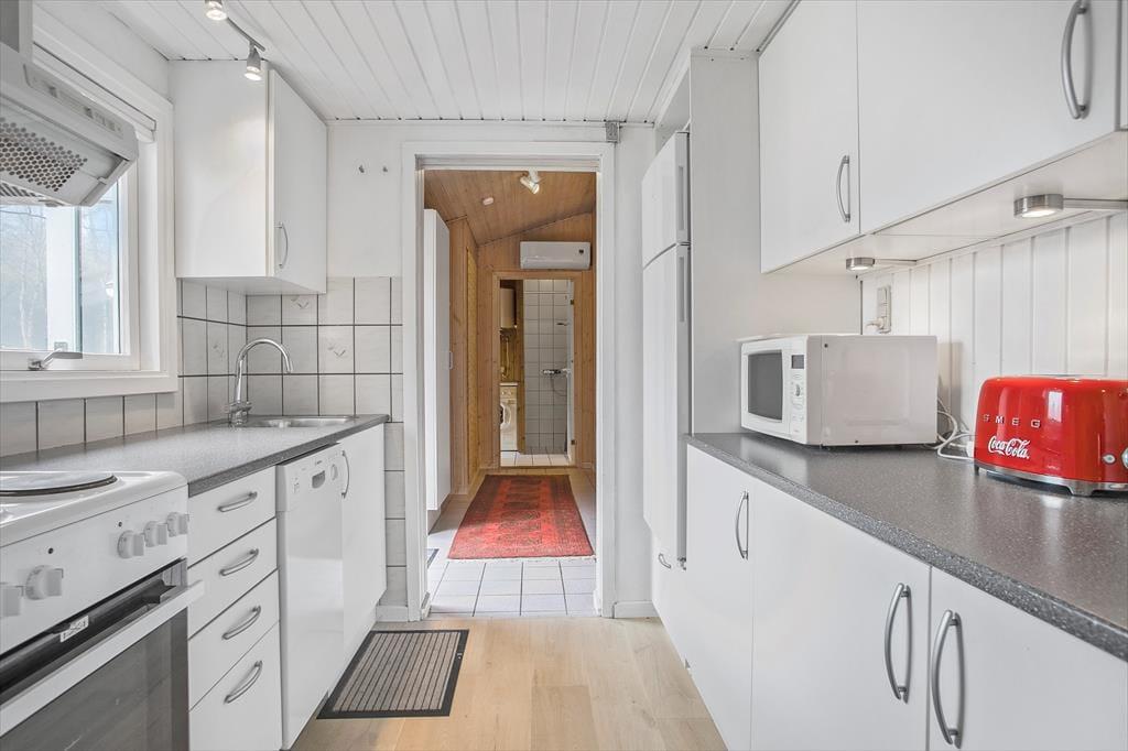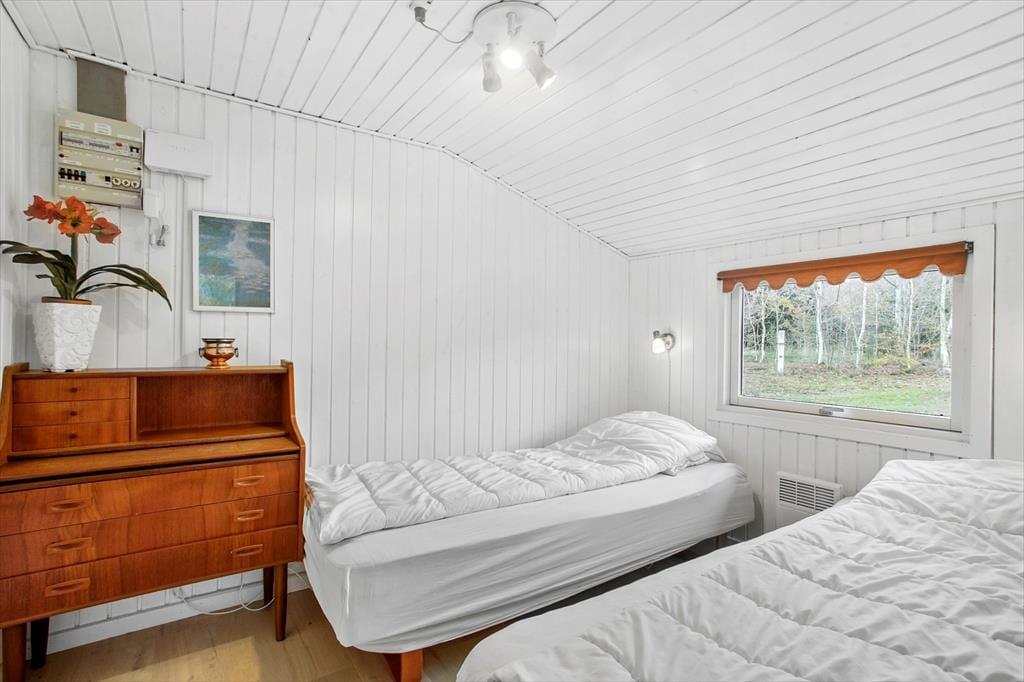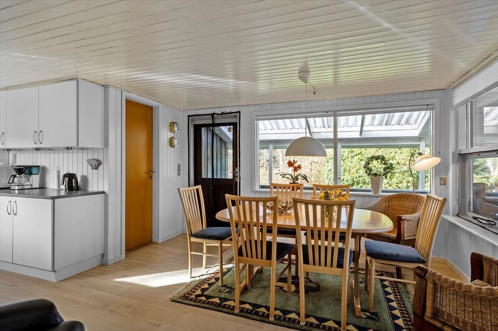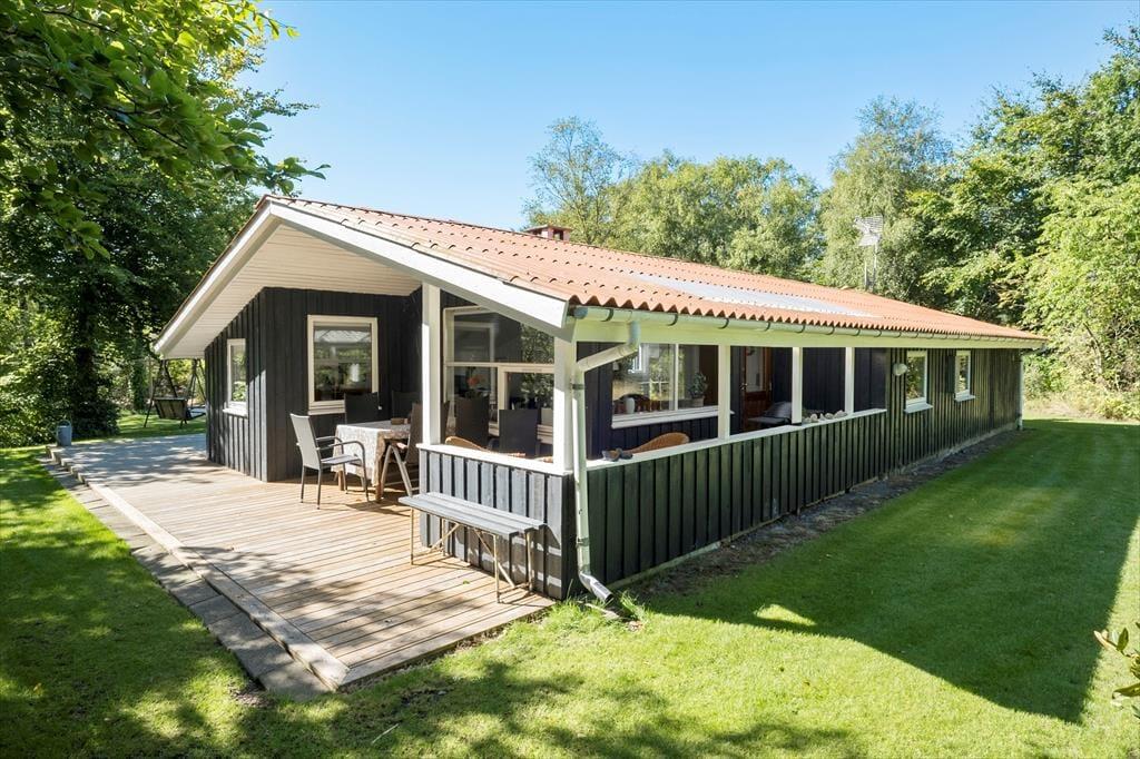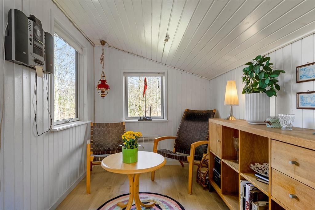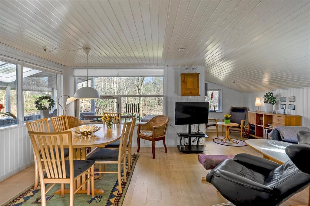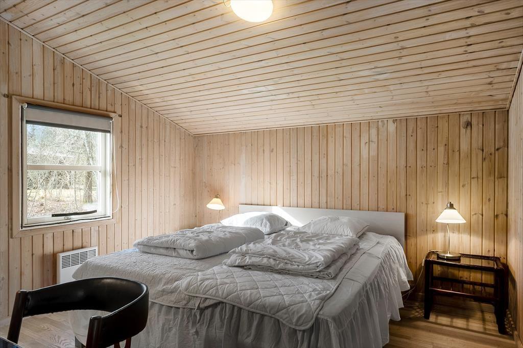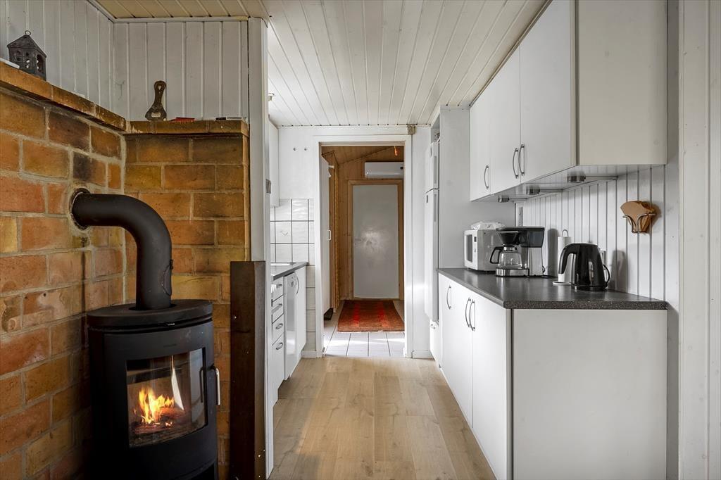 Das Ferienhaus wurde 1965 erbaut und zuletzt im Jahre 2020 renoviert, so dass dieses schön und gepflegt hervortritt. Mit drei Schlafzimmern, einem Badezimmer und einem Wohnzimmer mit offener Verbindung zur Küche ist der Bauplan gut durchdacht, und Sie können somit leicht mit sechs Personen das Ferienhaus bewohnen. Das Interieur passt sich gut den gemütlichen Räumen an – nicht zuletzt im Wohnzimmer, wo ein Kaminofen mit seinem Feuer die warme und freundliche Atmosphäre unterstützt. Apropos Wärme, so liegt in der Verlängerung des Badezimmers eine Sauna, und diese kann besonders dann in Gebrauch genommen werden, wenn Sie Ihre Ferien in den kühlen Jahreszeiten verbringen. Im Übrigen muss bemerkt werden, dass wenn Sie dänisches TV sehen möchten, müssen Sie via Chromecast streamen auf eigenen mitgebrachten Einheiten.