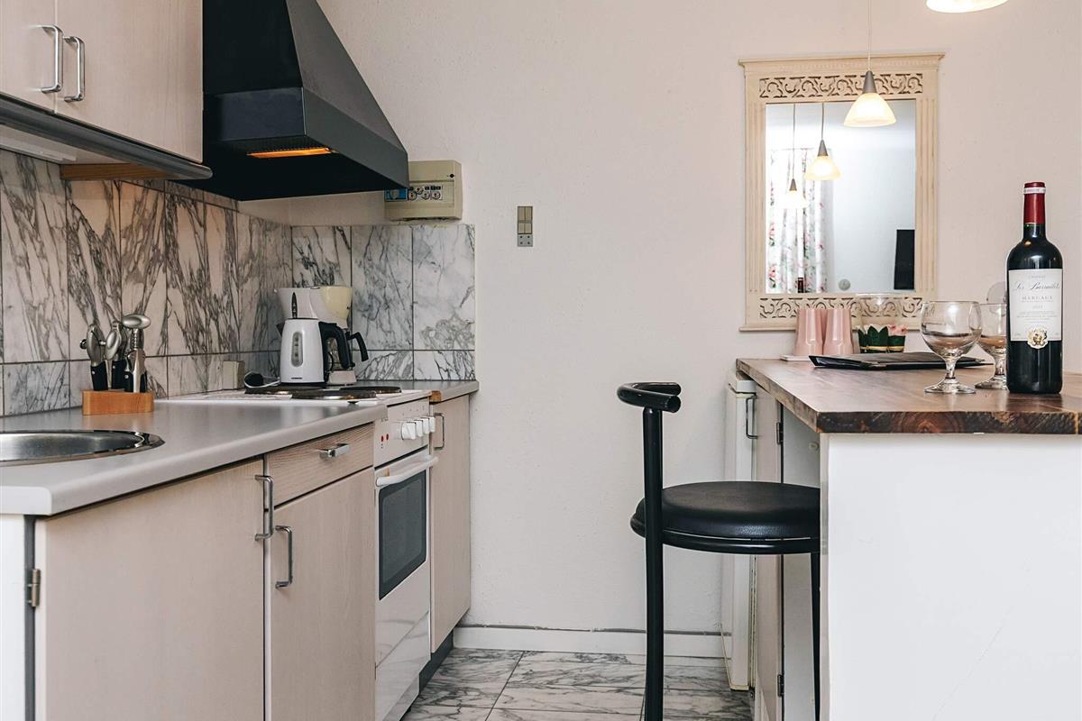 Køkken: El-komfur, køleskab m/frostboks, kaffemaskine