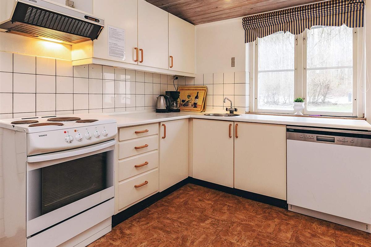 Køkken: El-komfur, køleskab, fryser 60 - 99 l, kaffemaskine, opvaskemask.