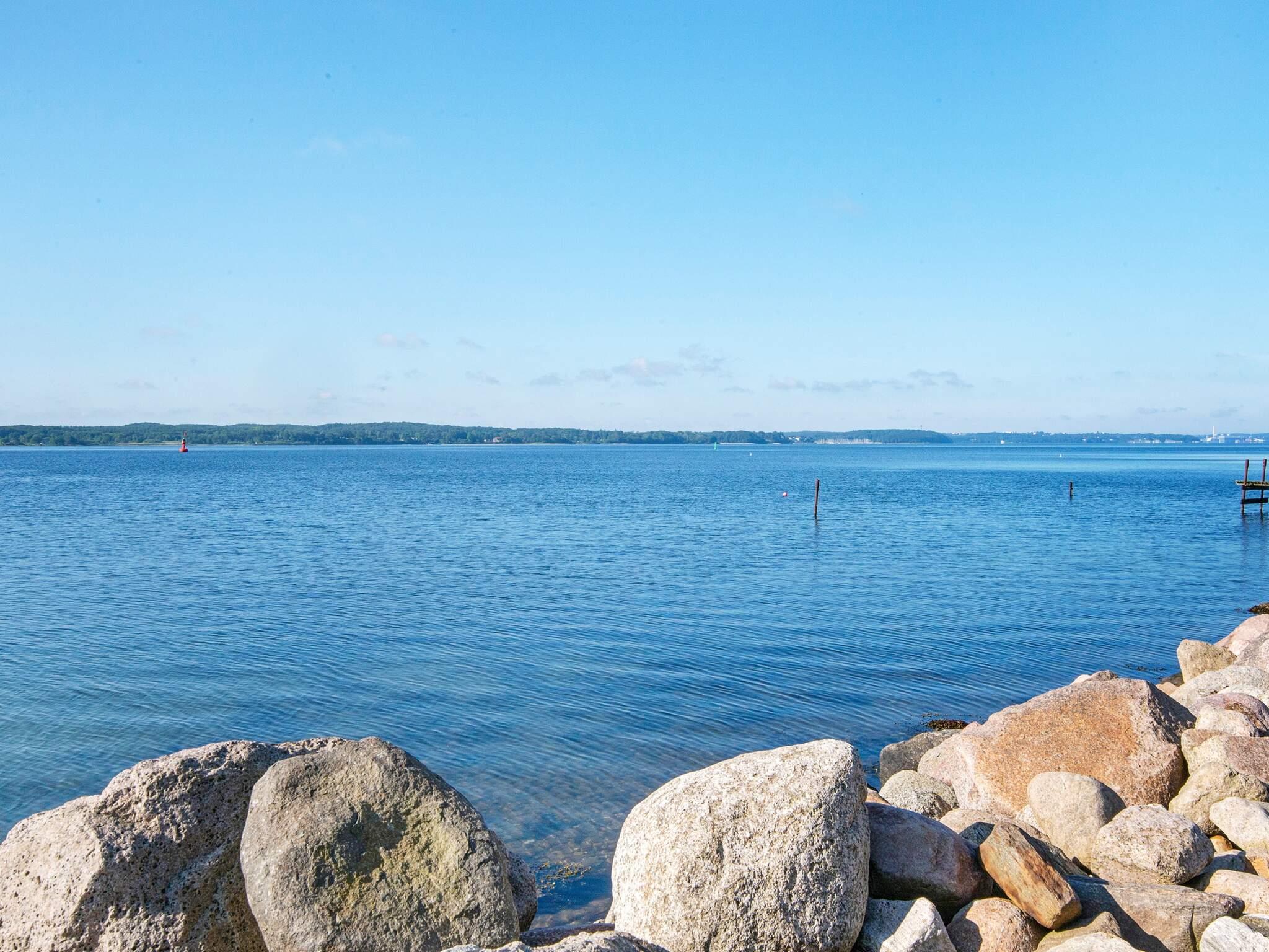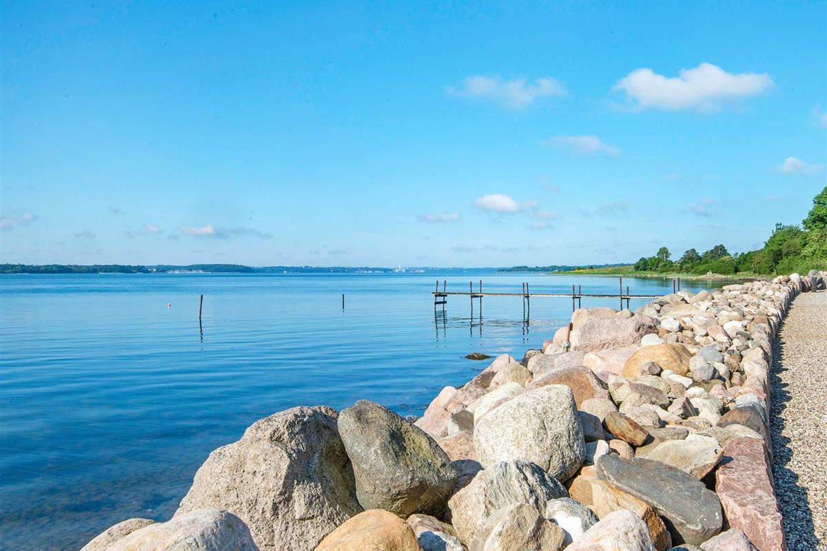 Sie wohnen hier unweit der deutschen Grenze in ruhiger Umgebung, direkt am attraktiven Badestrand. Nur 2 km weiter liegt an der Küste ein attraktiver Golfplatz. Gute Angelmöglichkeiten in der Förde.