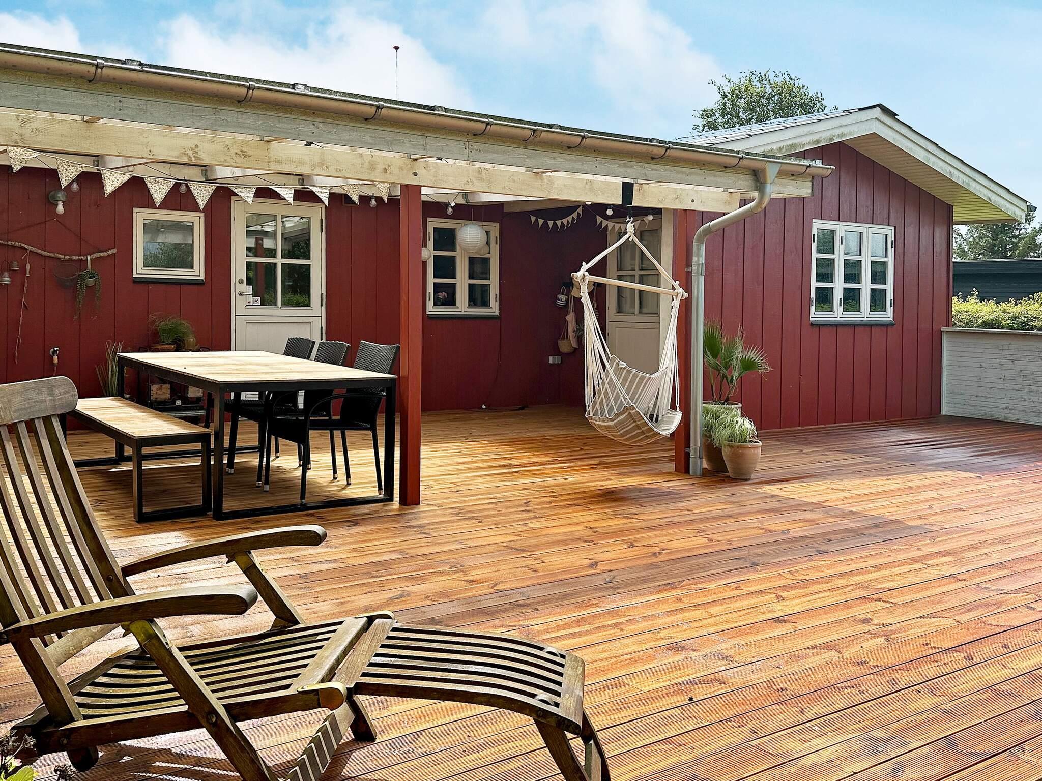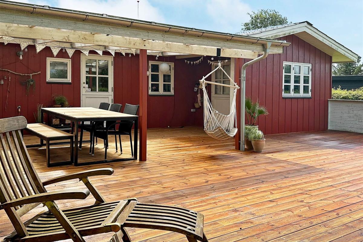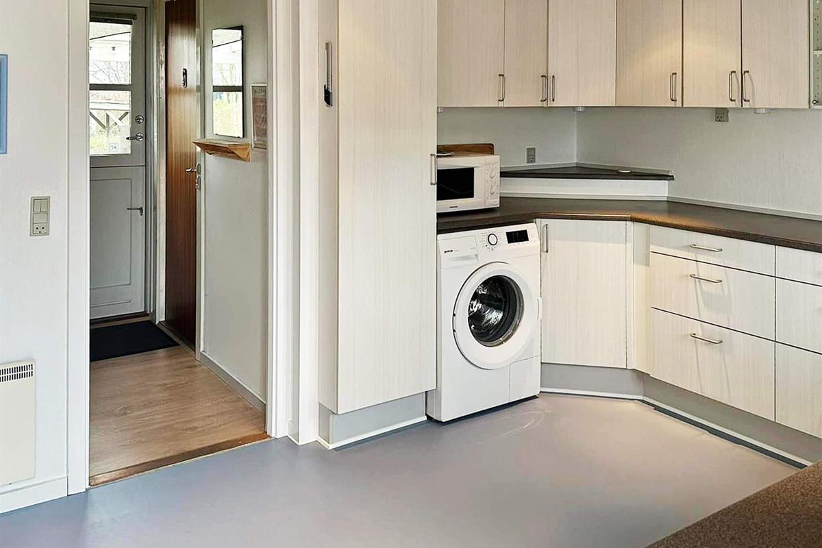 Willkommen in diesem einladenden Ferienhaus am wunderschönen Flovt Beach – der perfekte Ort für einen erholsamen Familienurlaub. Das Haus ist mit modernen Annehmlichkeiten wie Wärmepumpe, Geschirrspüler und Waschmaschine ausgestattet. Das helle Wohnzimmer mit seinen vielen Fenstern durchflutet den Innenraum mit Tageslicht und schafft eine einladende Atmosphäre. Eine geräumige Küche, zwei komfortable Schlafzimmer – eines mit Doppelbett und eines mit Etagenbett – sowie ein separater Anbau mit einem zusätzlichen Doppelbett bieten Schlafgelegenheiten für die ganze Familie.