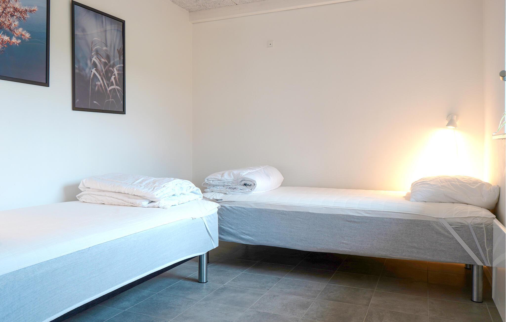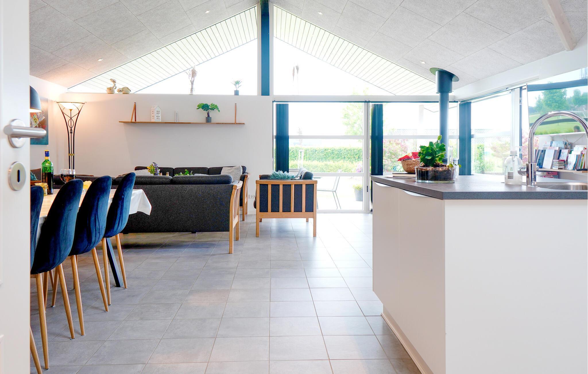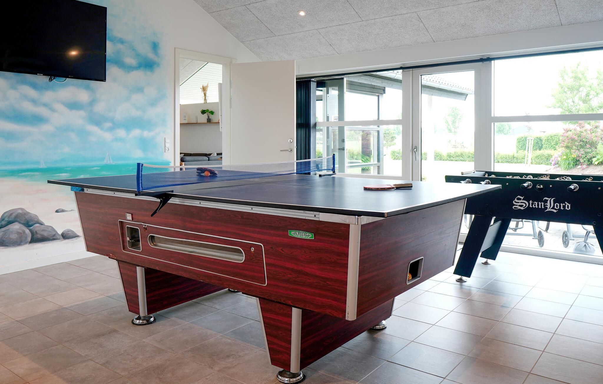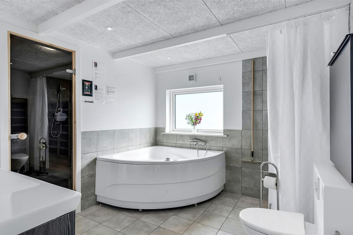 Dit mooie vakantiehuis ligt in een vakantiehuisgebied bij Flovt Strand, dat met zijn prachtige natuur en heerlijke zandstrand uitnodigt tot een geweldige vakantie. Het huis is licht ingericht met 4 goede slaapkamers. In de grote activiteitenruimte kunt u vele uren doorbrengen met tafelvoetbal en biljart. Verder is er een uitnodigende en ruime woonkamer met open keuken en eethoek. Daarnaast zijn er 2 mooie badkamers, waarvan één met een sauna, zodat u die pijnlijke spieren kunt ontspannen. Entertainment is voorzien met bobspil, tafeltennis en badminton.