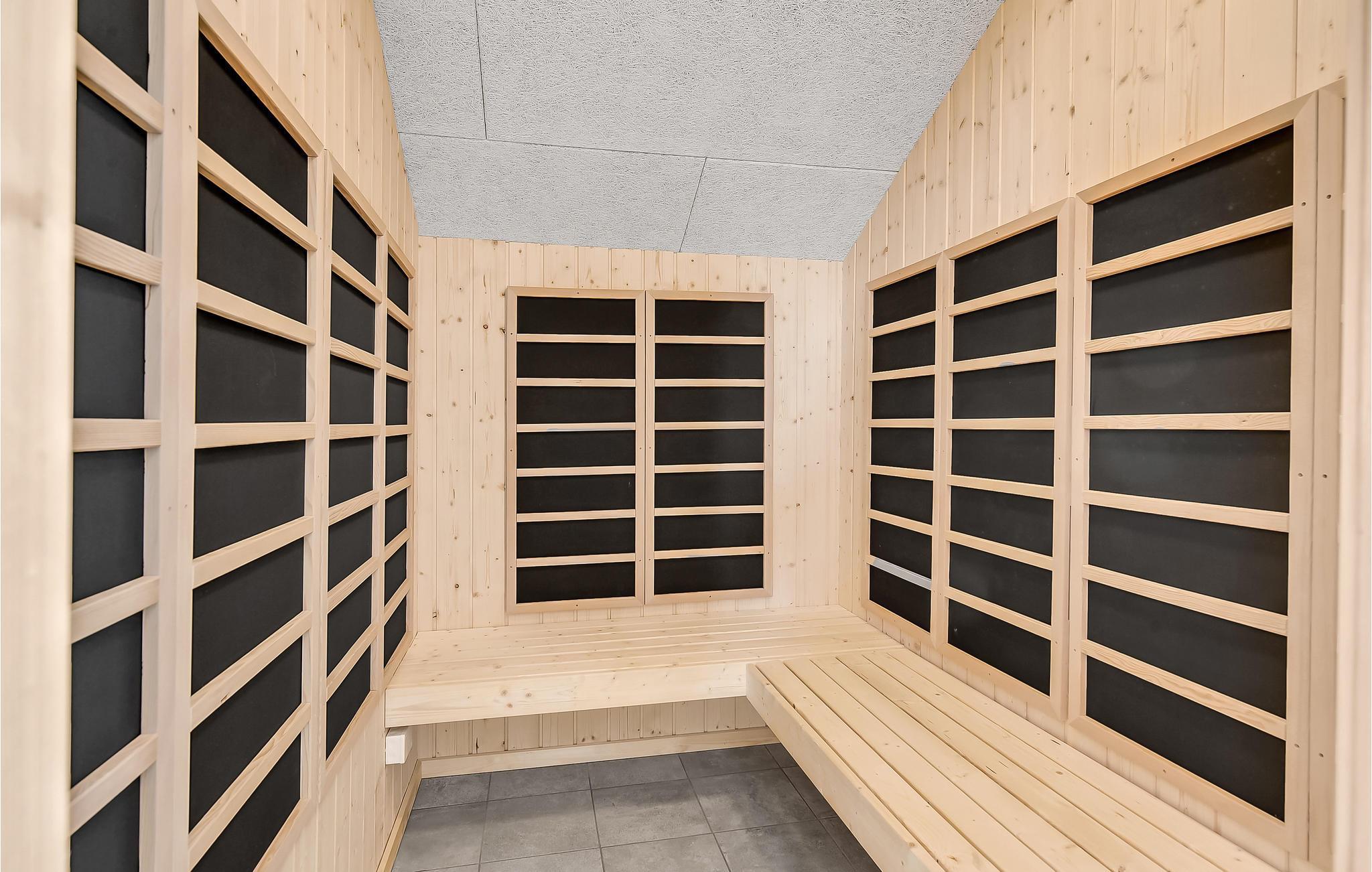 Modern wellness vakantiehuis bij Flovt Strand met hot tub, sauna en rolstoeltoegankelijk ontwerp voor een ontspannen verblijf.
