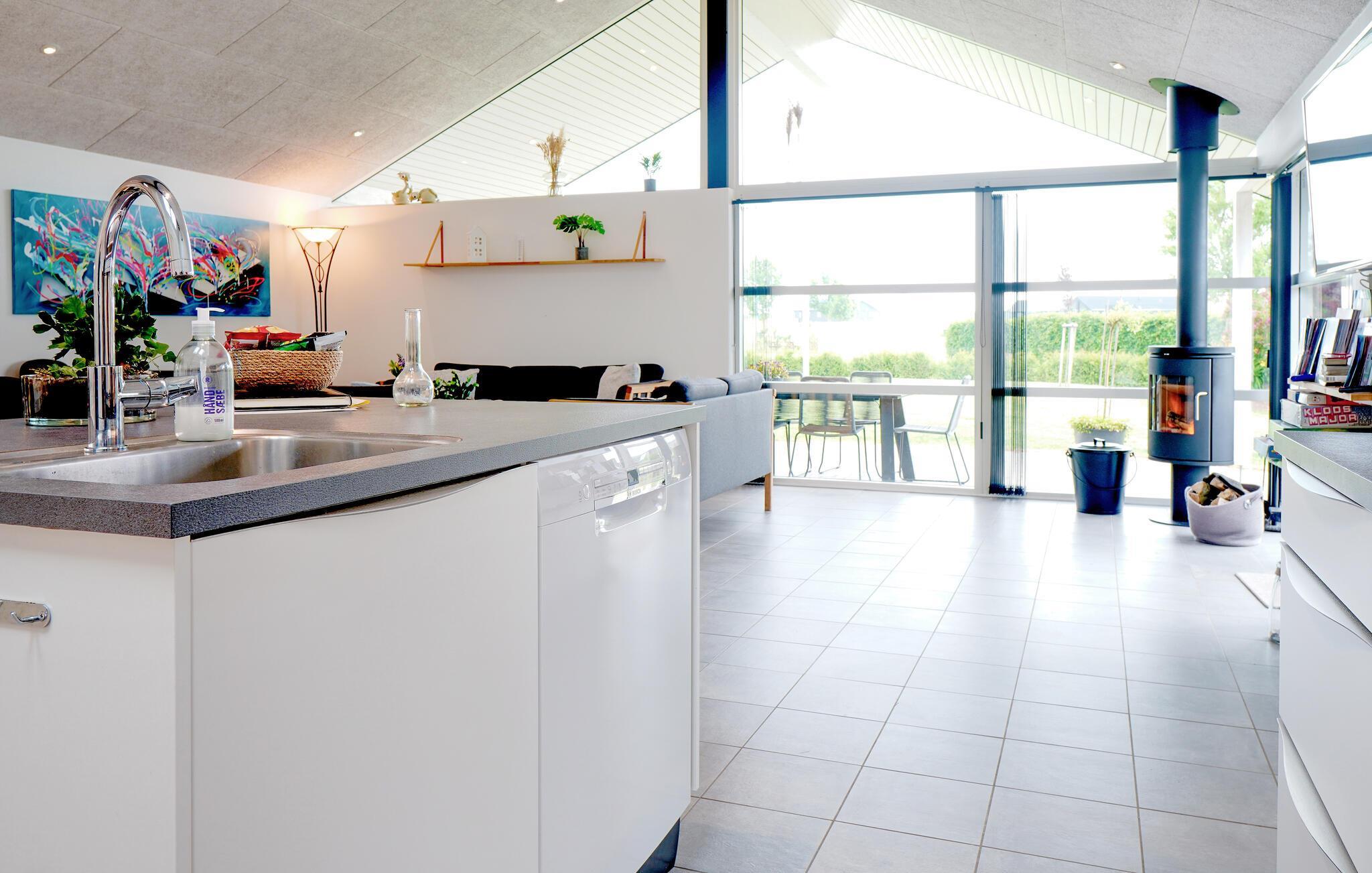 Op het grote terras vindt u een hot tub die het hele jaar door gebruikt kan worden. Het huis is ontworpen met grote deuren en gemakkelijke toegang tot het huis. Een vakantie in Flovt Strand biedt vele ervaringen in een landschap van groene velden en valleien, bossen en fjorden die uitmonden in Lillebælt. Een echt gezinsvriendelijk gebied met prachtige stranden en rustig water.