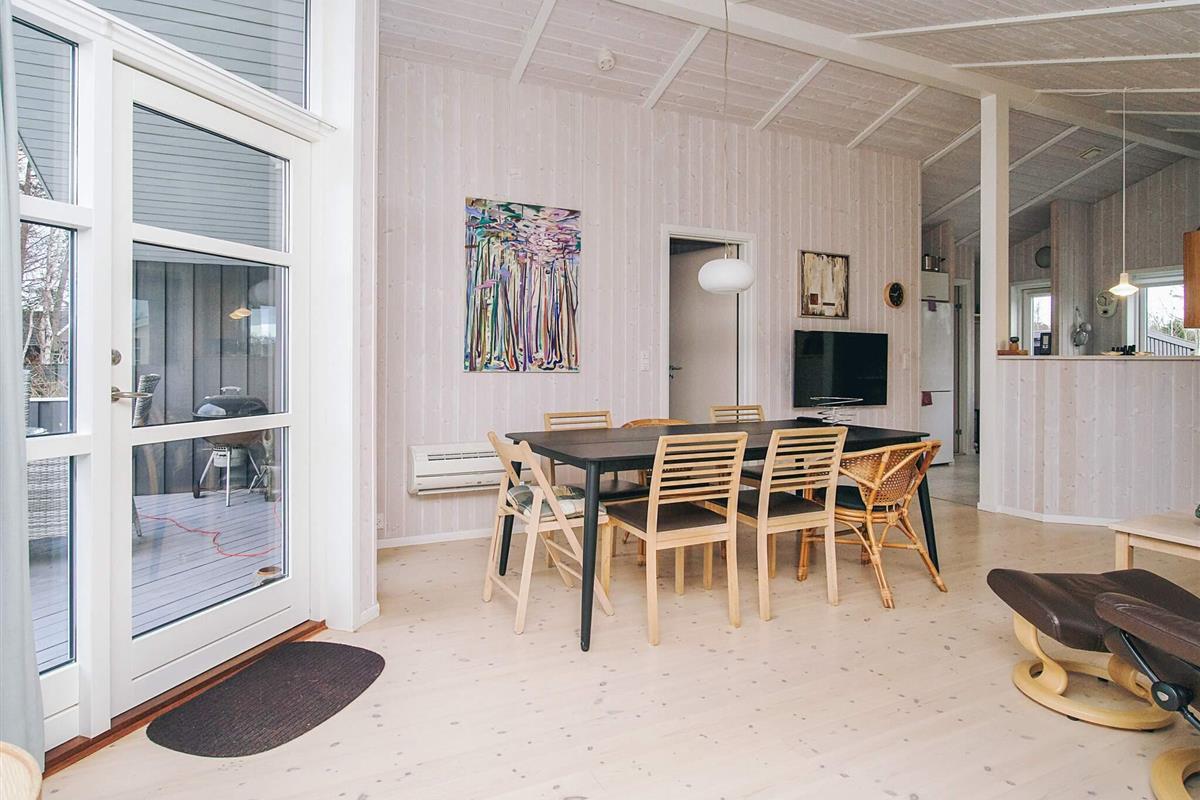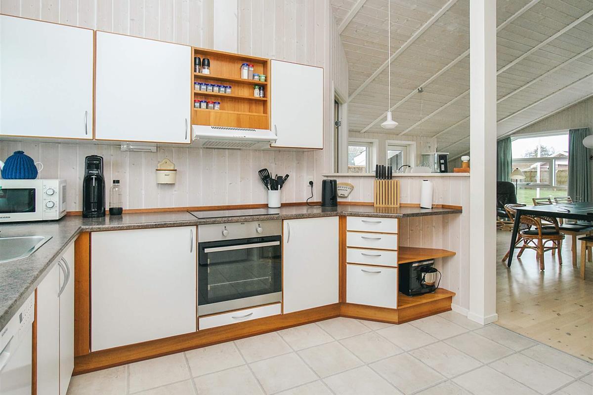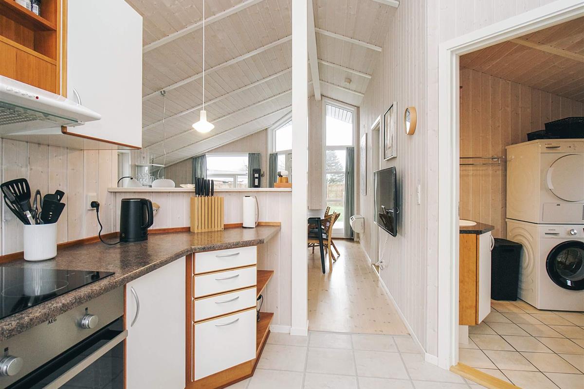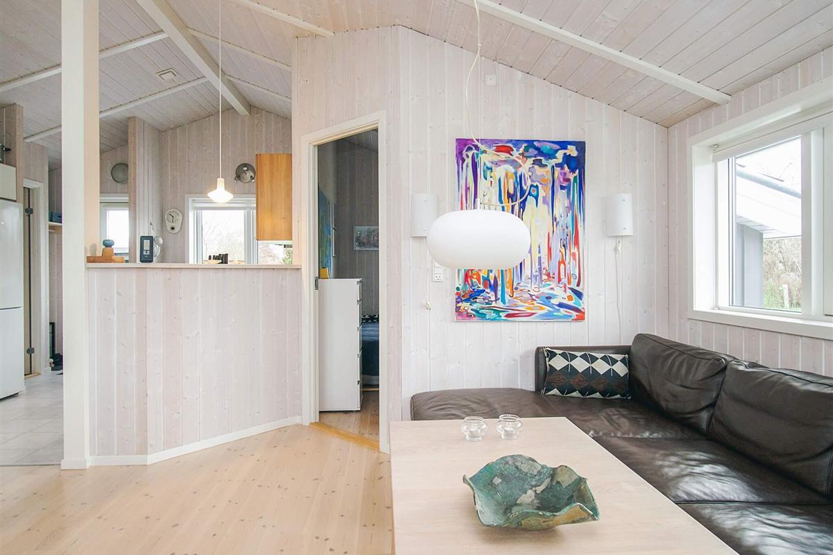 Das Ferienhaus enthält u.a. einen kleinen Flur und von dort weiter zur gemütlichen, offenen, hellen Wohnküche. Schönes gefliestes Badezimmer mit elektrischer Fußbodenheizung. Außerdem 3 schöne Zimmer, davon ein Zimmer mit Doppelbett und 2 Zimmer mit je 2 Betten. Schließlich gibt es noch eine gemütliche Schlafnische im Anschluss an den Wohnbereich.
