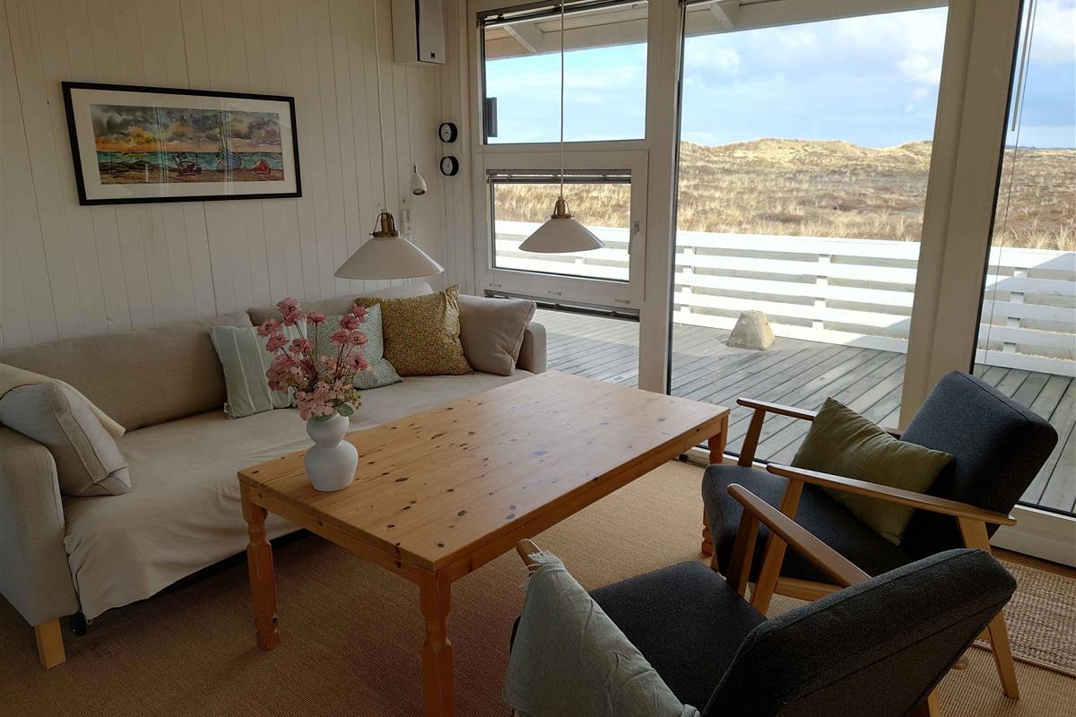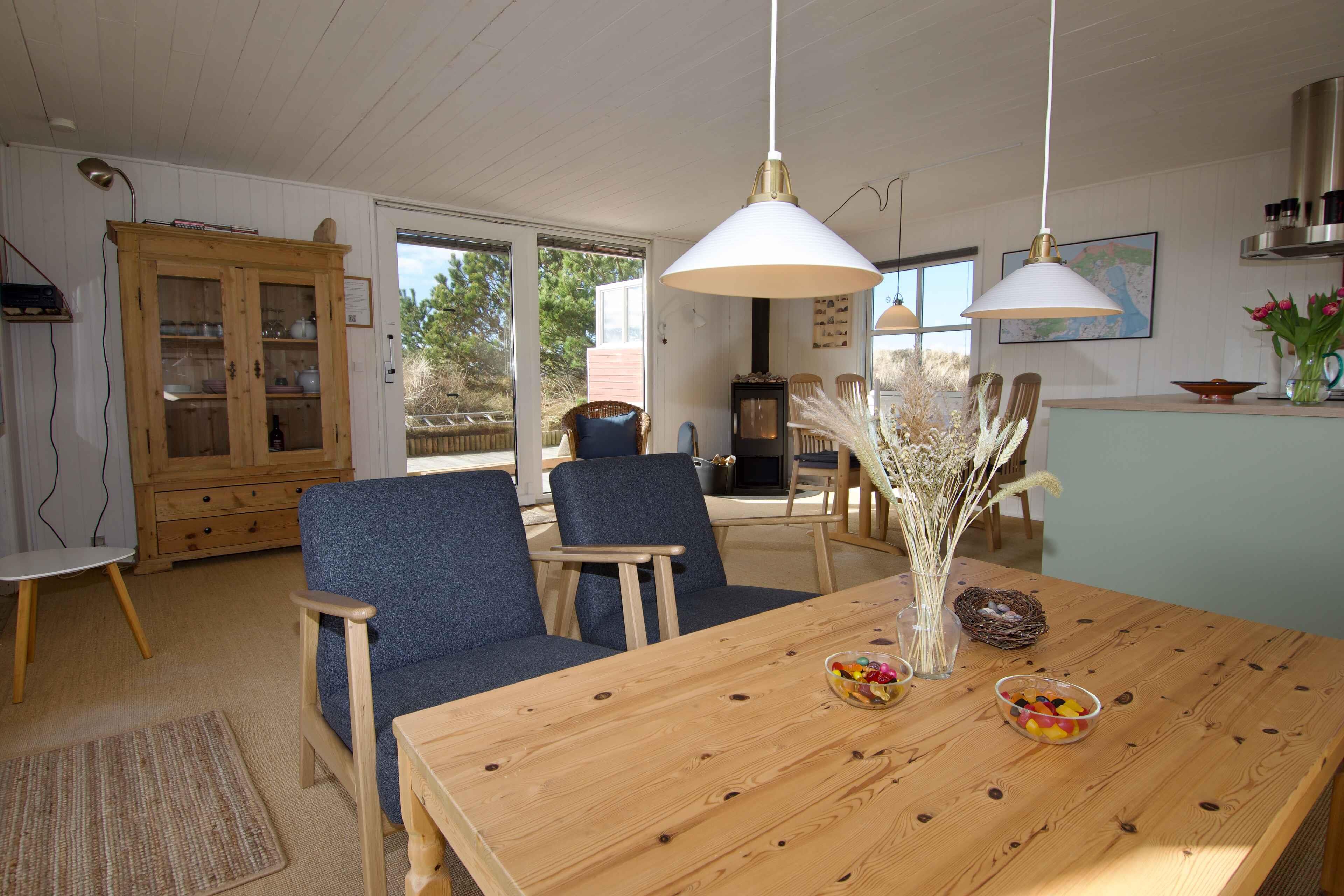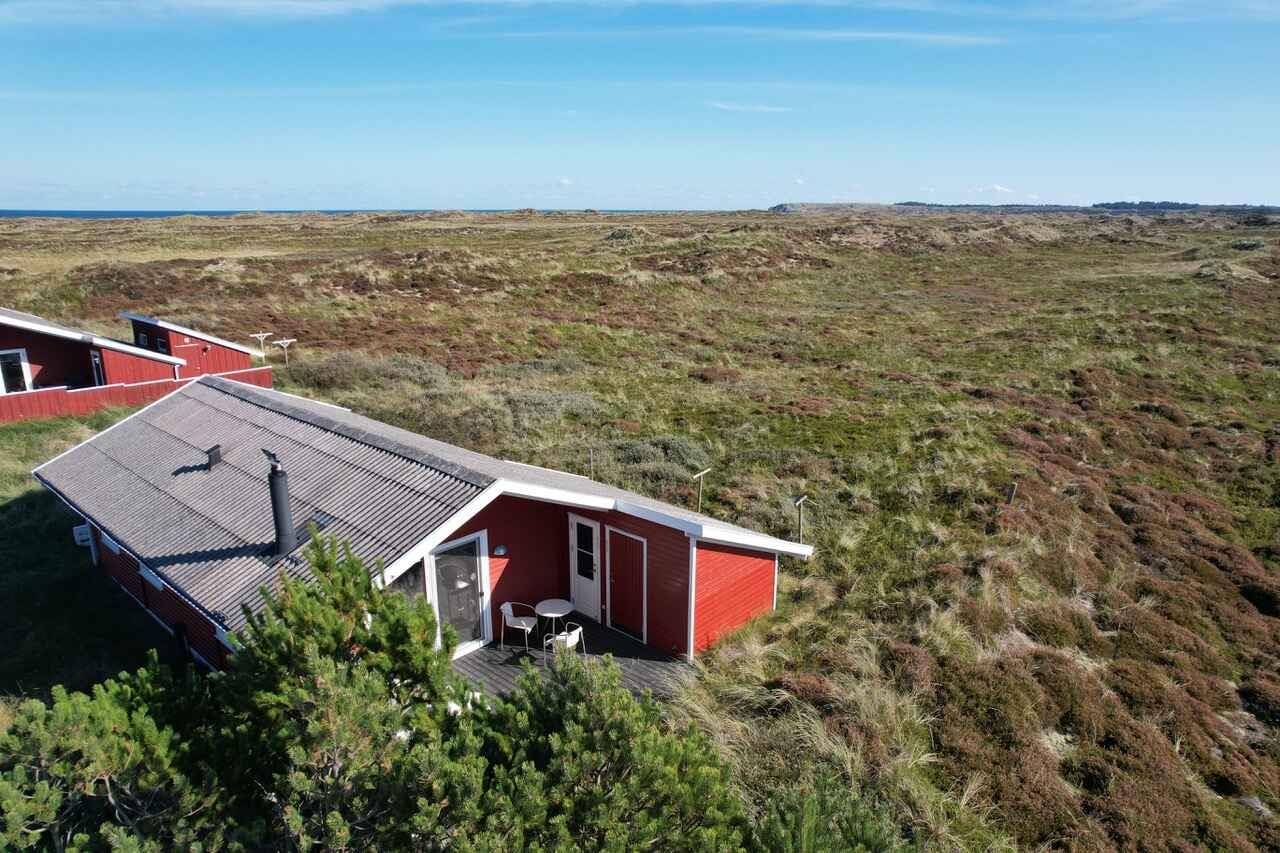 Goed onderhouden zomerhuis op een kleinere natuurgrond Het huis ligt fantastisch met twee grote raamopeningen die een vrij uitzicht bieden over de beschermde duinheide. Aan het einde van de duinheide, 5 kilometer ten oosten van het huis, kun je de Bulbjerg-kam boven het landschap zien uitsteken - de natuur komt als het ware de woonkamer binnen, en we hebben edelherten en reeën direct buiten het huis gezien. Vanuit het huis heb je vrij uitzicht naar het noordoosten, oosten en zuiden, en de twee terrassen van het huis kijken uit op de prachtige natuur met verschillende wandelingen direct buiten de deur. 600 meter ten noorden van het huis ligt de Noordzee. 5 kilometer ten zuiden van het huis is er een groot vogelreservaat dat zich ongeveer 10 kilometer zuidwaarts uitstrekt naar de Limfjord. Ten westen van Lild Strand is Denemarken's langste onbebouwde kustlijn. Ten oosten van het huis ligt de volgende kleine vakantiedorp Thorupstrand op 15 kilometer afstand. Kortom: het huis ligt in een natuurgebied met veel verschillende ervaringen. Bij de landingsplaats, waar vissersboten aan land worden getrokken, zijn er kustterrassen gebouwd waar je kunt genieten van de zonsondergang, en een glazen huis waar je van je meegebrachte eten en het uitzicht op zee kunt genieten. Het zomerhuis is goed ingericht en uitgerust met onder andere een tv met Chromecast en draadloos internet, evenals een goede houtkachel. Het huis ligt in een goed zomerhuisgebied met een gemeenschappelijke speeltuin. Lild Strand is een klein vissersdorpje met de mogelijkheid om verse vis direct van de boten te kopen. Let op: Niet te huur voor commercieel gebruik.