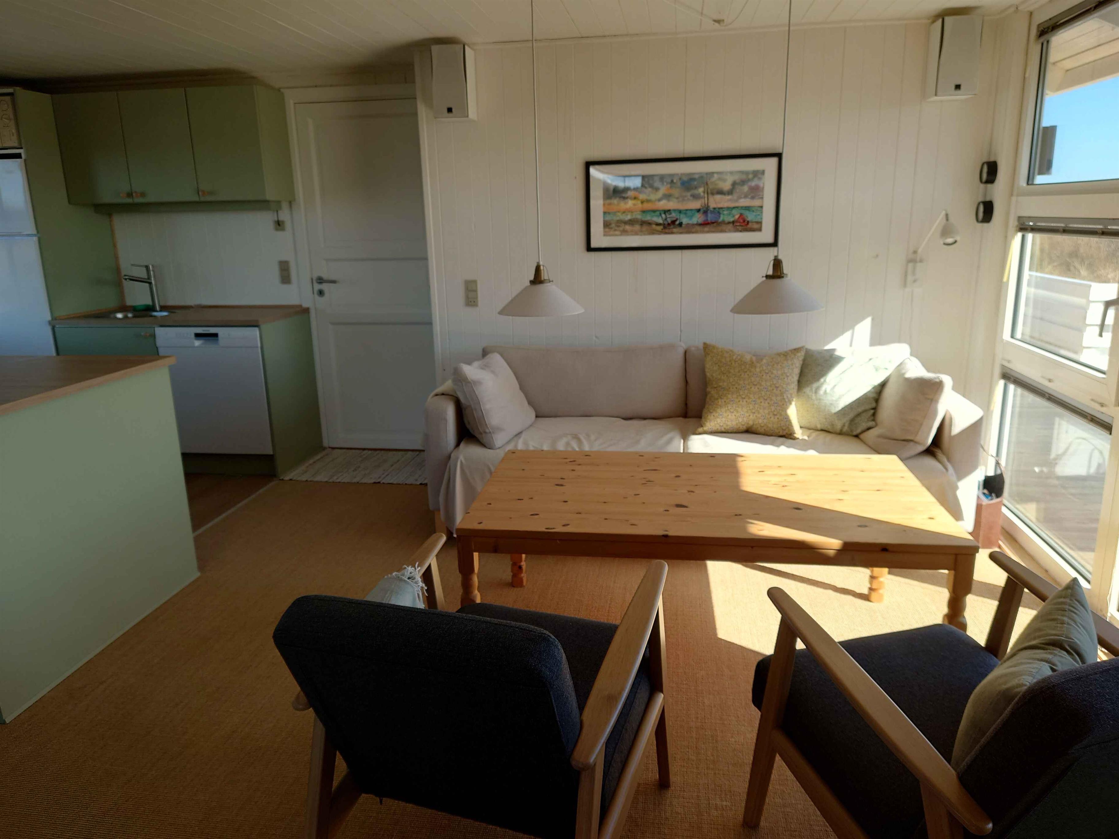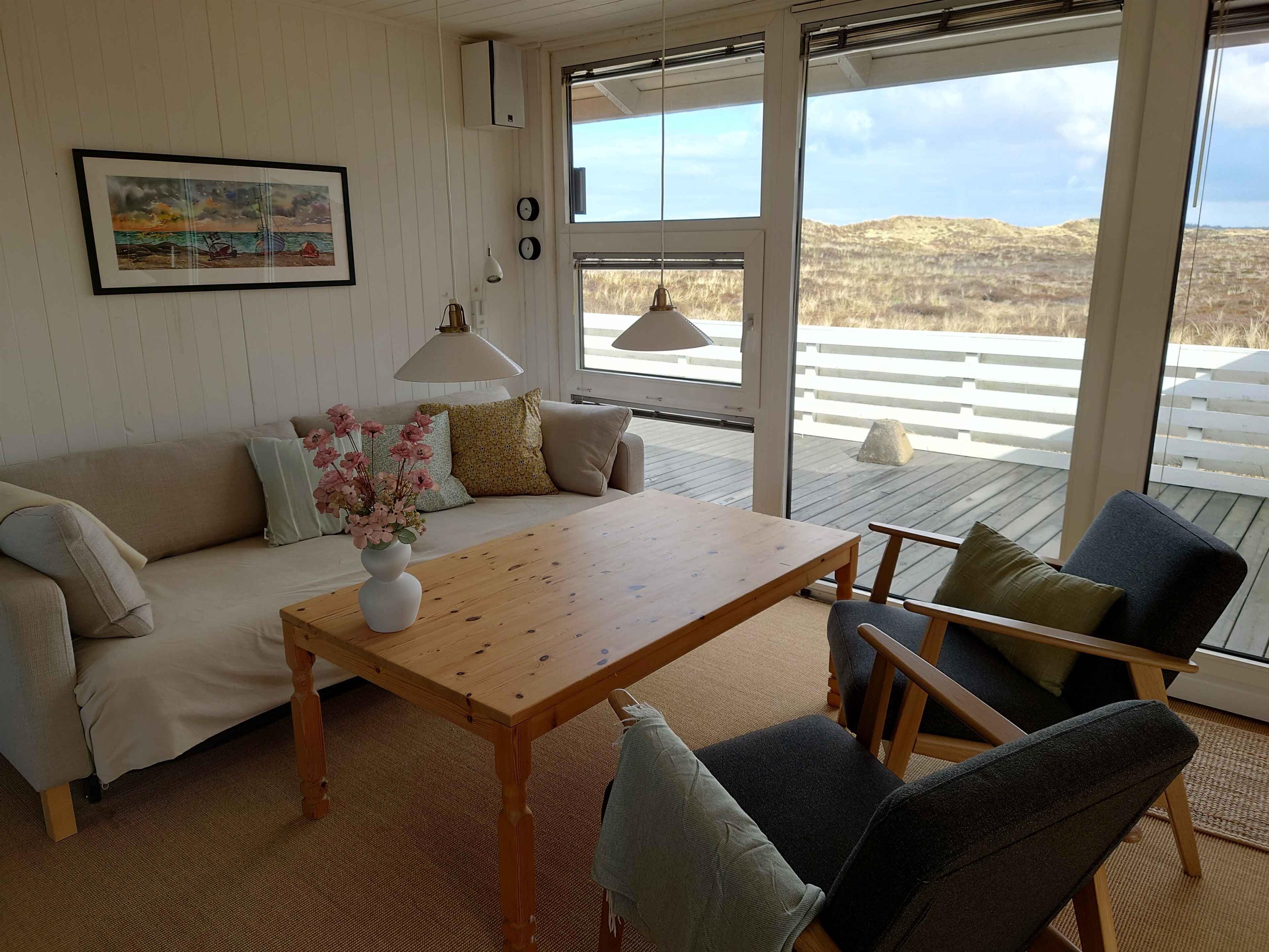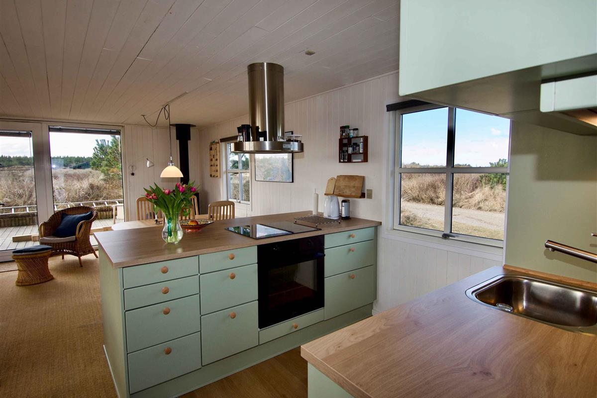 Goed onderhouden zomerhuis op een kleinere natuurgrond Het huis ligt fantastisch met twee grote raamopeningen die een vrij uitzicht bieden over de beschermde duinheide. Aan het einde van de duinheide, 5 kilometer ten oosten van het huis, kun je de Bulbjerg-kam boven het landschap zien uitsteken - de natuur komt als het ware de woonkamer binnen, en we hebben edelherten en reeën direct buiten het huis gezien. Vanuit het huis heb je vrij uitzicht naar het noordoosten, oosten en zuiden, en de twee terrassen van het huis kijken uit op de prachtige natuur met verschillende wandelingen direct buiten de deur. 600 meter ten noorden van het huis ligt de Noordzee. 5 kilometer ten zuiden van het huis is er een groot vogelreservaat dat zich ongeveer 10 kilometer zuidwaarts uitstrekt naar de Limfjord. Ten westen van Lild Strand is Denemarken's langste onbebouwde kustlijn. Ten oosten van het huis ligt de volgende kleine vakantiedorp Thorupstrand op 15 kilometer afstand. Kortom: het huis ligt in een natuurgebied met veel verschillende ervaringen. Bij de landingsplaats, waar vissersboten aan land worden getrokken, zijn er kustterrassen gebouwd waar je kunt genieten van de zonsondergang, en een glazen huis waar je van je meegebrachte eten en het uitzicht op zee kunt genieten. Het zomerhuis is goed ingericht en uitgerust met onder andere een tv met Chromecast en draadloos internet, evenals een goede houtkachel. Het huis ligt in een goed zomerhuisgebied met een gemeenschappelijke speeltuin. Lild Strand is een klein vissersdorpje met de mogelijkheid om verse vis direct van de boten te kopen. Let op: Niet te huur voor commercieel gebruik.