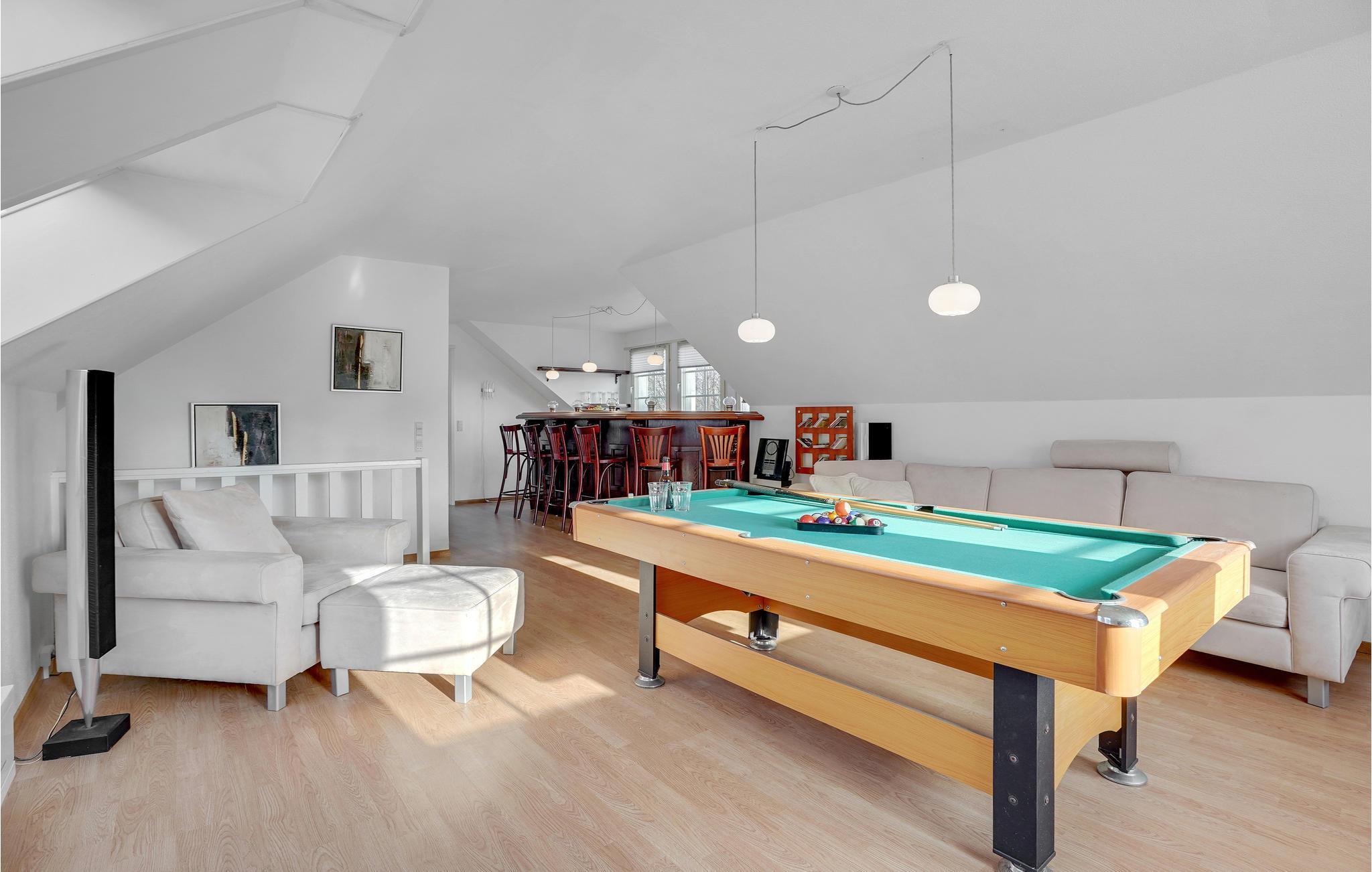 Beleef een geweldige tijd met uw familie in dit aantrekkelijke vakantiehuis met uitzicht op het Kattegat. Het huis heeft 3 slaapkamers en 2 badkamers, dus er is ruimte voor maximaal 7 personen. Een huisdier is ook welkom in het vakantiehuis. Het interieur is licht en modern en u heeft hier veel ruimte. Op de 1e verdieping is er een gezellige woonkamer met een pooltafel en een leuke bar.