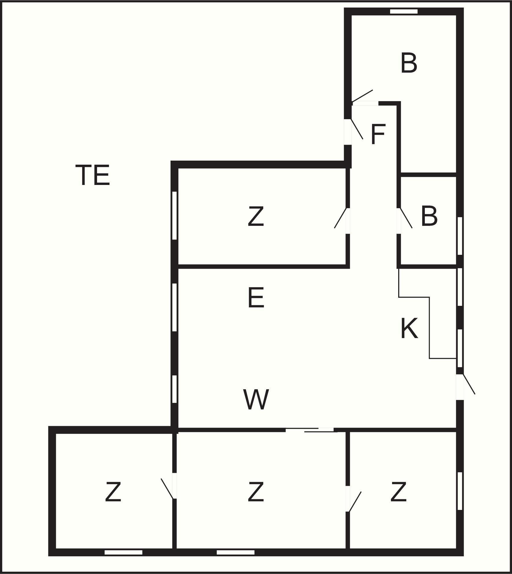Off. Küche: E-Herd, Kühlschr. m. Gefrierfach, Mikrow., Abzugsh., Kaffeem., Spülm.