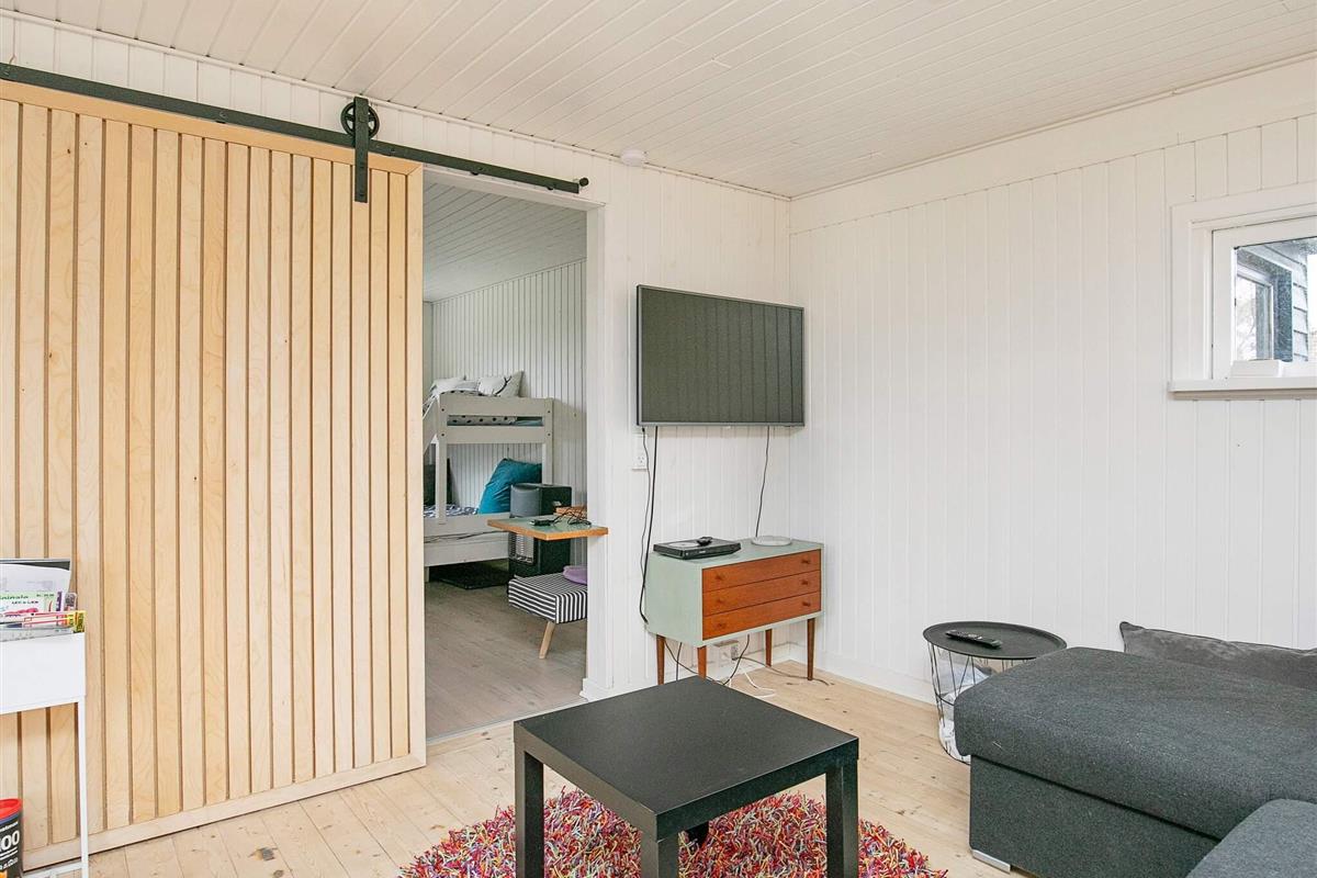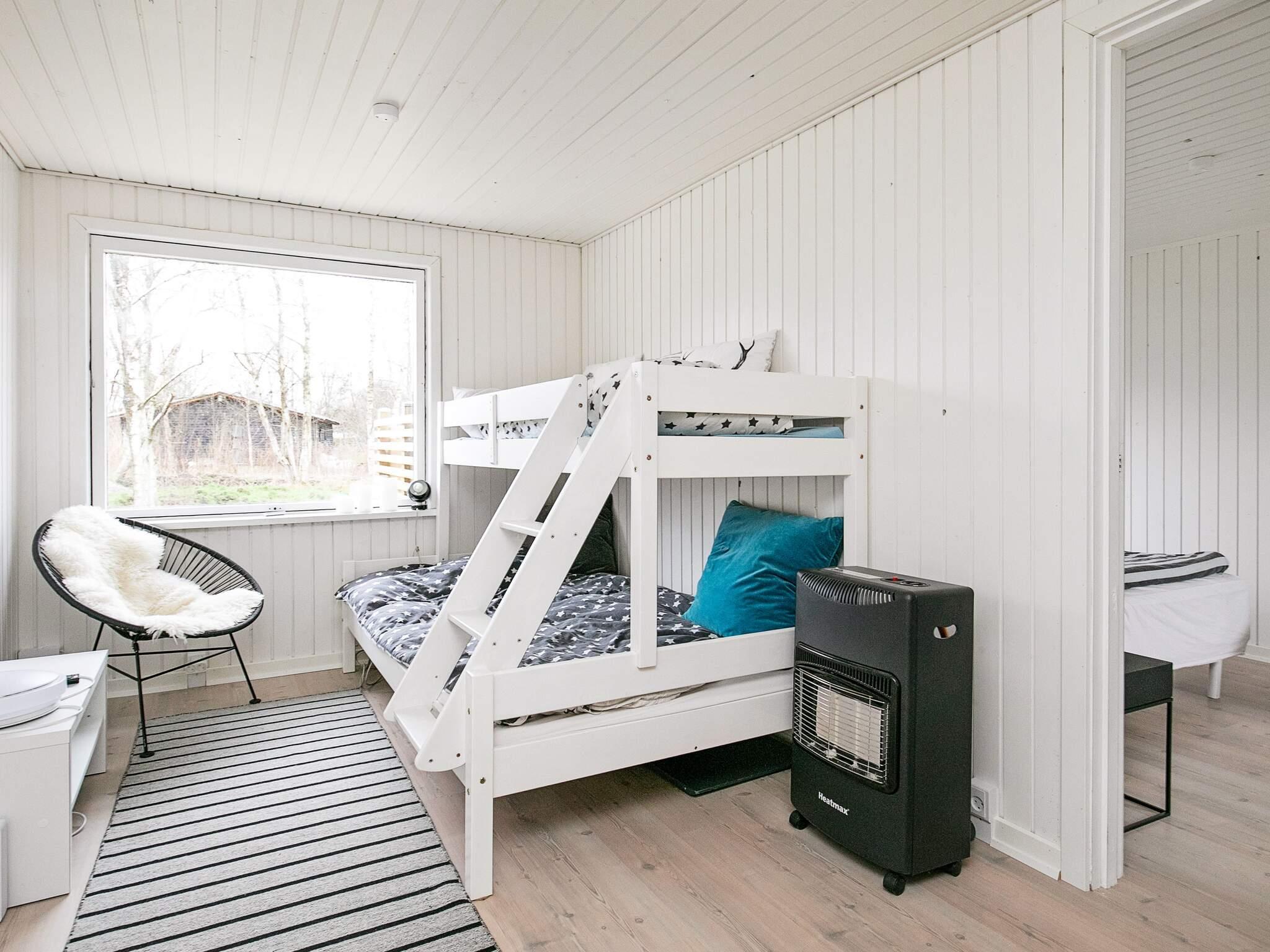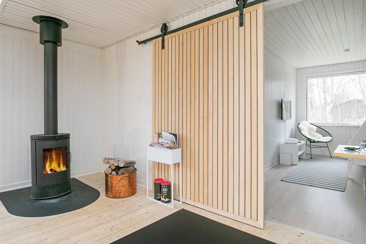 Im Inneren stehen vier helle Schlafzimmer mit Staufläche zur Auswahl, eines davon ein Durchgangsraum, mit großer Schiebetür zum Wohnbereich hin. Dort gibt es für kühlere Tage eine energieeffiziente Wärmepumpe sowie einen Holzofen. Zeitgemäße Küchenausstattung im Haus und Essecke gegenüber am Fenster. Der offene Wohnbereich bietet viel Platz für das Familienleben. Außerdem helles Bad mit Dusche und Waschmaschine im Haus.