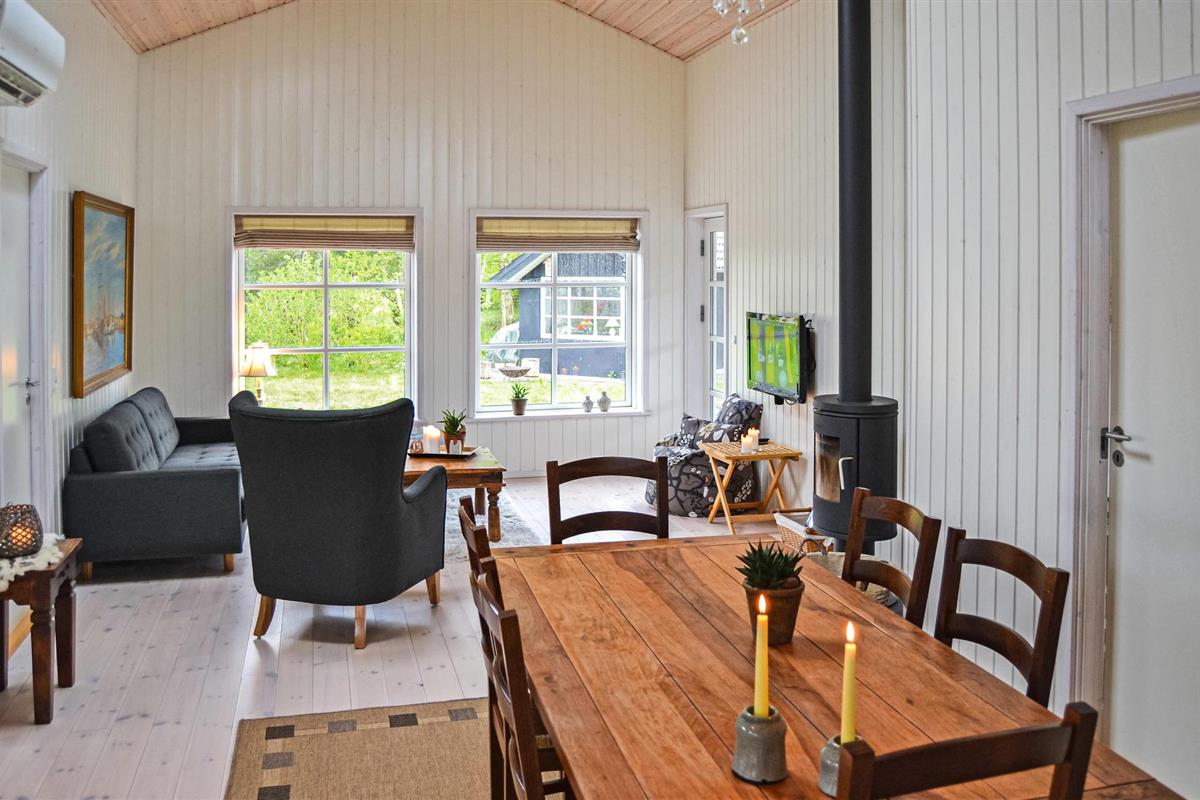 Dit uitnodigende vakantiehuis ligt op loopafstand van het beroemde Palm Beach en het gezellige stadje Rønnehavn bij Frederikshavn. Het huis heeft een licht, vriendelijk interieur, hoge plafonds en fantastische natuurlijke lichtinval, wat zorgt voor een gezellige sfeer. Het is vooral gezellig op koelere dagen als je de open haard aansteekt en ontspant met een goed boek of een spannende film.
