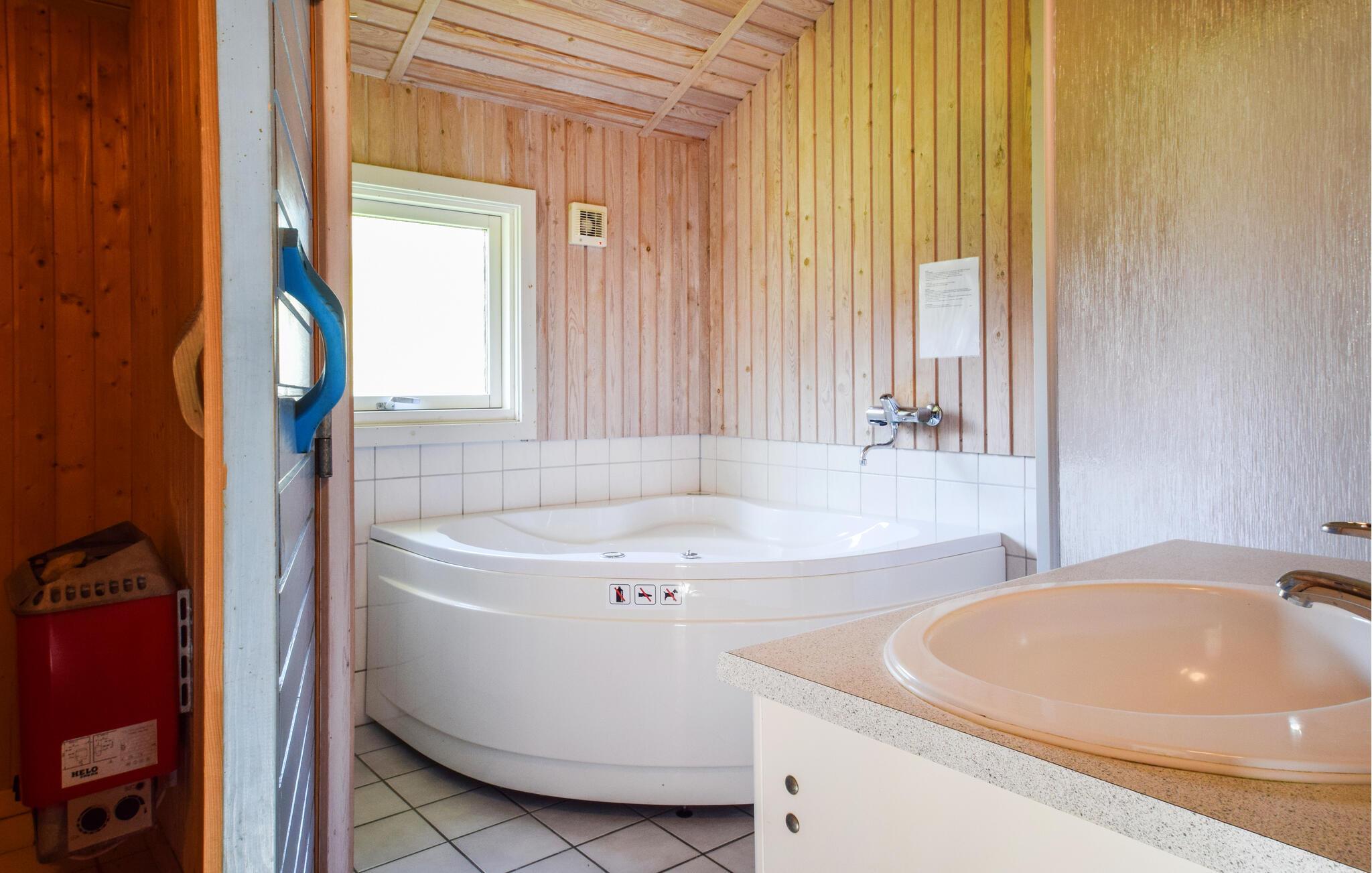 Mooi houten huis met zeezicht in een natuurlijke omgeving nabij het strand in het vakantiehuisgebied Fredmose. Het huis biedt het hoogste en modernste comfort zoals een vaatwasser en een wasmachine. Een van de twee badkamers is groot en heeft een 2-persoons whirlpool en een sauna voor 4 personen. Goede vismogelijkheden aan het strand. 102 l vriezer in het huis. Buiten plaats om vis uit te halen. In de gang is een alkoof met 2 slaapplaatsen. De natuur is intact in Sædballe Fredmose en er zijn goede visgronden hier aan de oostkust. Populair bij vissers is het Put & Take meer op 8 km afstand, hier worden vissen van de zalmfamilie uitgezet. Langeland en de kleine eilanden voor Zuid-Funen zijn gezegend met aangenaam warme temperaturen tijdens het groeiseizoen, waardoor hier veel fruit wordt geteeld. Op weg naar Fredmose komt u door boomgaarden van grote omvang. Als u bij een heuvel komt, heeft u een goed uitzicht op de Langeland Belt, waar grote en kleine schepen krioelen. De golfbaan van Langeland ligt op slechts zes kilometer afstand.