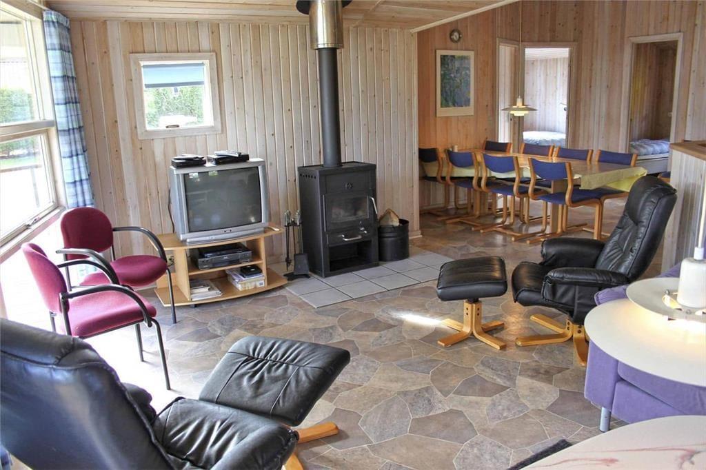 Draußen findest du einen großen Garten mit vielen Möglichkeiten für Entspannung und Spiel. Die teilweise überdachte Terrasse ist perfekt für gemütliche Grillabende, unabhängig vom Wetter, und im Garten gibt es sowohl eine Schaukel als auch einen Sandkasten für die Kleinsten. Für diejenigen, die frische Luft und einen aktiven Urlaub lieben, sind es nur 350 Meter bis zum Meer, wo du schwimmen, angeln oder einfach die Aussicht über das offene Wasser genießen kannst. Wenn du einen Fang nach Hause bringst, kannst du das praktische Fischreinigungsbrett draußen nutzen, damit alles für das Abendessen bereit ist.