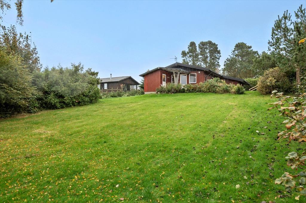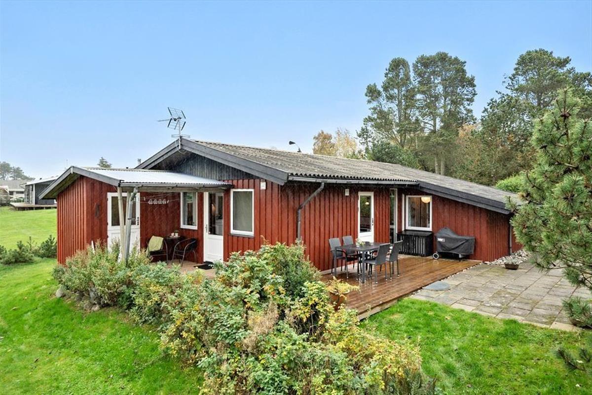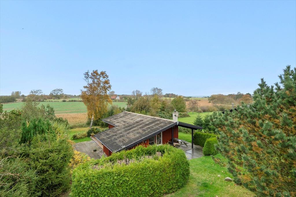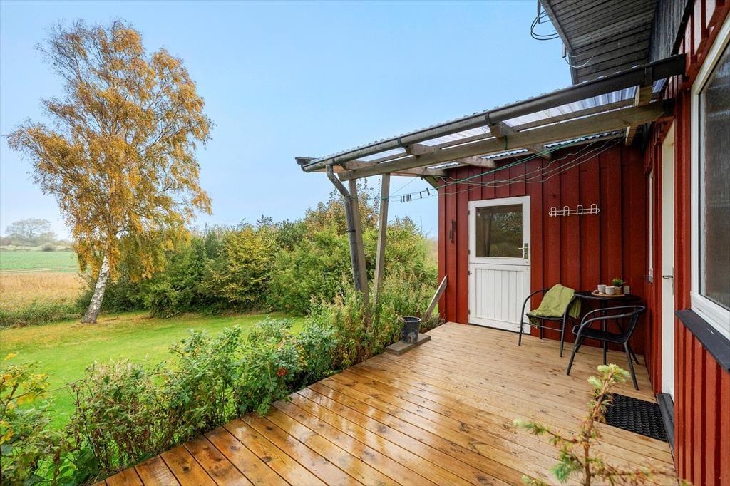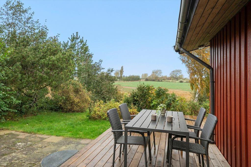 Rund um das Haus verläuft eine schöne Terrasse, auf der Sie die Sonne den ganzen Tag über genießen können. Auf der hinteren Terrasse können Sie Ihren Morgenkaffee trinken und den herrlichen Blick über die Felder genießen, wo die Natur ihre schönste Seite zeigt. Mit etwas Glück sehen Sie Rehe, Hasen oder sogar Damwild, die sich leise durch die Landschaft bewegen. Das Haus ist ideal für Naturliebhaber, und auch Hunde sind herzlich willkommen, damit die ganze Familie gemeinsam Urlaub machen kann. Für Angler gibt es außerdem eine Gefriertruhe und einen Fischreinigungsplatz im Freien, damit der Fang des Tages bequem vorbereitet werden kann.