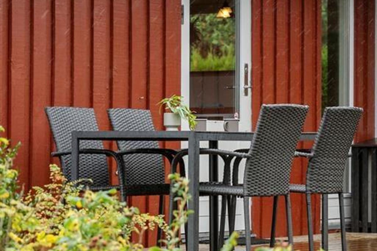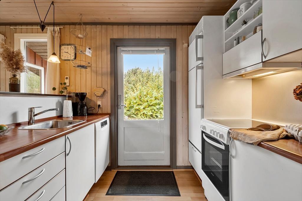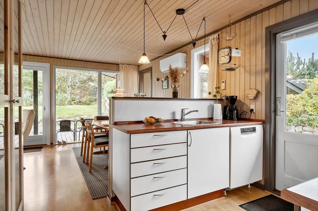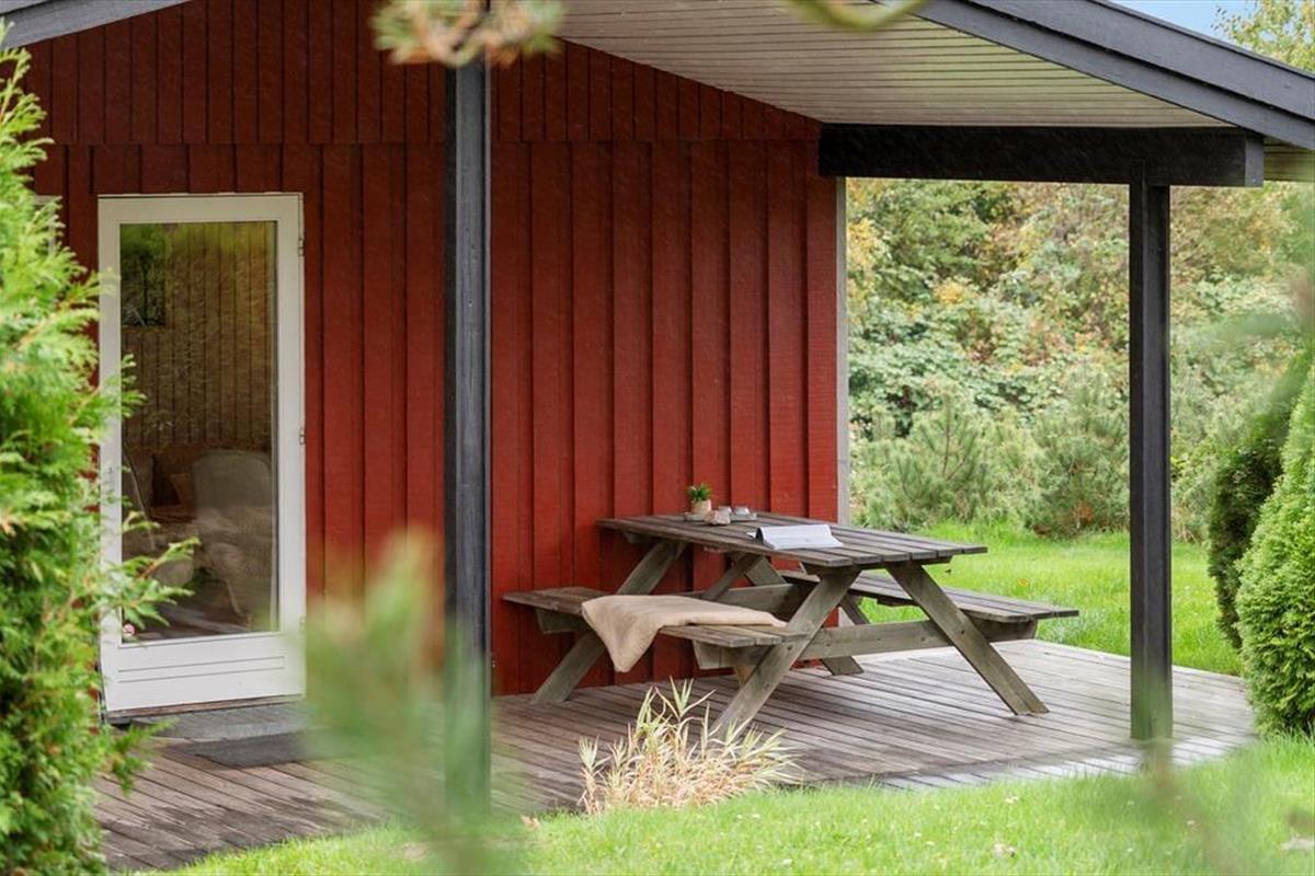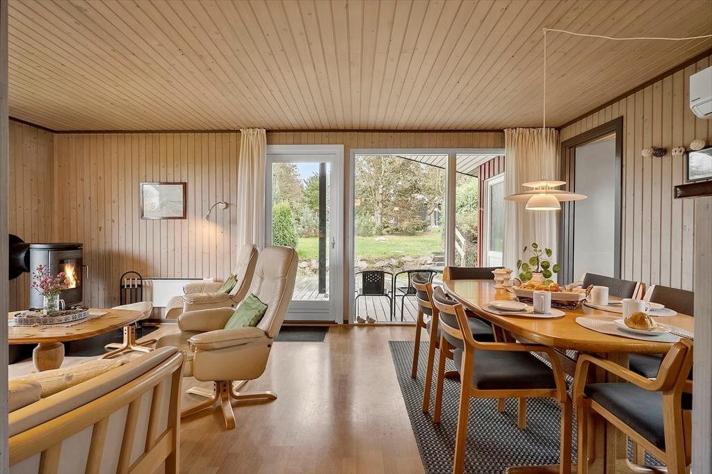 Rund um das Haus verläuft eine schöne Terrasse, auf der Sie die Sonne den ganzen Tag über genießen können. Auf der hinteren Terrasse können Sie Ihren Morgenkaffee trinken und den herrlichen Blick über die Felder genießen, wo die Natur ihre schönste Seite zeigt. Mit etwas Glück sehen Sie Rehe, Hasen oder sogar Damwild, die sich leise durch die Landschaft bewegen. Das Haus ist ideal für Naturliebhaber, und auch Hunde sind herzlich willkommen, damit die ganze Familie gemeinsam Urlaub machen kann. Für Angler gibt es außerdem eine Gefriertruhe und einen Fischreinigungsplatz im Freien, damit der Fang des Tages bequem vorbereitet werden kann.