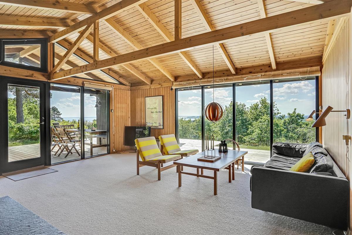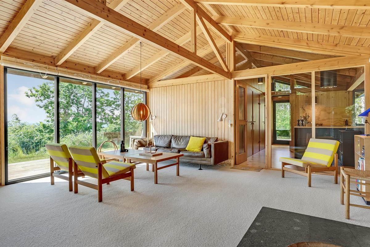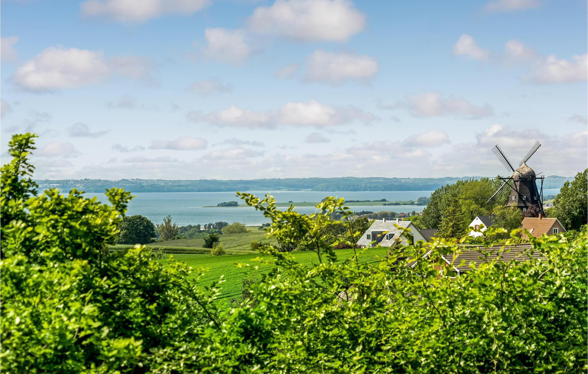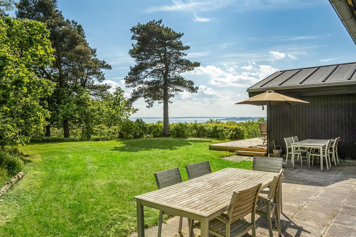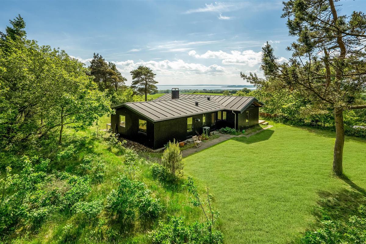 Op een enorm natuurperceel met panoramisch uitzicht wacht dit uitnodigende vakantiehuis bij Fuglsø Strand op u.