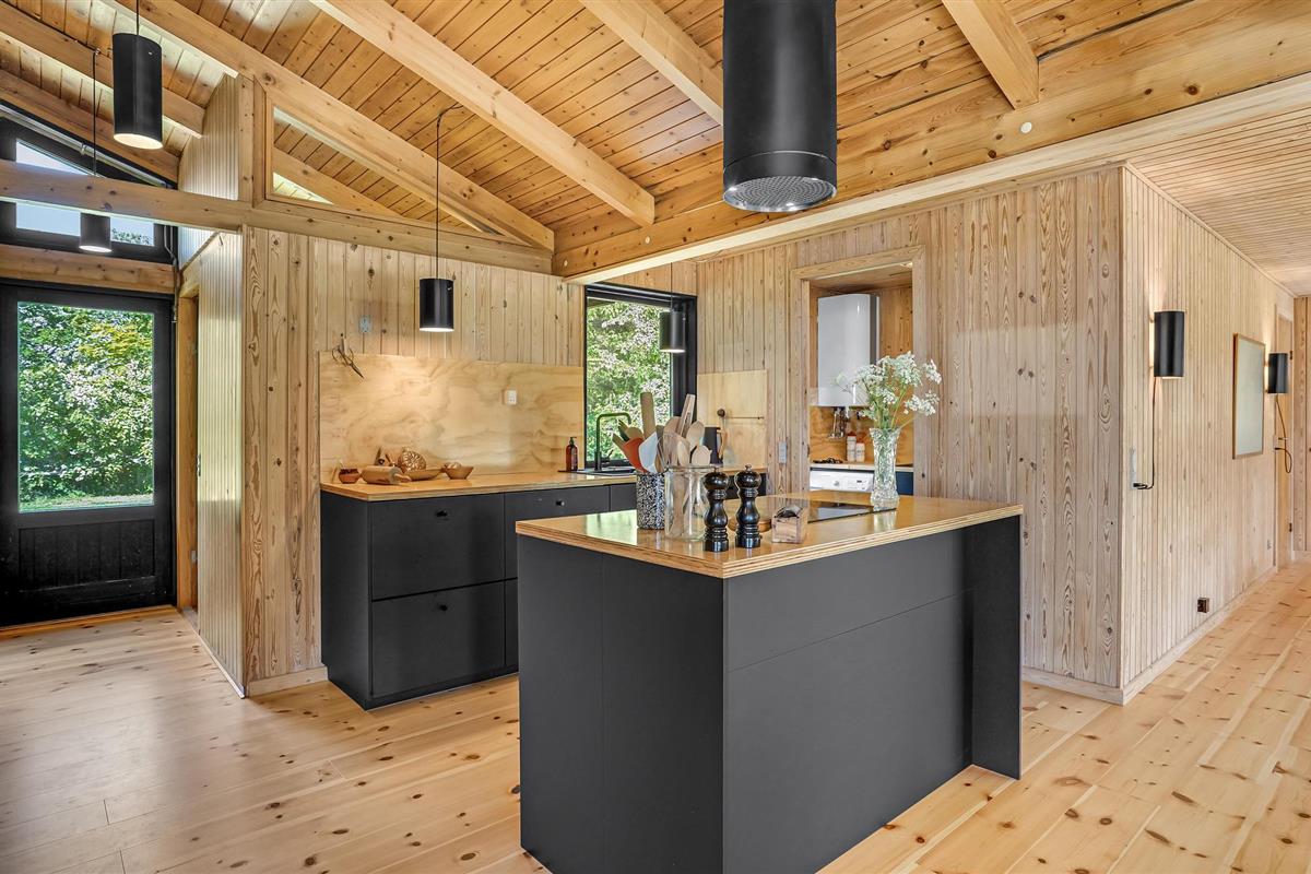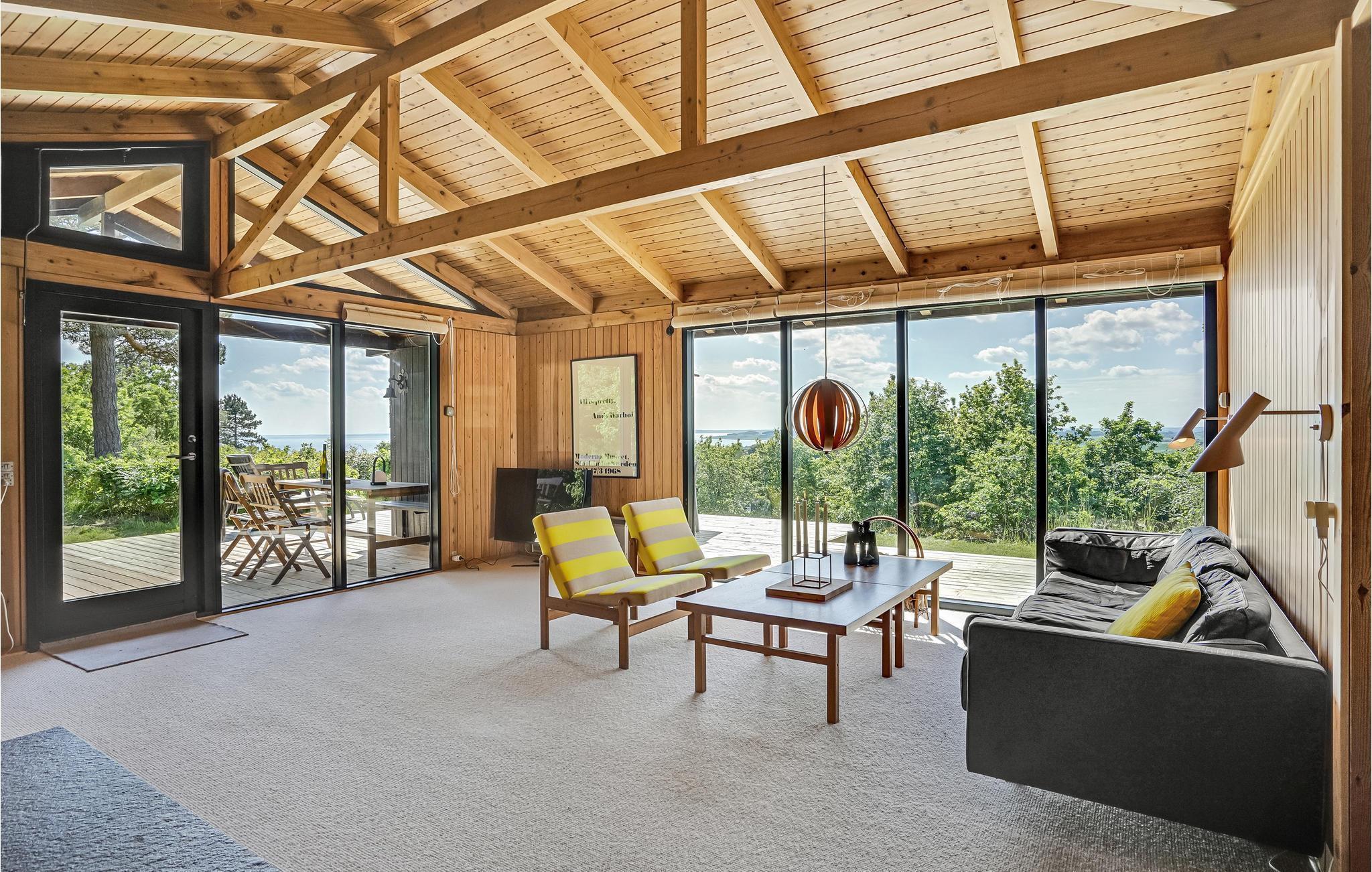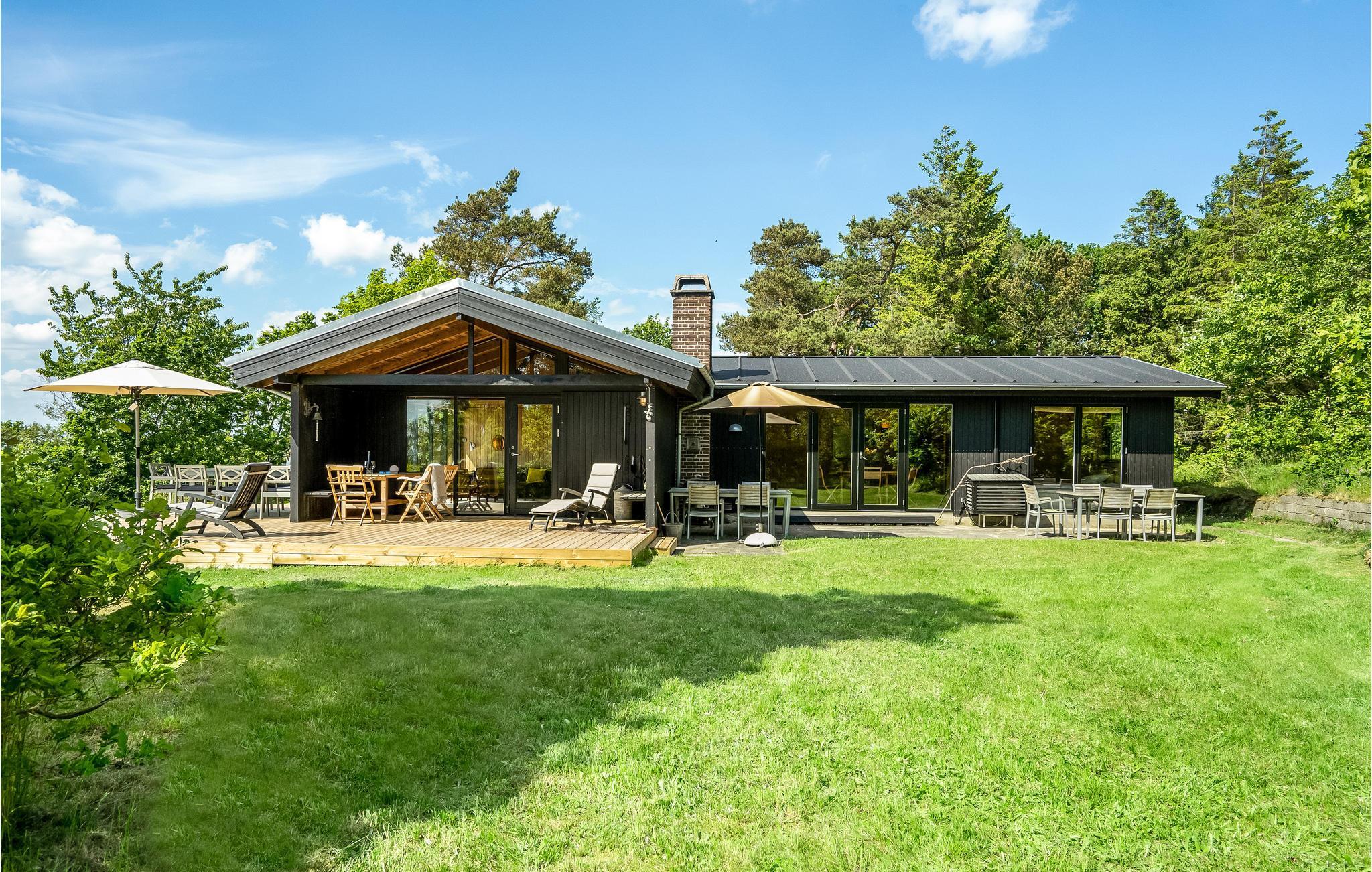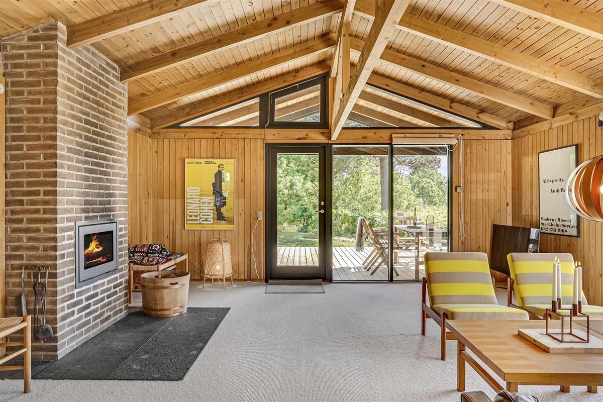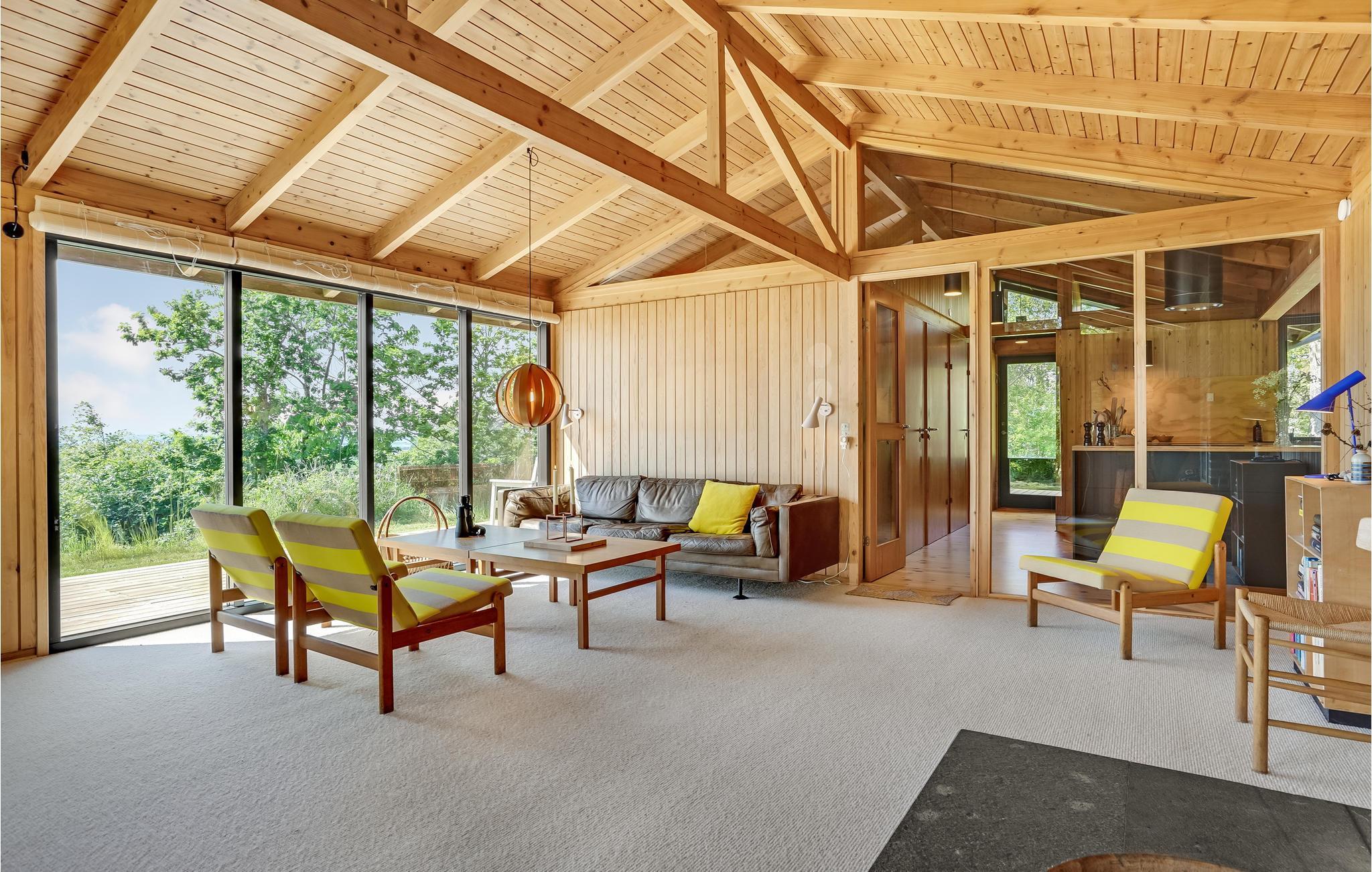 Op een enorm natuurperceel met panoramisch uitzicht wacht dit uitnodigende vakantiehuis bij Fuglsø Strand op u.