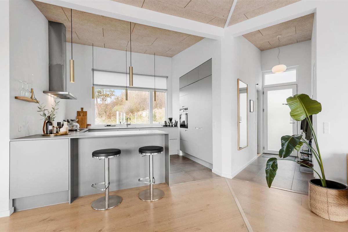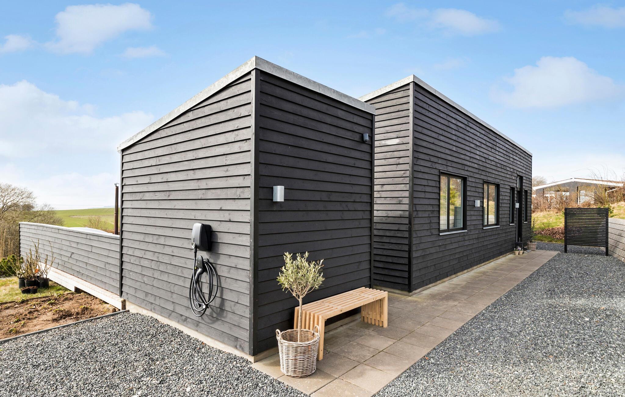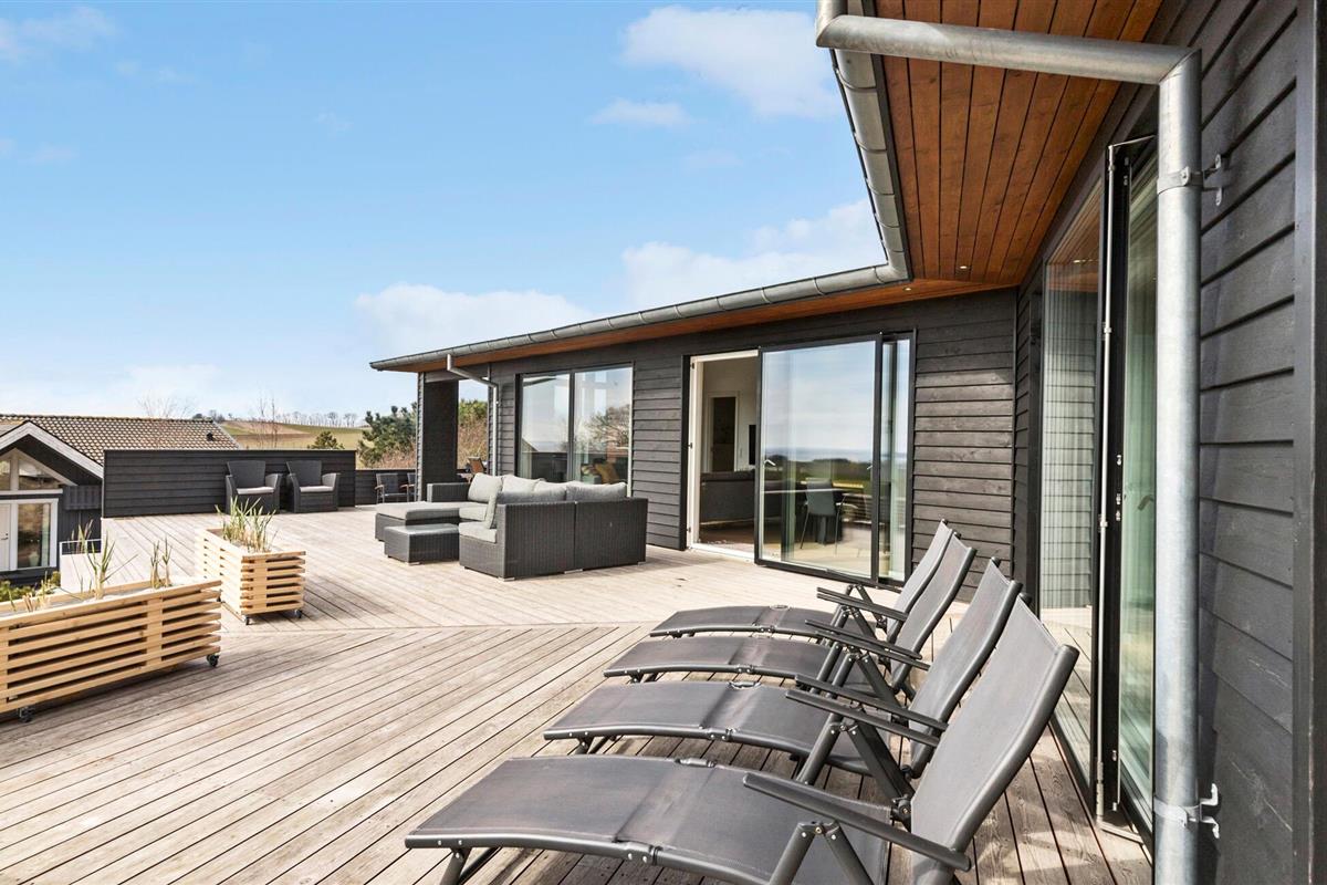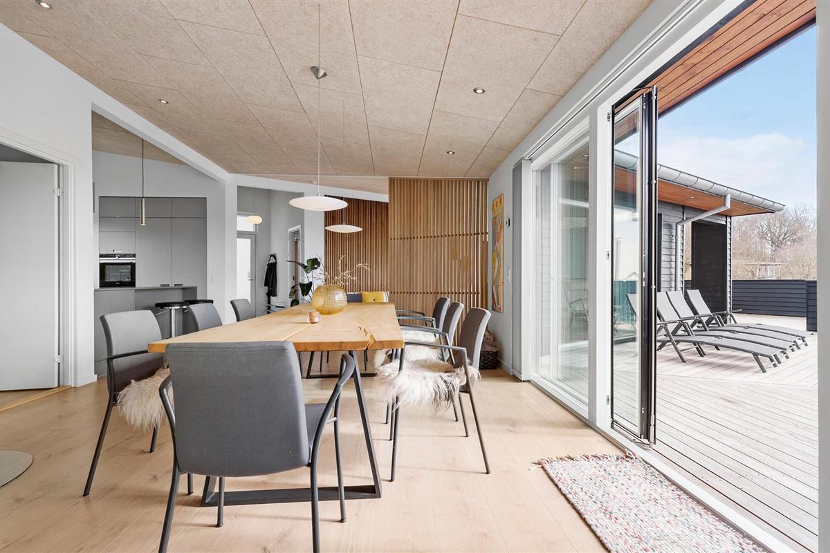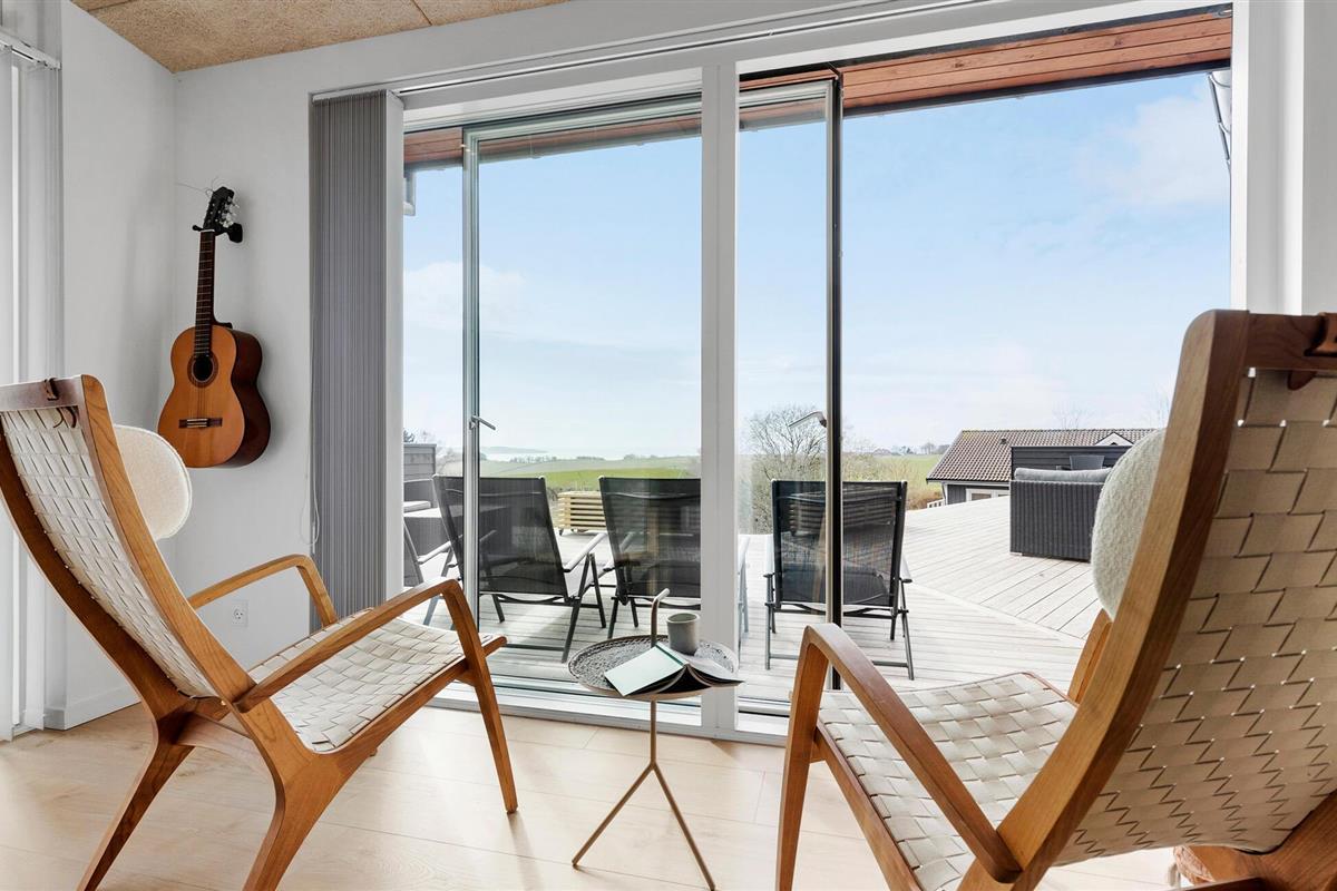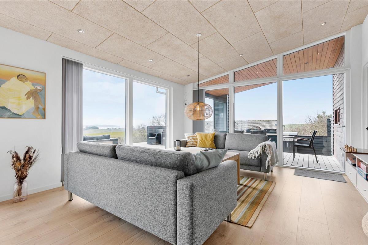 Ruim, licht vakantiehuis met panoramisch uitzicht en houtgestookt Wildmarksbad aan Fuglsø Strand, ideaal voor gezinnen.