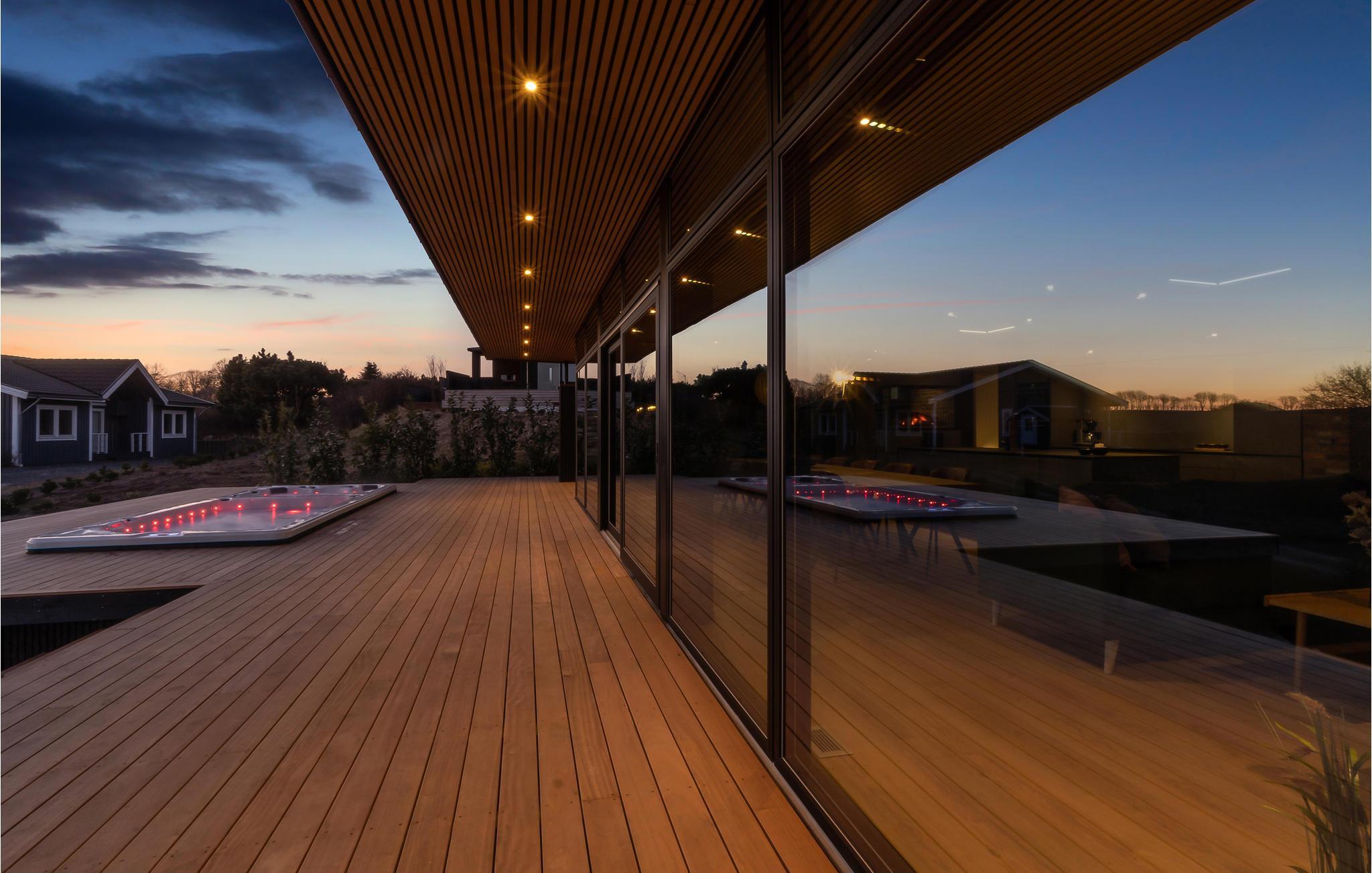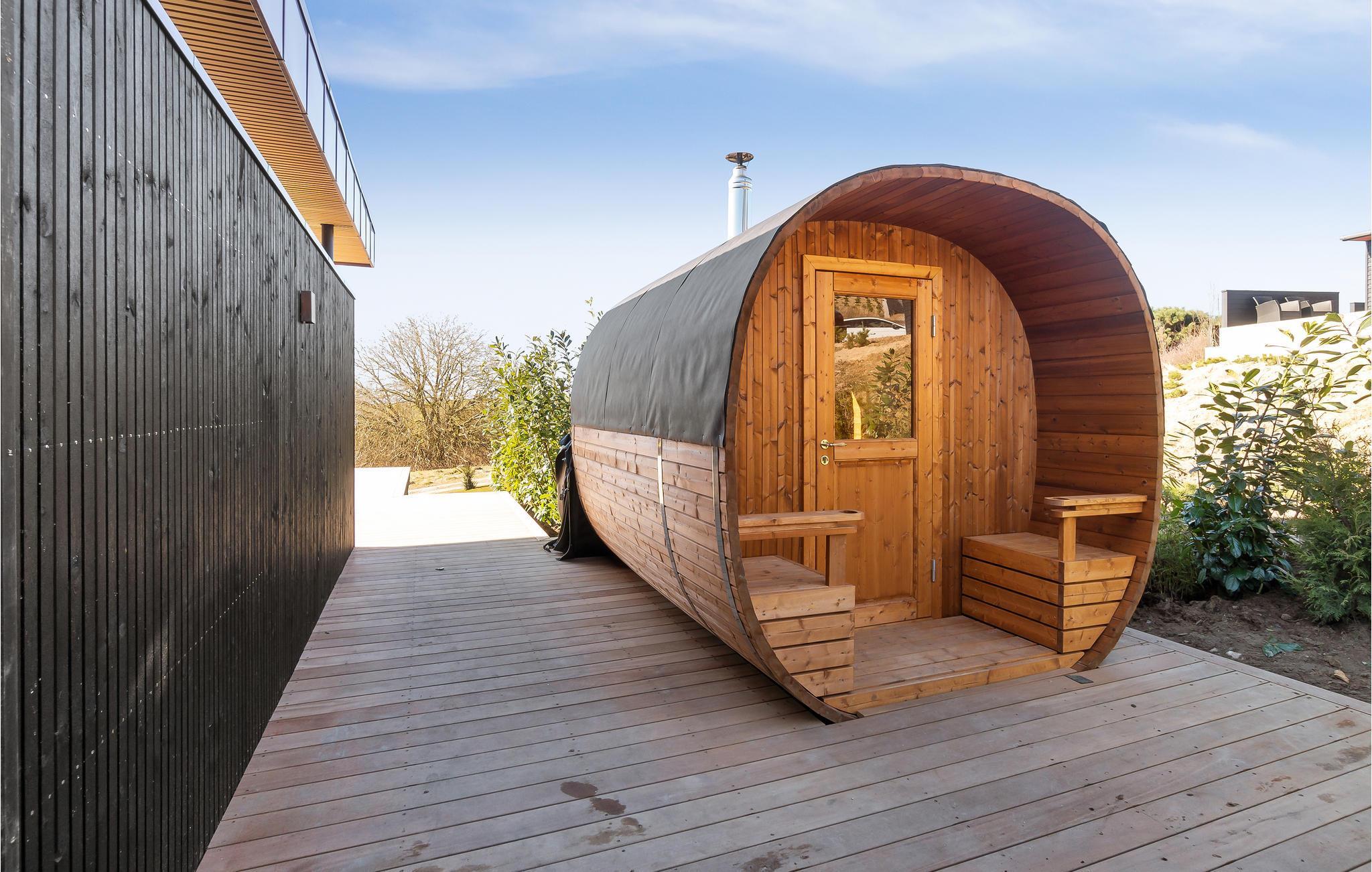 Ruim, stijlvol vakantiehuis met zeezicht en buitenzwembad en sauna.